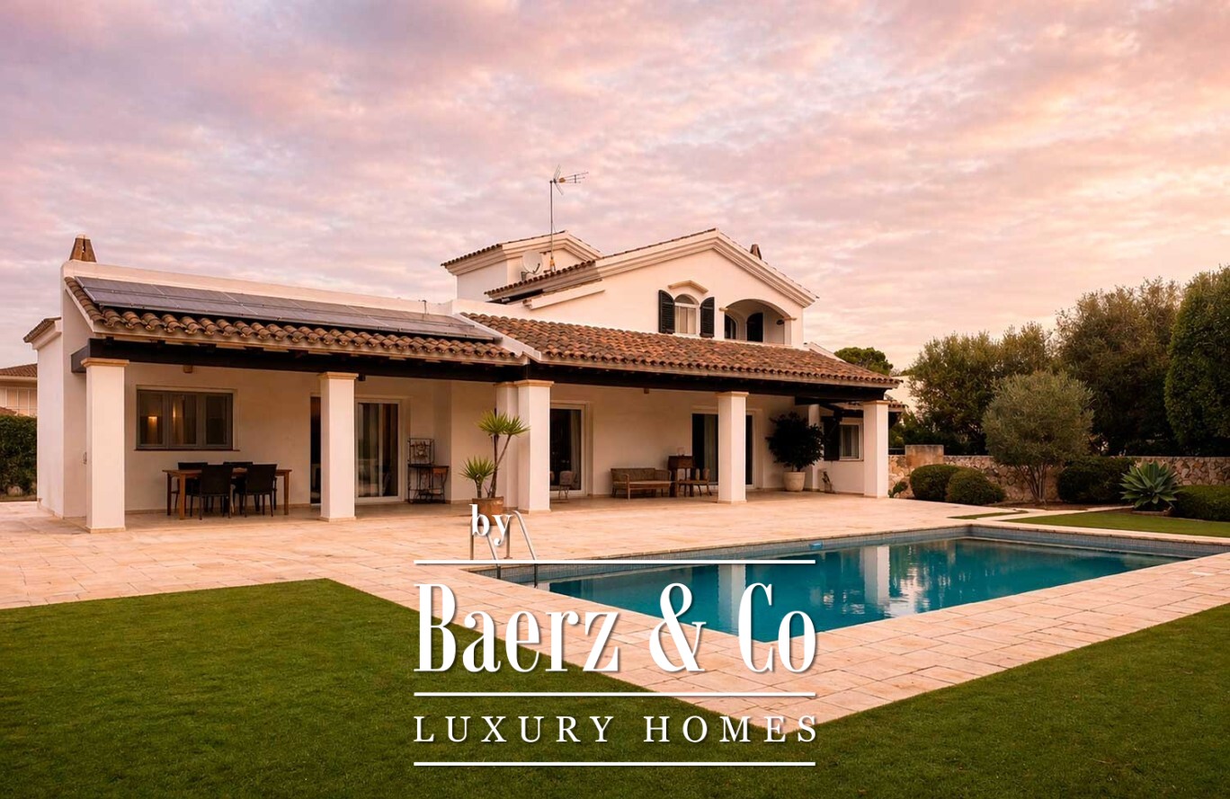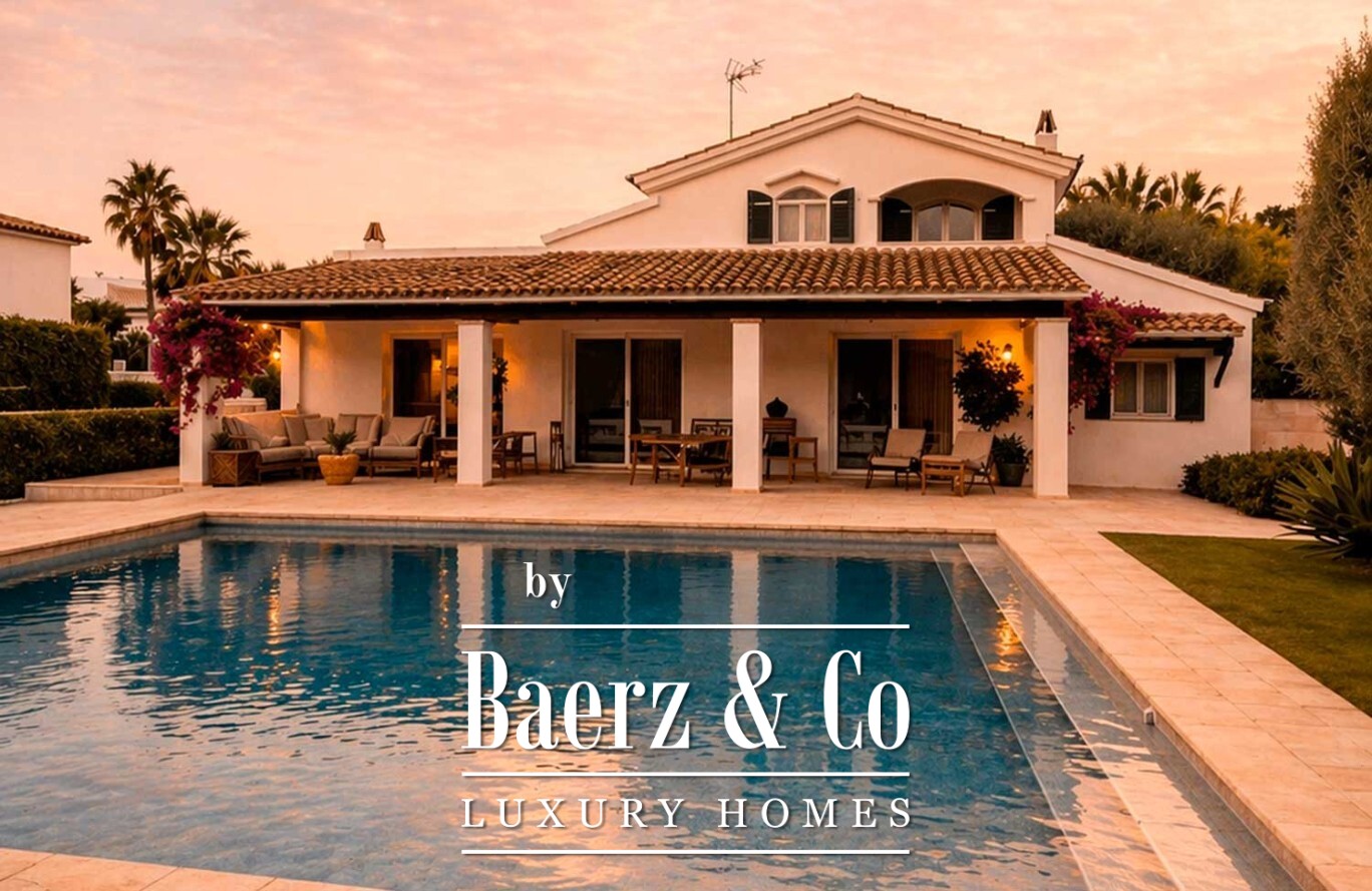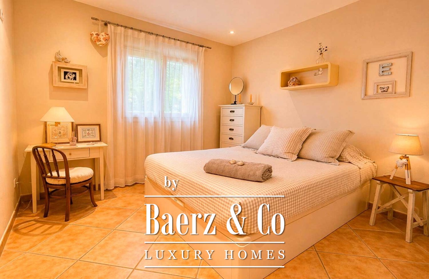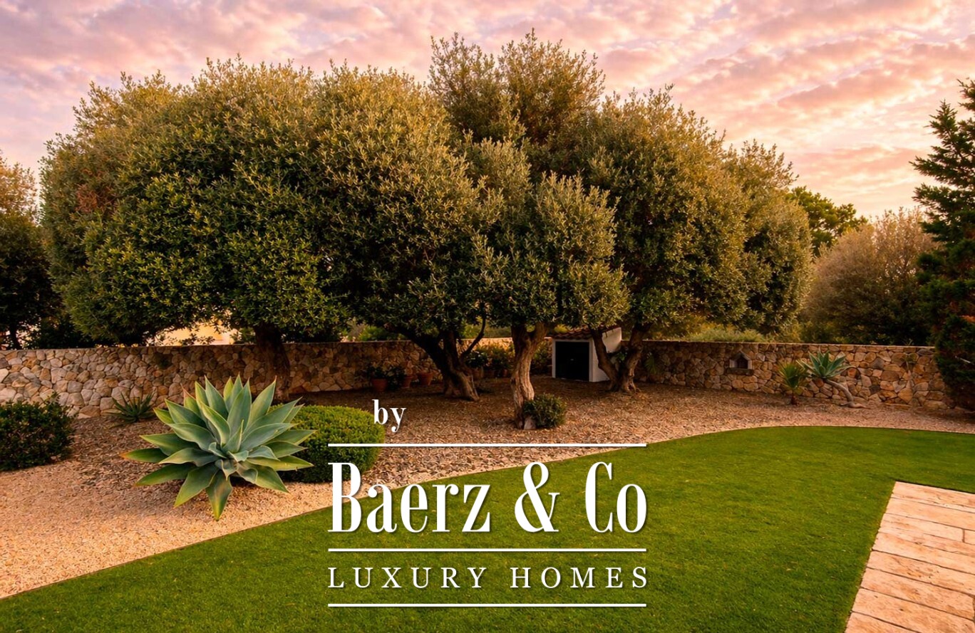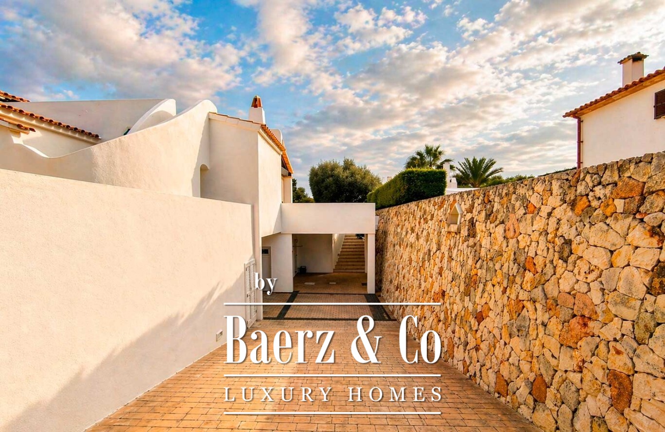 Buiten vormt een royaal zwembad het middelpunt van een tuin met volgroeide bomen en onberispelijk kunstgras, waardoor rust en eenvoudig onderhoud samenkomen. De villa in Ciutadella de Menorca verenigt authenticiteit en privacy met directe toegang tot de Middellandse Zee en biedt daarmee een zeldzame kans voor een exclusieve levensstijl.