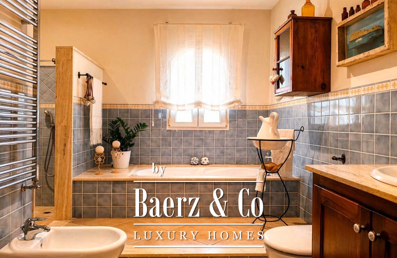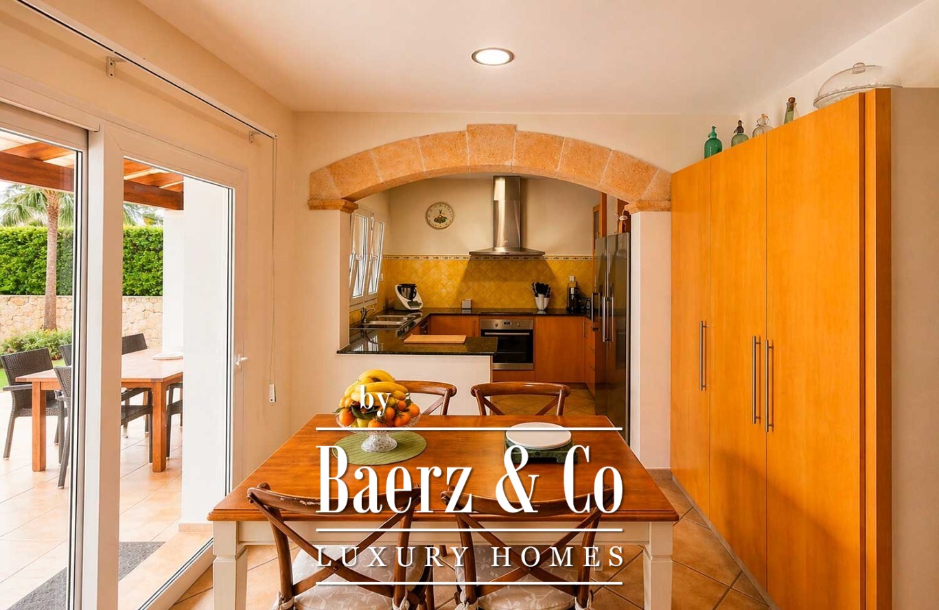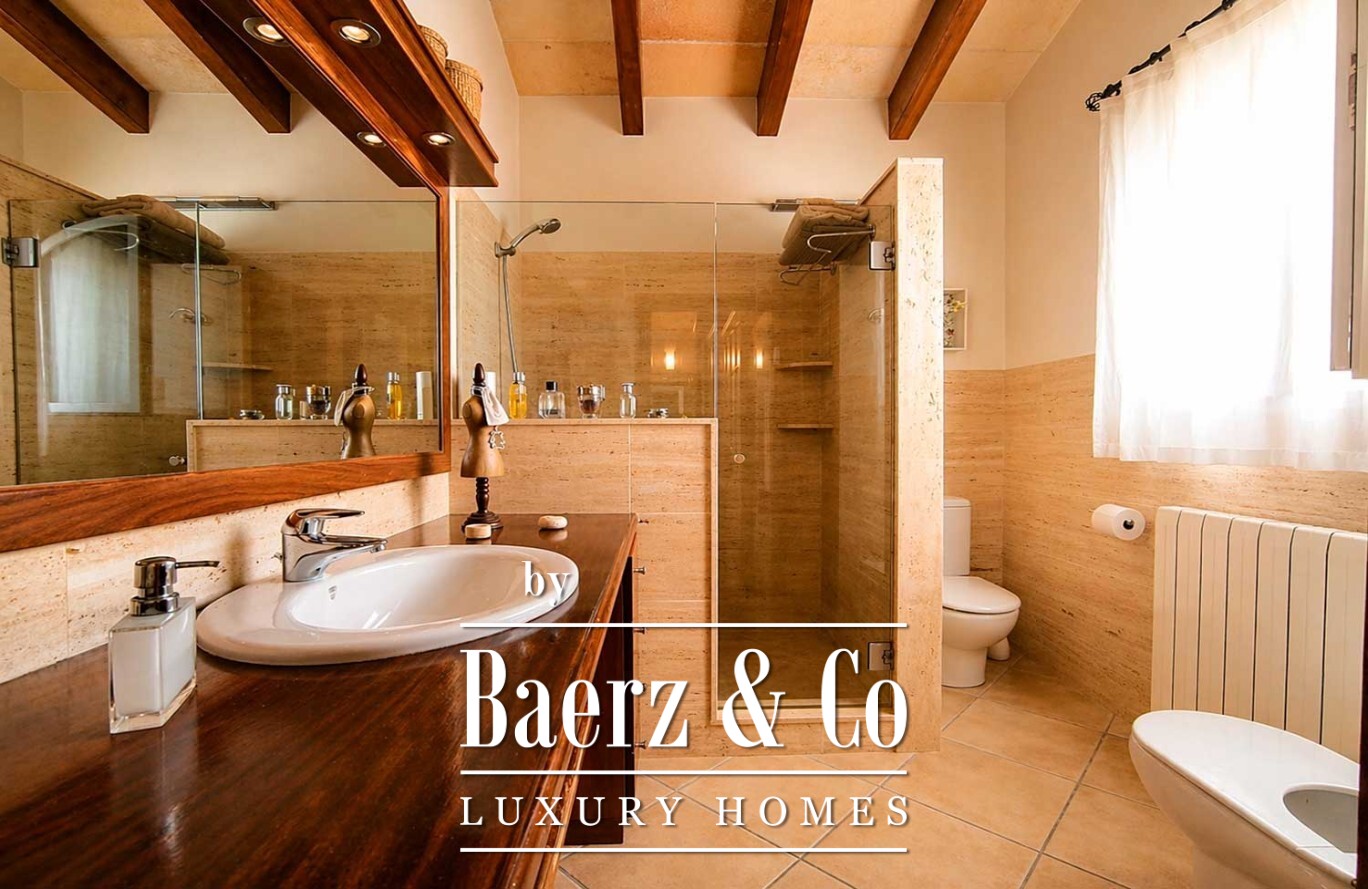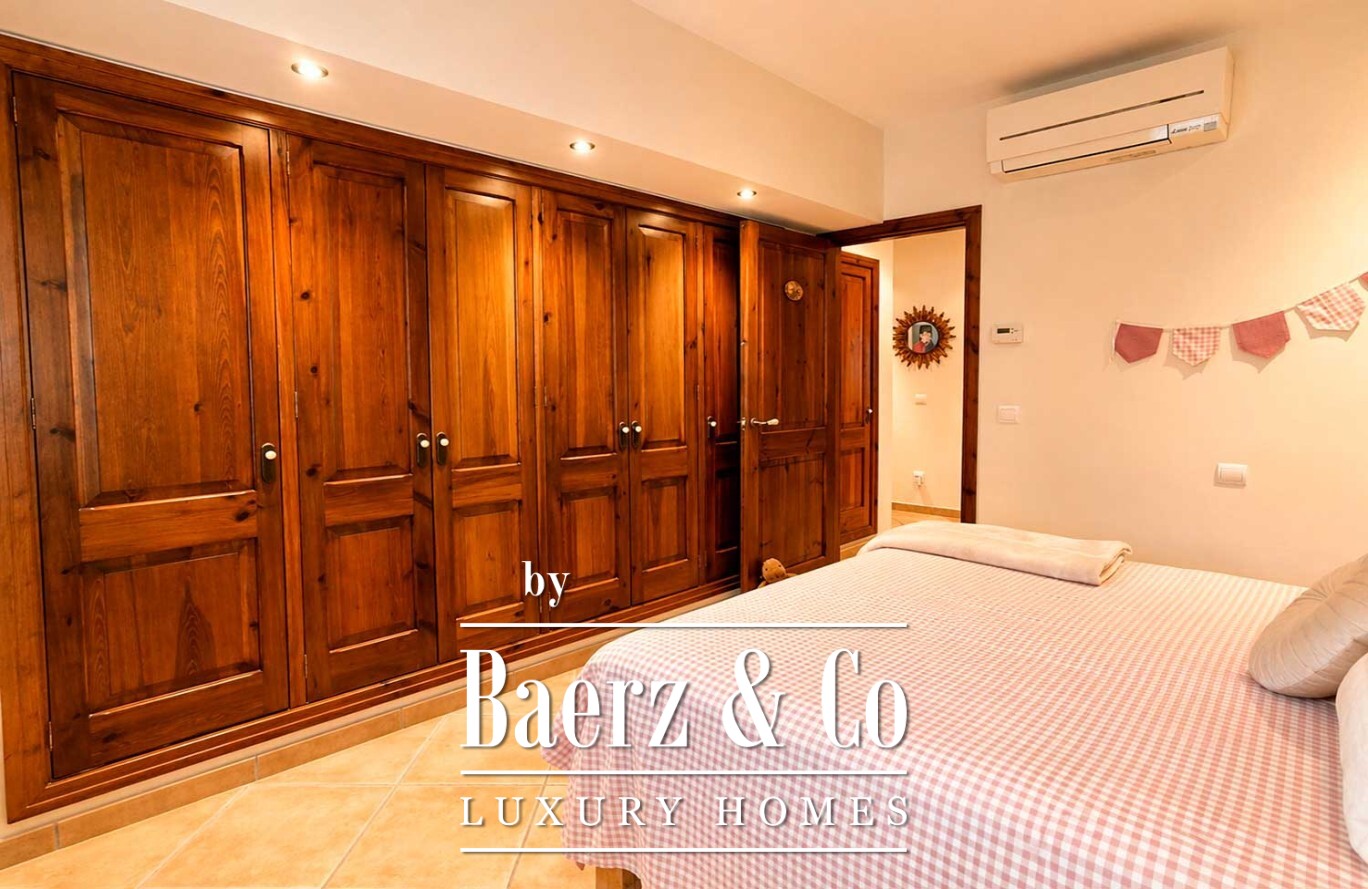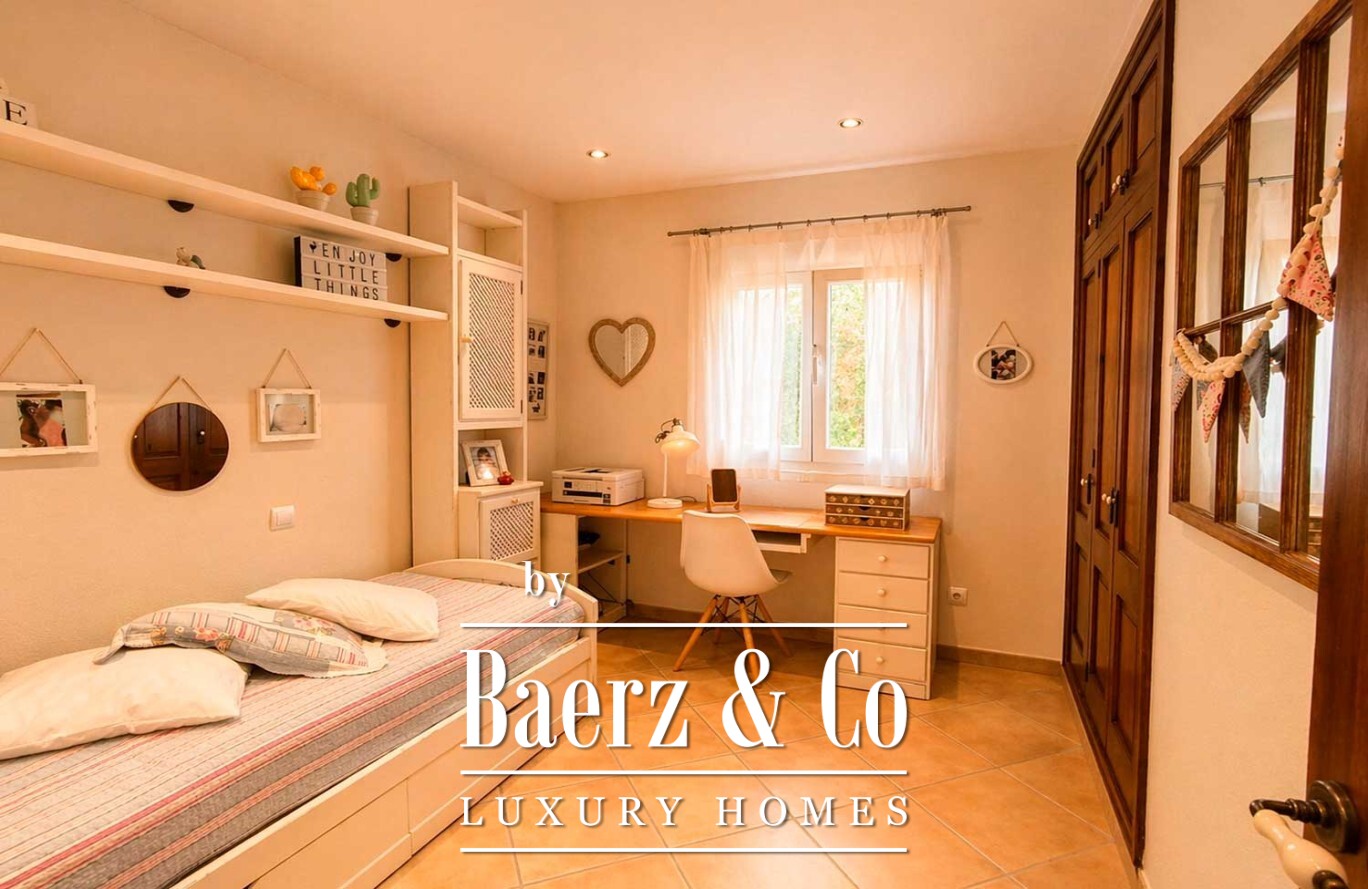 Buiten vormt een royaal zwembad het middelpunt van een tuin met volgroeide bomen en onberispelijk kunstgras, waardoor rust en eenvoudig onderhoud samenkomen. De villa in Ciutadella de Menorca verenigt authenticiteit en privacy met directe toegang tot de Middellandse Zee en biedt daarmee een zeldzame kans voor een exclusieve levensstijl.