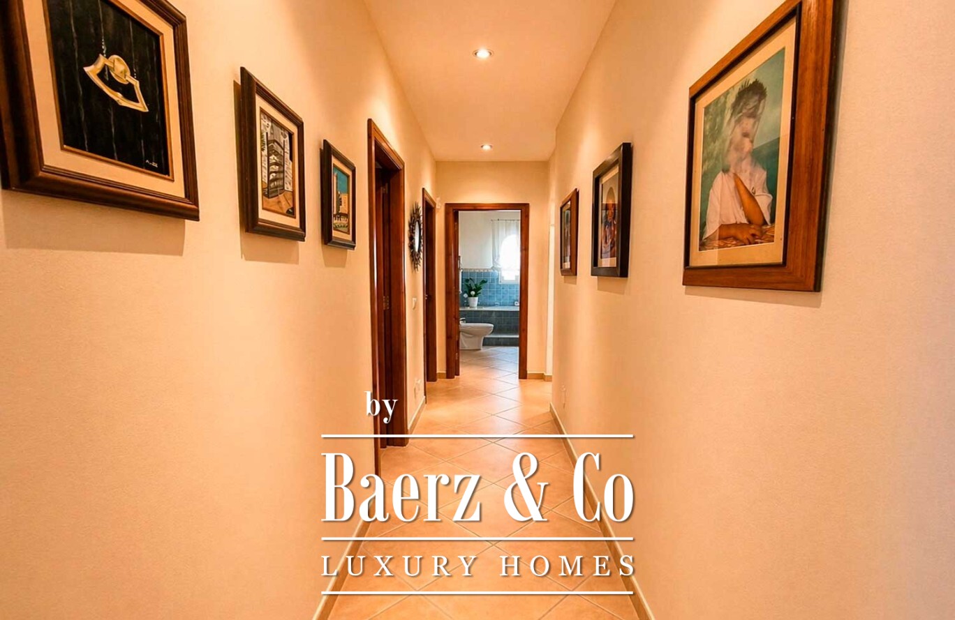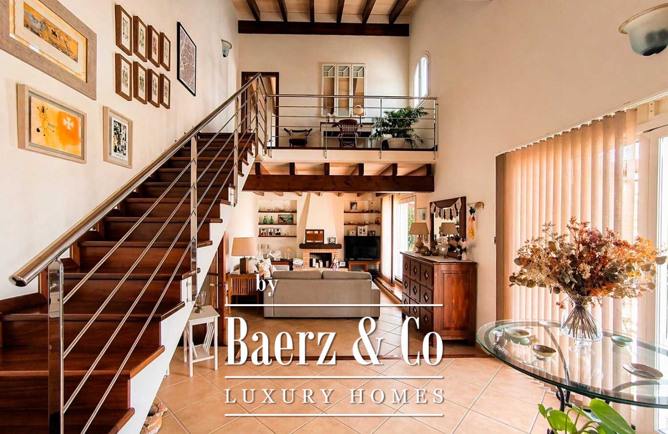 Op de verdieping zorgt een serene overloop, perfect voor werk of bezinning, met uitzicht op de woonruimte voor toegang naar de master suite. Deze privéruimte beschikt over een eigen badkamer en een privéterras, zodat u geniet van zonlicht en een fraai uitzicht in de ochtend.