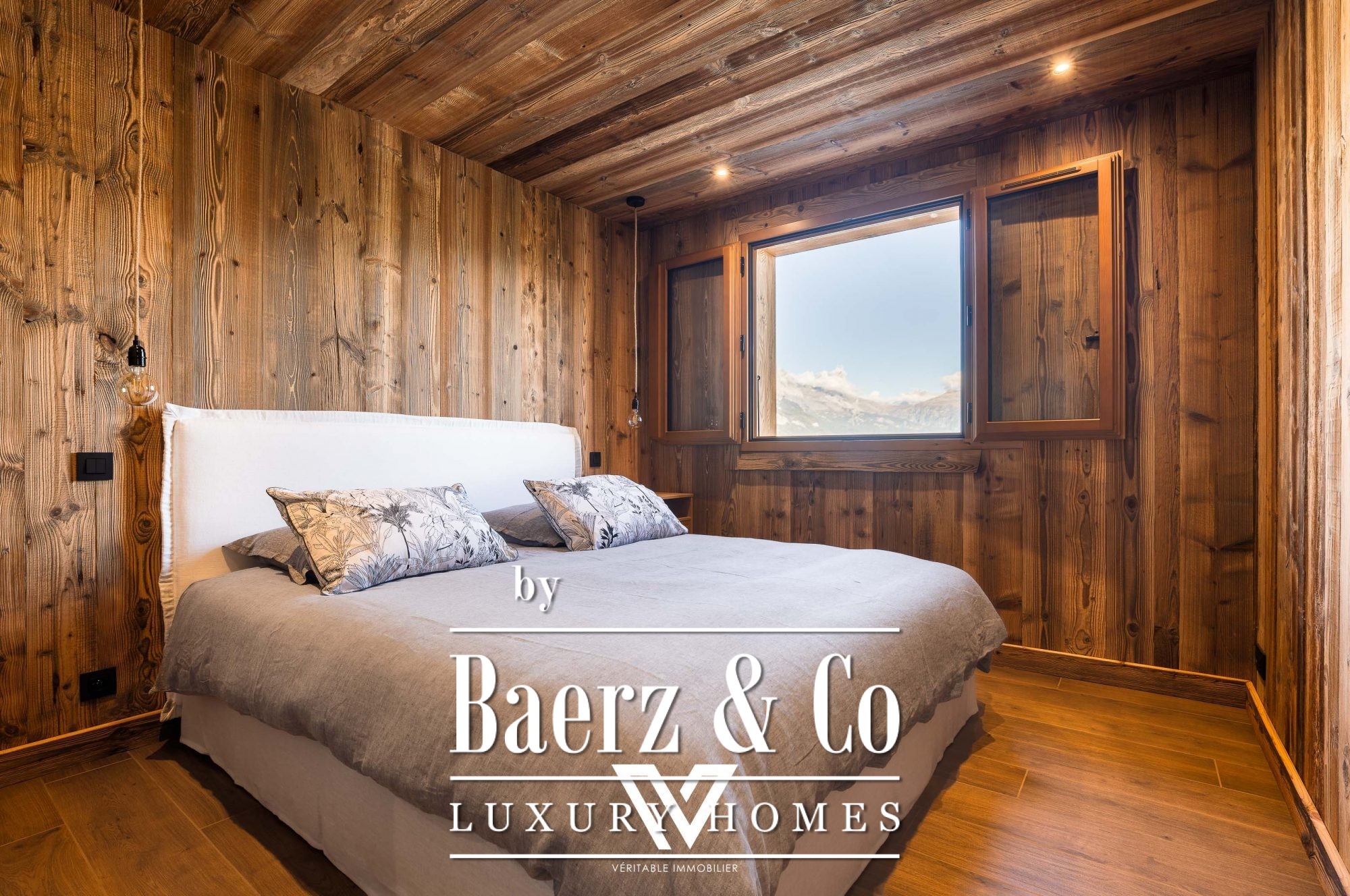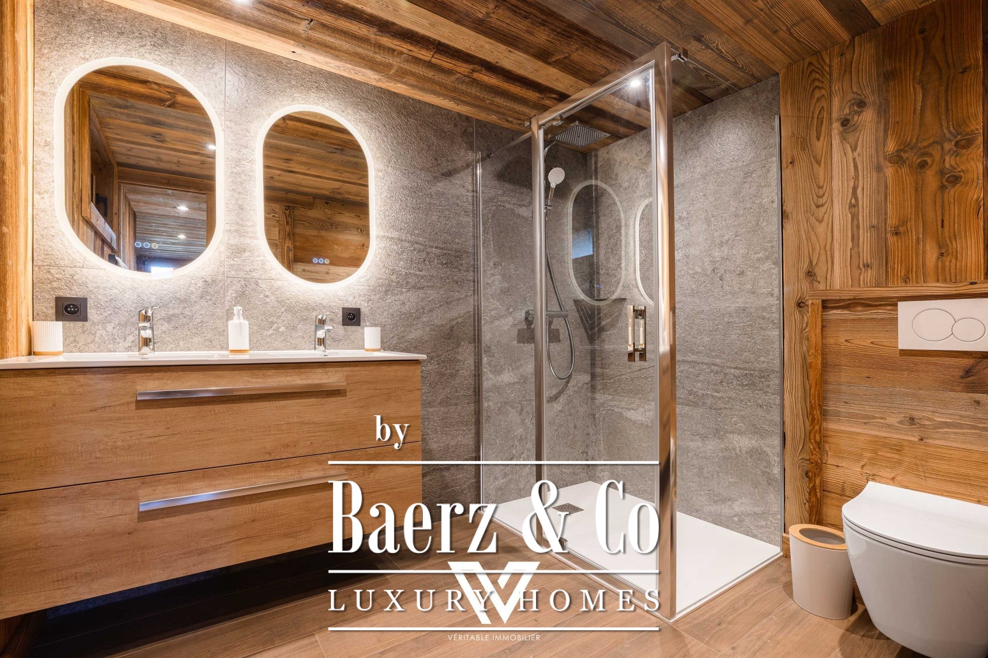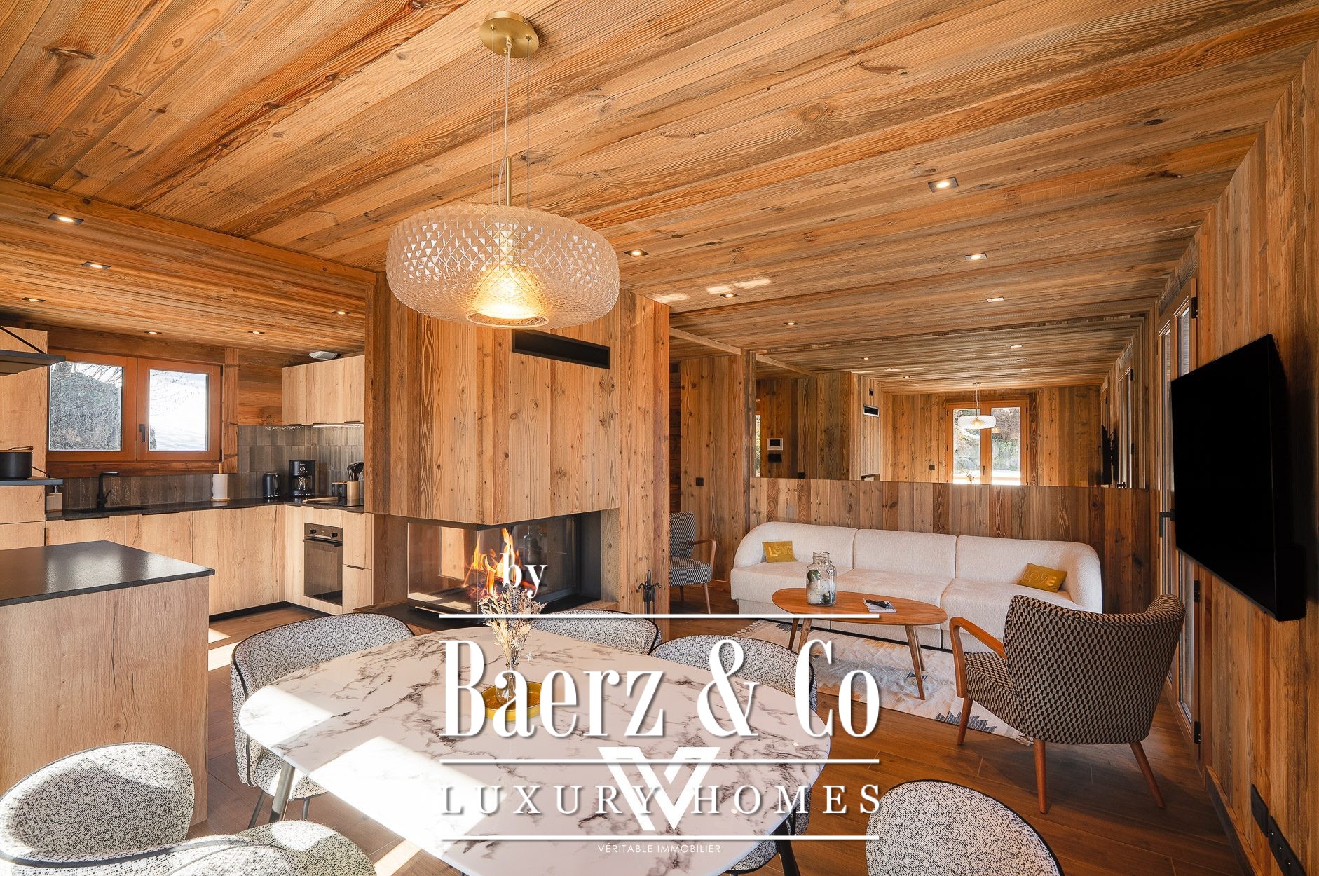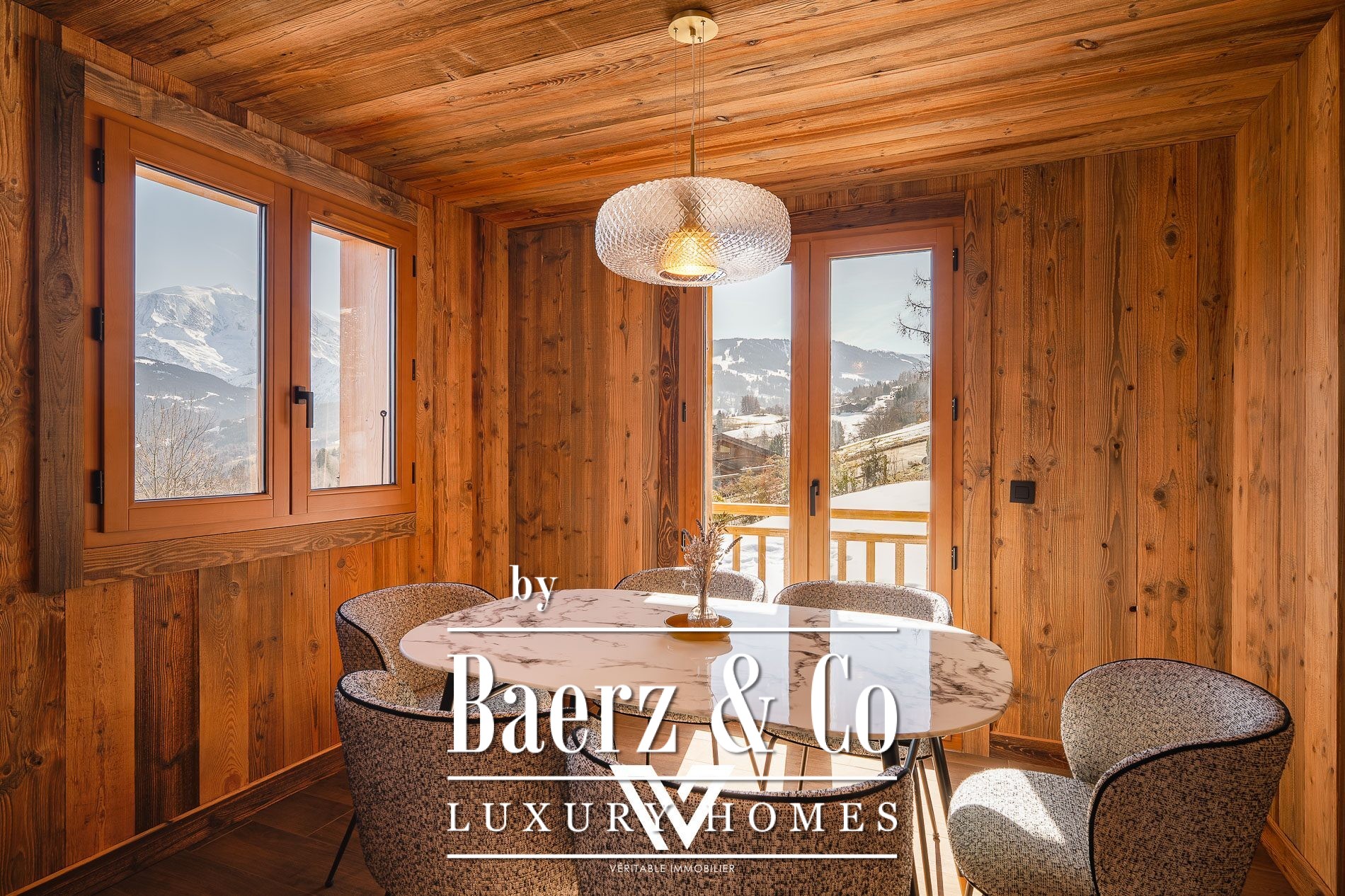 Chalet Combloux met uitzicht op de Mont Blanc is een uitzonderlijke residentie die met grote zorg en aandacht voor milieuvriendelijkheid opnieuw is vormgegeven. Dit volledig gerenoveerde chalet van 147 m² is gerealiseerd met hoogwaardige, milieuvriendelijke materialen en combineert verfijnde afwerking met voelbare warmte, gelegen op een perceel van 785 m² in deze befaamde alpine omgeving.