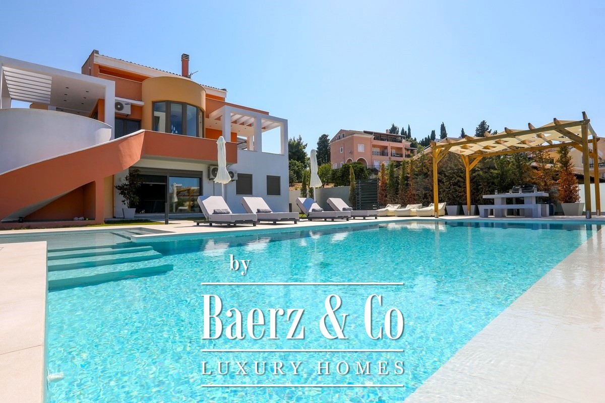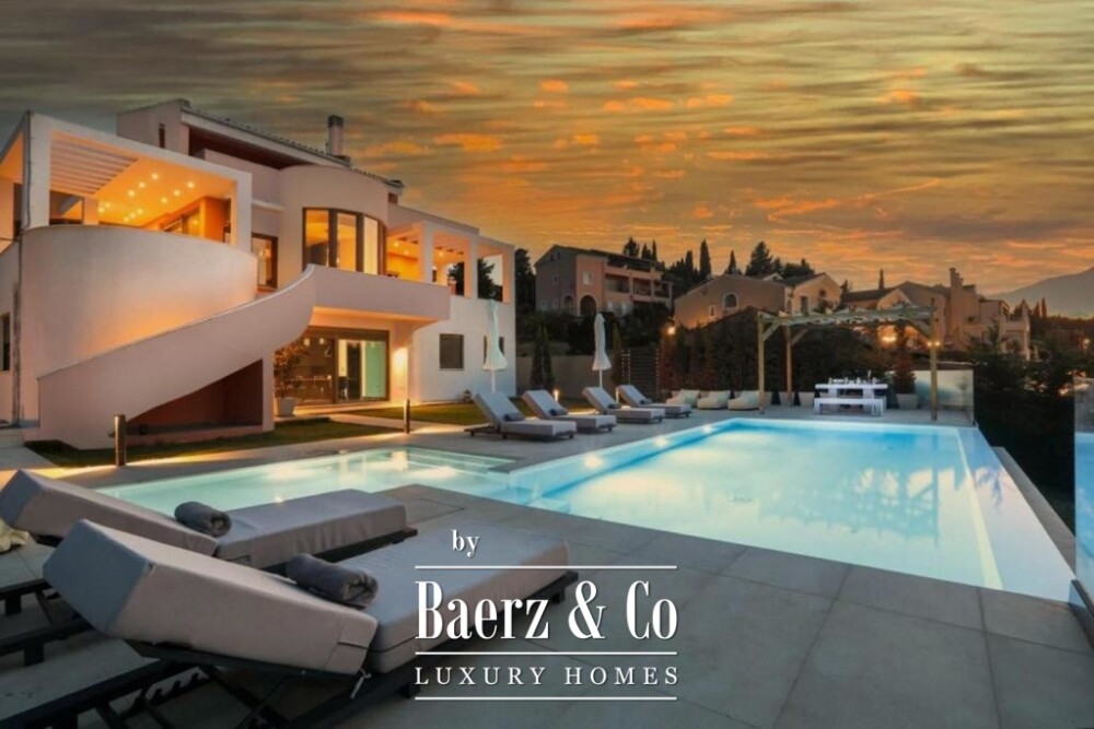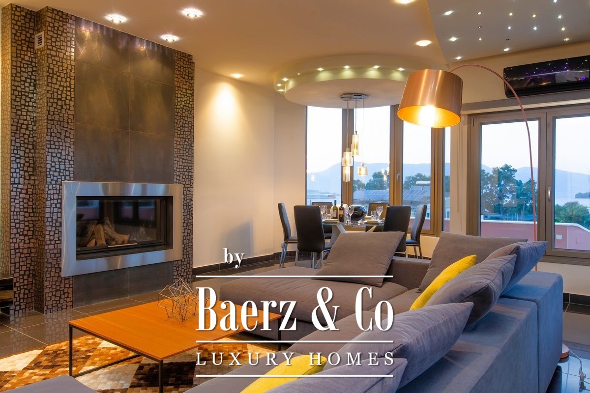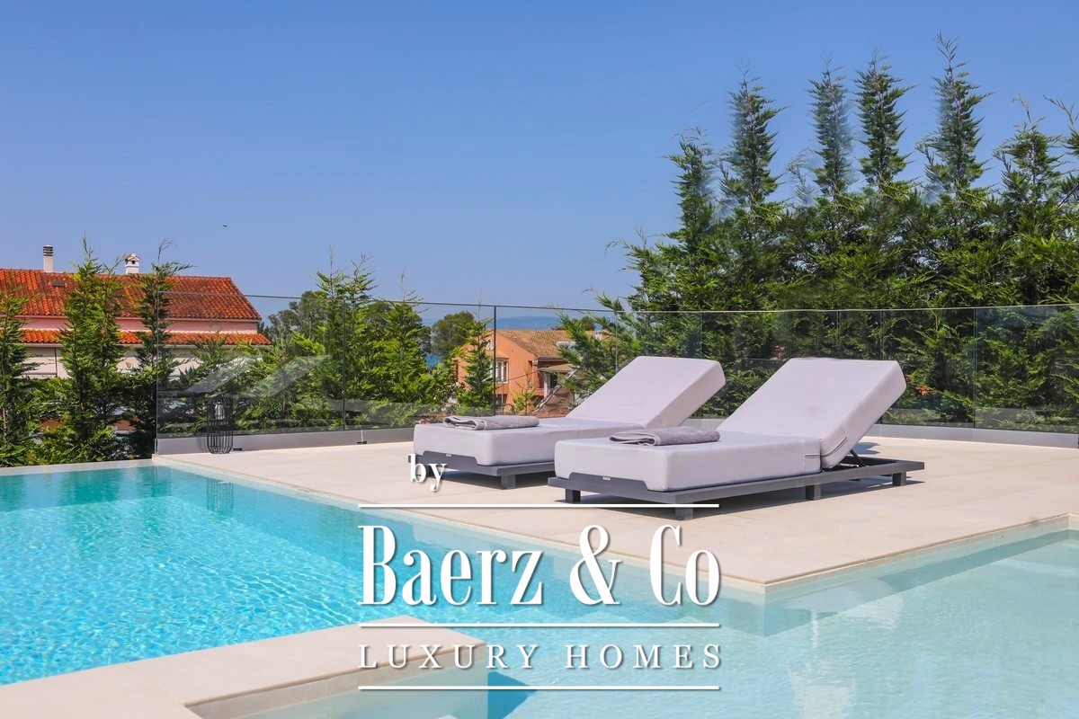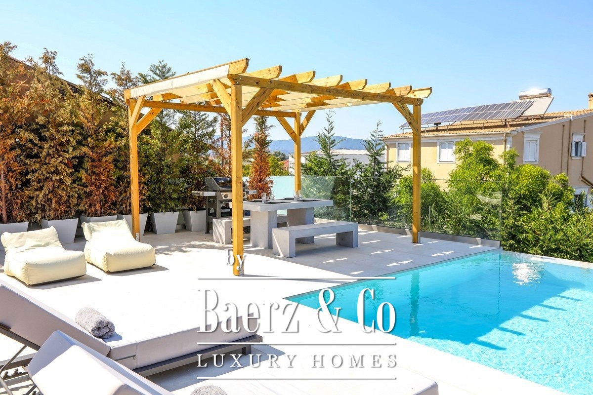 De technische voorzieningen zijn van hoog niveau: verwarming en koeling via een warmtepomp, zonneboilersysteem, energiehaard, geavanceerde beveiliging en dubbele beglazing voor isolatie. Het privézwembad bevindt zich in fraai aangelegde tuinen en relaxzones, compleet met een overdekte pergola, een buiten-eethoek en een ingebouwde barbecue. Veilige parkeergelegenheid is aanwezig op het terrein. Villa Corfu vertegenwoordigt de perfecte samenkomst van privacy, design en een tijdloze investering op een van de meest internationaal erkende locaties van Griekenland.