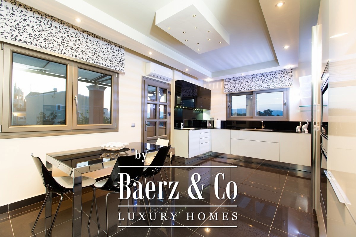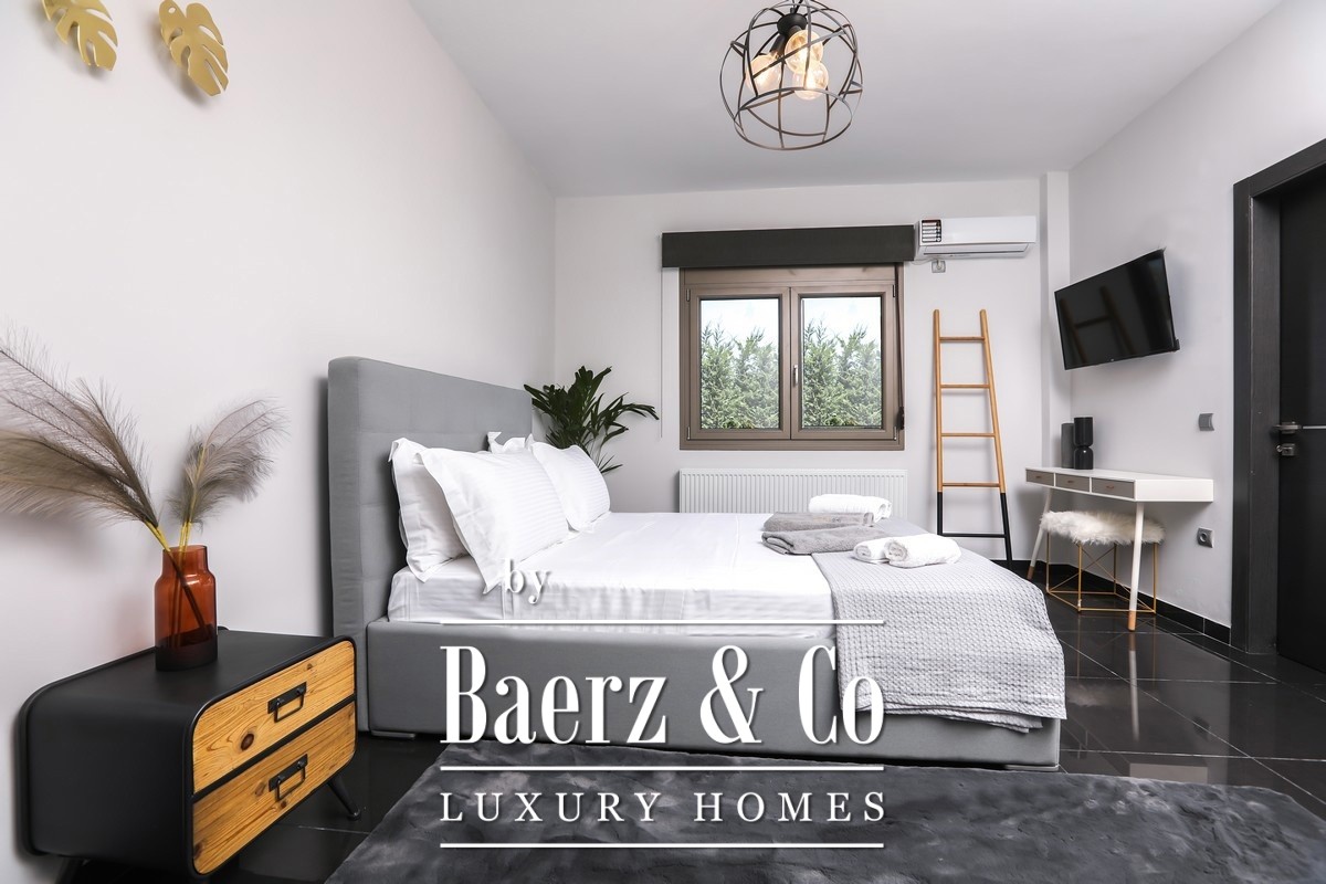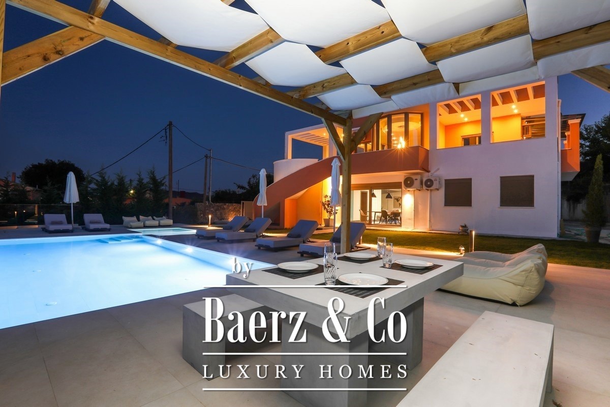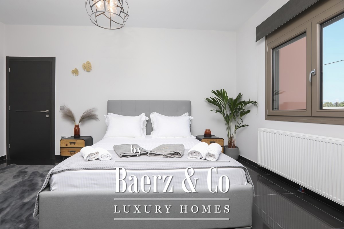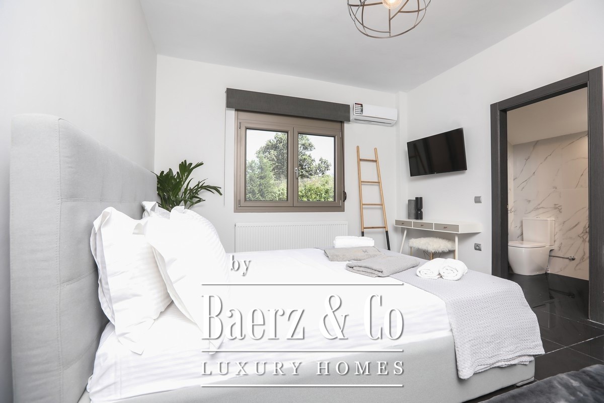 De technische voorzieningen zijn van hoog niveau: verwarming en koeling via een warmtepomp, zonneboilersysteem, energiehaard, geavanceerde beveiliging en dubbele beglazing voor isolatie. Het privézwembad bevindt zich in fraai aangelegde tuinen en relaxzones, compleet met een overdekte pergola, een buiten-eethoek en een ingebouwde barbecue. Veilige parkeergelegenheid is aanwezig op het terrein. Villa Corfu vertegenwoordigt de perfecte samenkomst van privacy, design en een tijdloze investering op een van de meest internationaal erkende locaties van Griekenland.