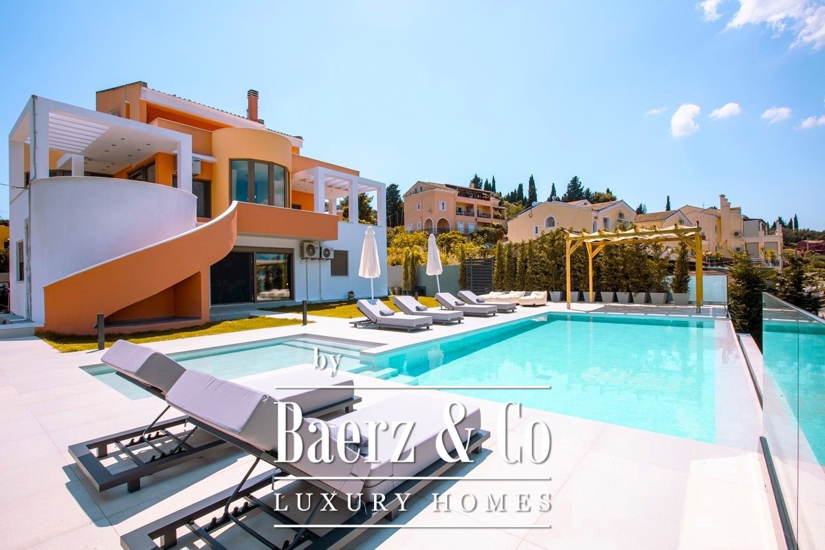 Villa Corfu biedt een verfijnd en eigentijds statement in het noordoosten van het eiland, met 497 m² aan stijlvolle leefruimte en panoramisch uitzicht op de Ionische Zee. Deze villa ligt op een bevoorrecht perceel van 1.073,59 m² in Alykes Potamou, op minder dan vier kilometer van zowel de stad Corfu als de haven en internationale luchthaven. Dankzij de ligging op een lichte heuvel geniet u van privacy, met directe toegang tot populaire stranden zoals Kommeno en Paleokastritsa.