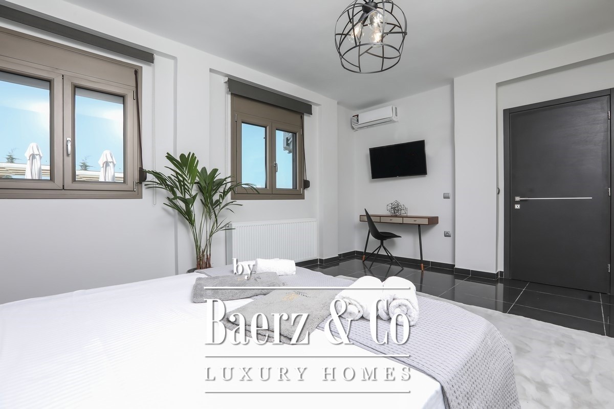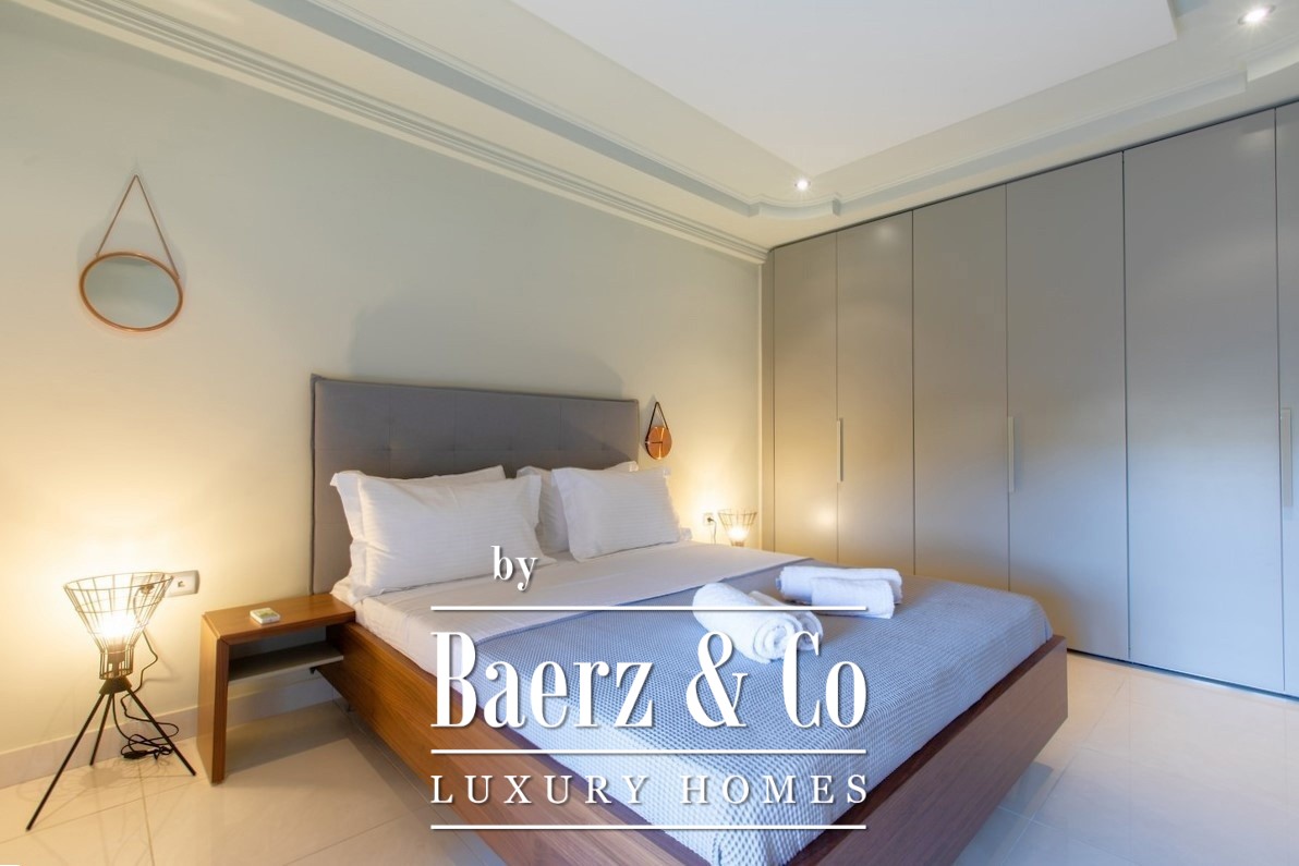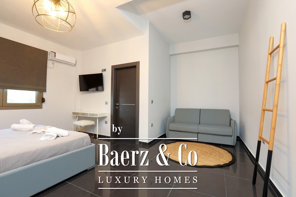 De woning opent met twee zelfstandige appartementen op de begane grond, elk zorgvuldig ontworpen voor maximale autonomie en privacy. De hoofdmaisonnette strekt zich uit over de eerste en tweede verdieping en beschikt over een royale leefruimte, een moderne keuken en een reeks lichte slaapkamers die toegang bieden tot semi-open buitenruimtes, waar de zeebries en het omliggende landschap u tegemoetkomen. Vijf badkamers zijn verdeeld over het huis voor optimaal comfort.