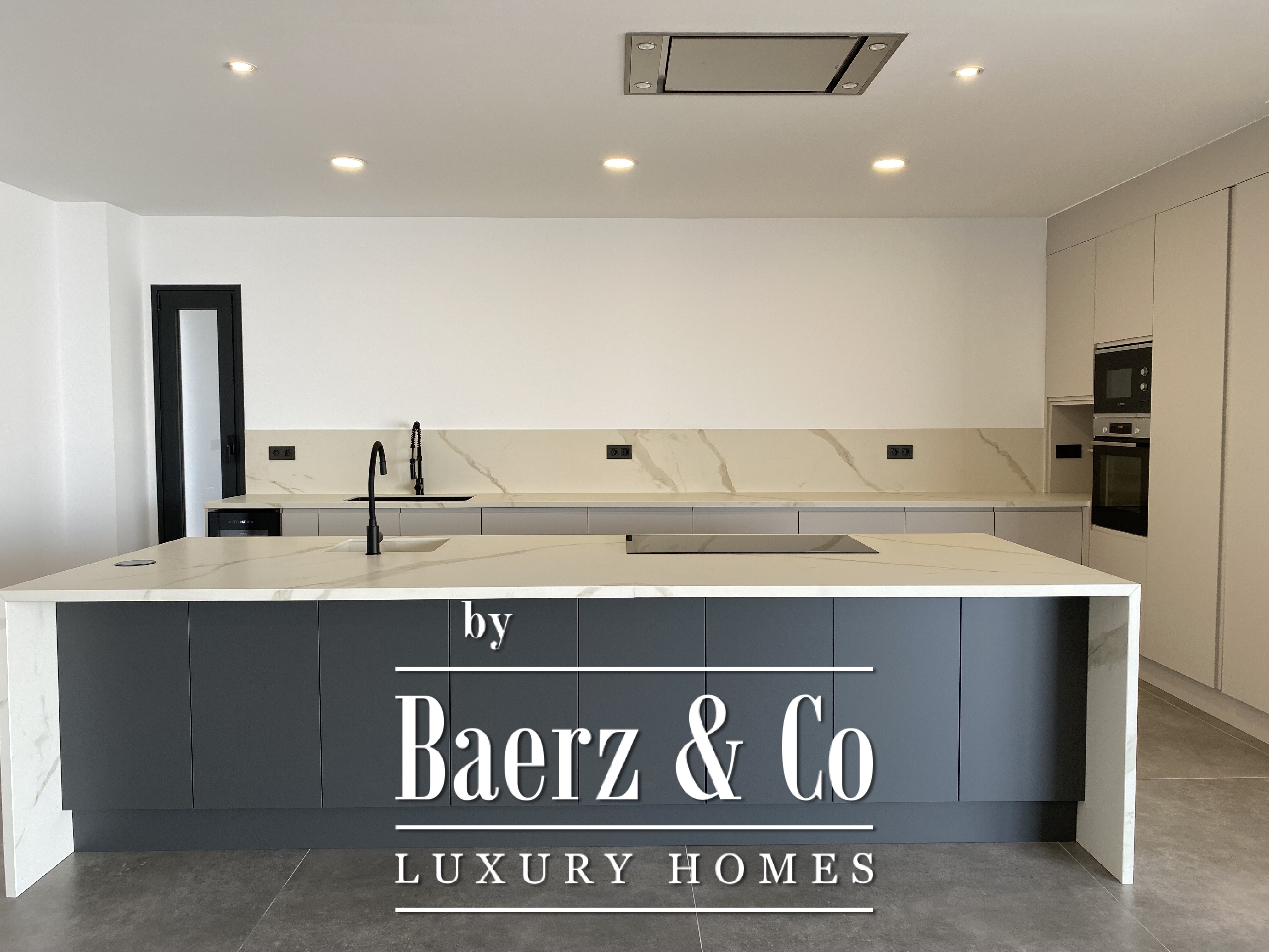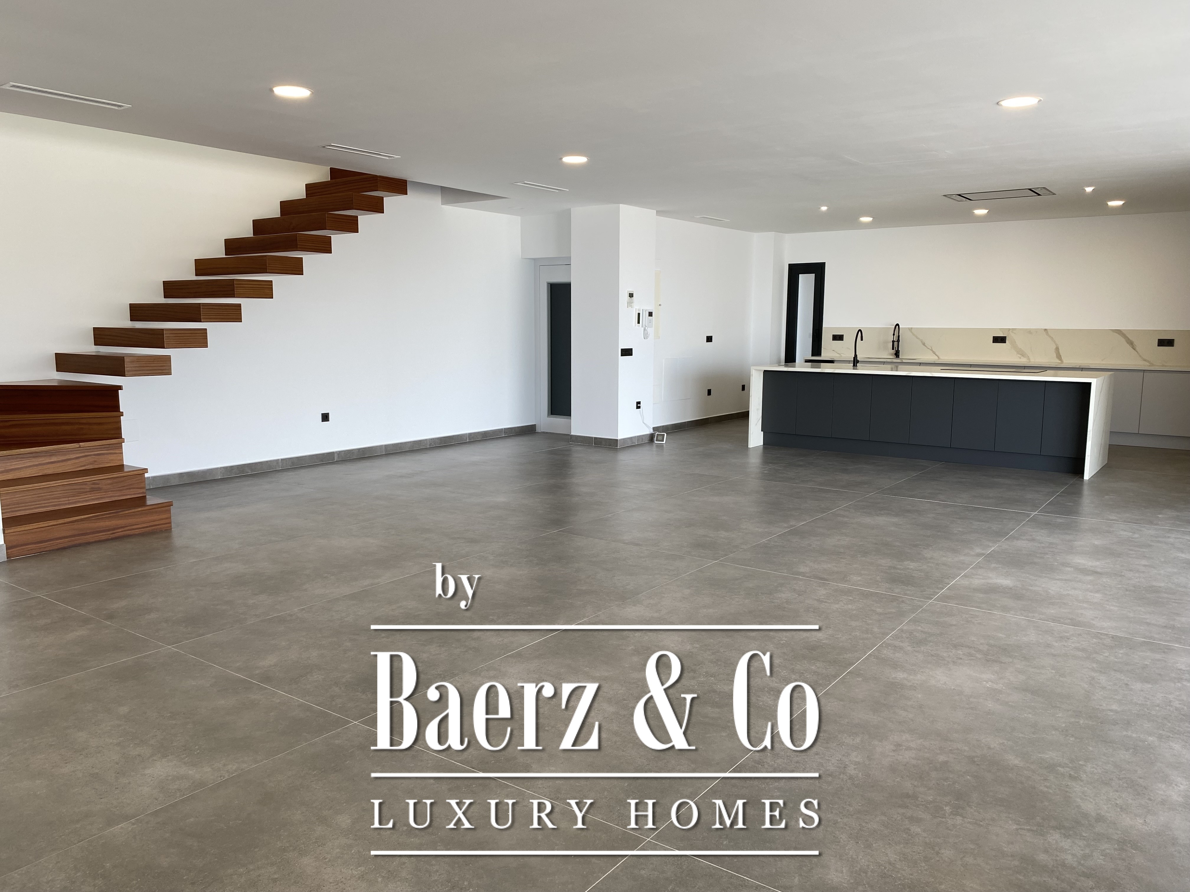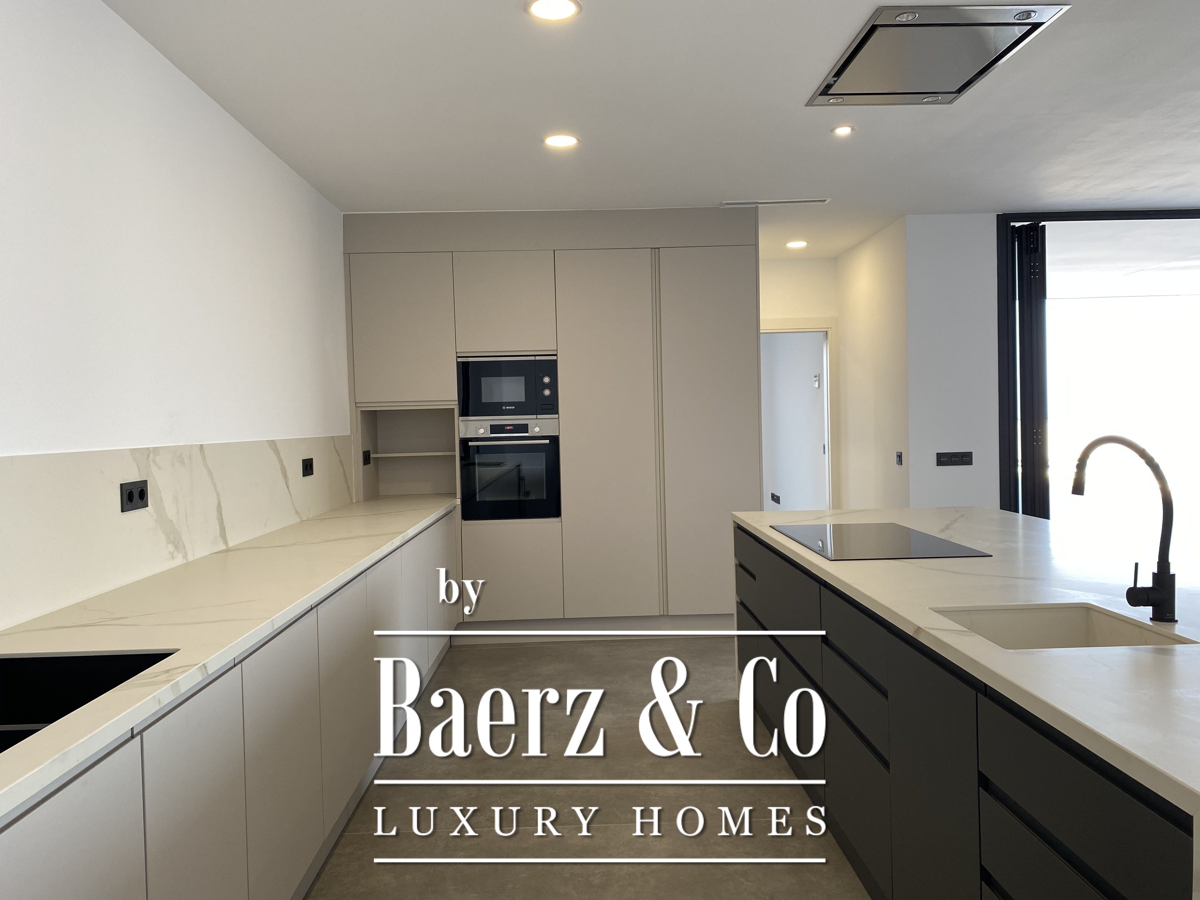 Deze villa, vorig jaar gebouwd met veel aandacht voor detail en uitstekende materialen, heeft een minimalistisch ontwerp en royale open ruimtes. Beginnend met een perceel van 755 m² en een “Infinity”-zwembad van bijna 40 m², gevolgd door een open woon-eetkamer met een volledig opvouwbare glazen wand die de woonruimte naar buiten uitbreidt en last but not least, een verbazingwekkend mooie keuken. De nieuwe designkeuken is onlangs geïnstalleerd en biedt uitzicht op zee, boven- en onderkasten en een eiland met een extra spoelbak. Volledig uitgerust met hoogwaardige apparatuur. Op dezelfde verdieping vindt u een ruim kantoor met een gastentoilet.