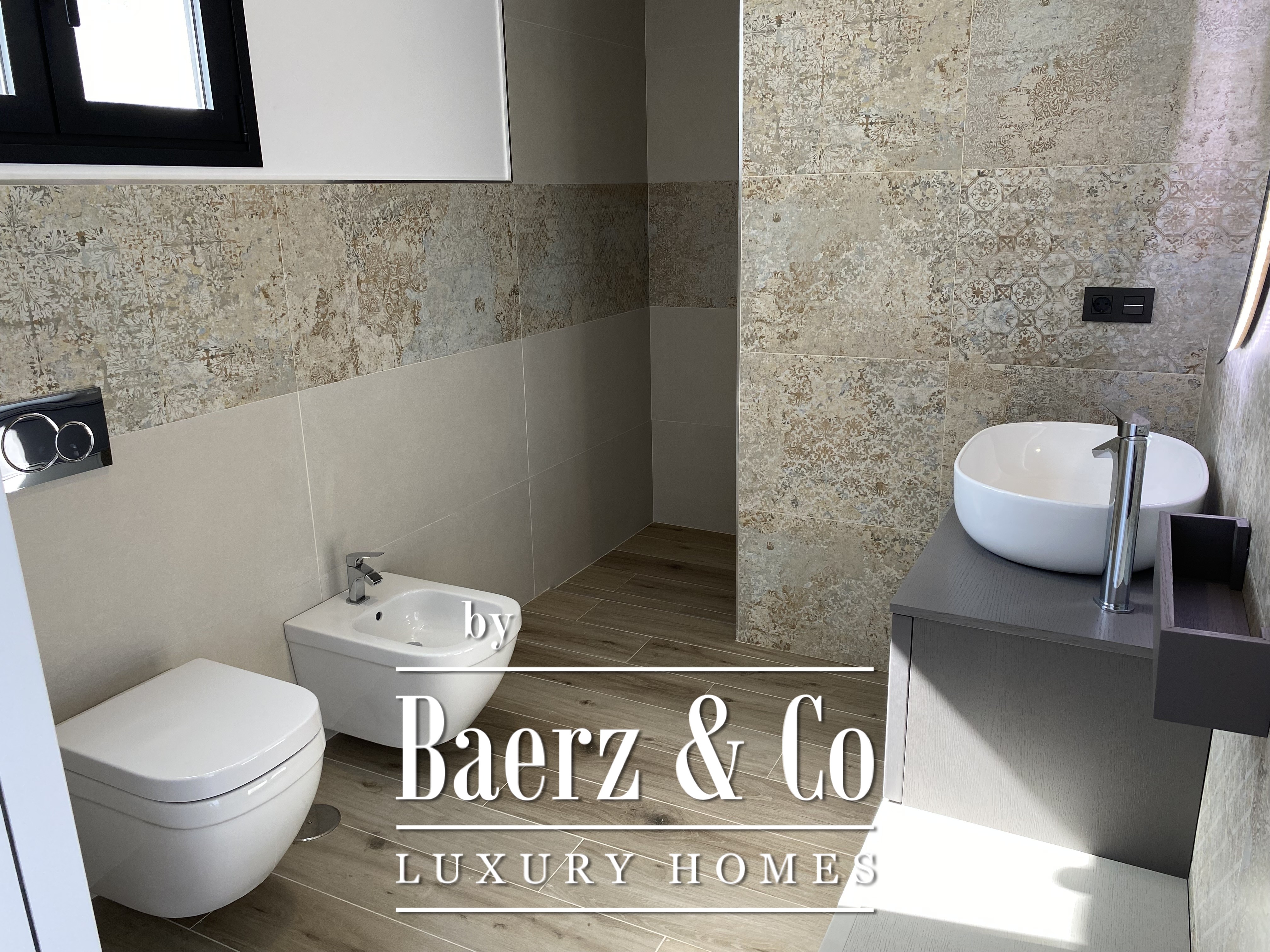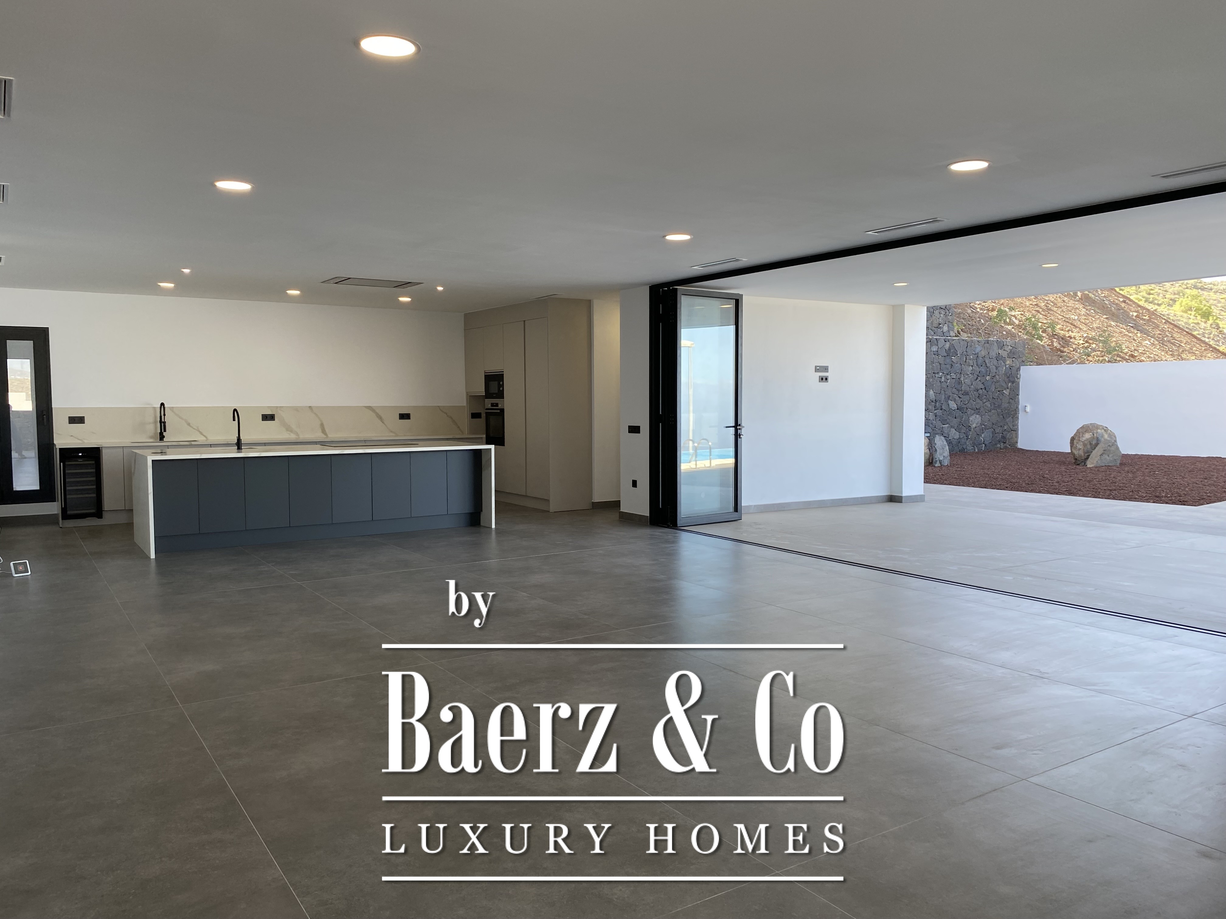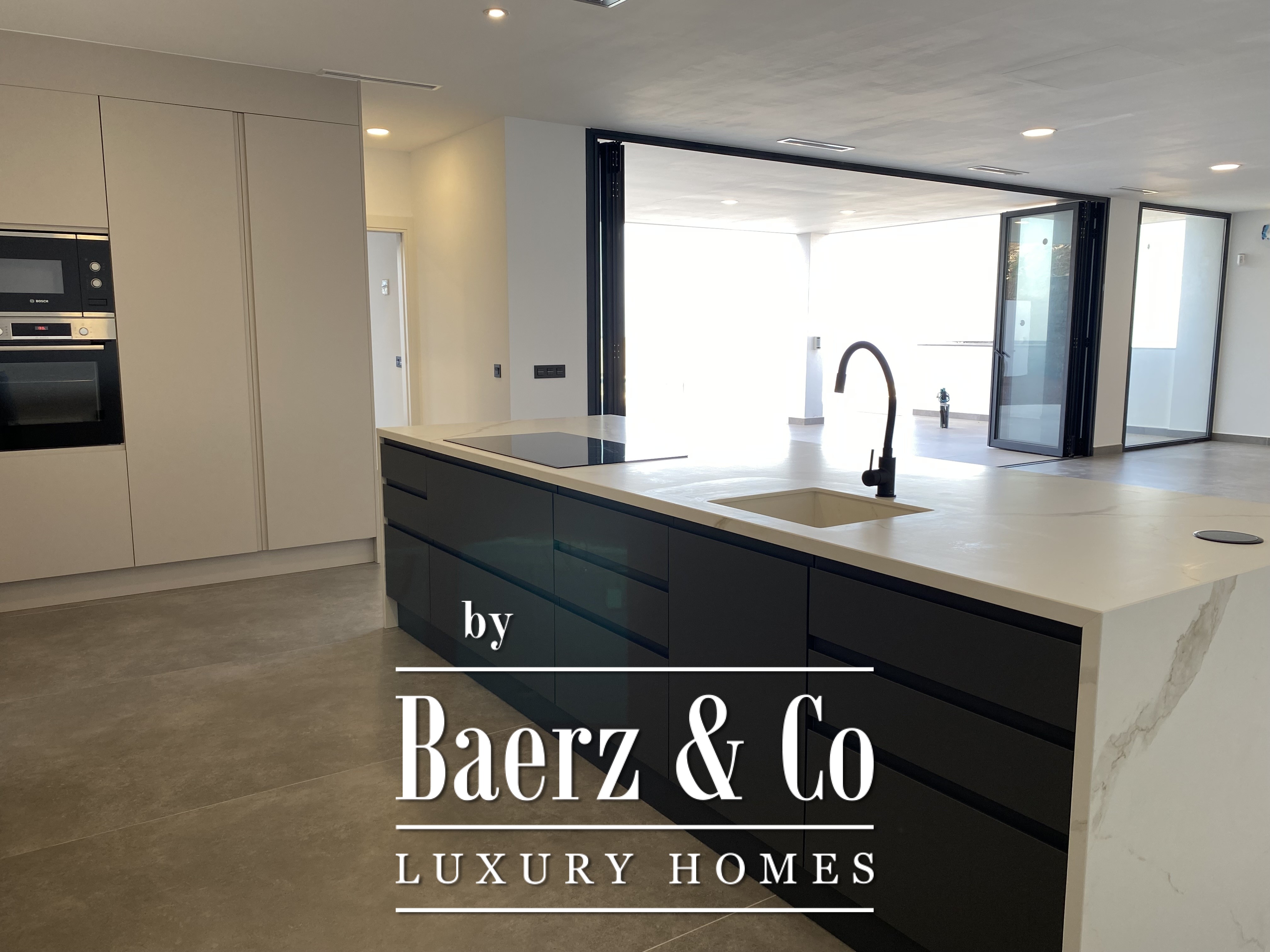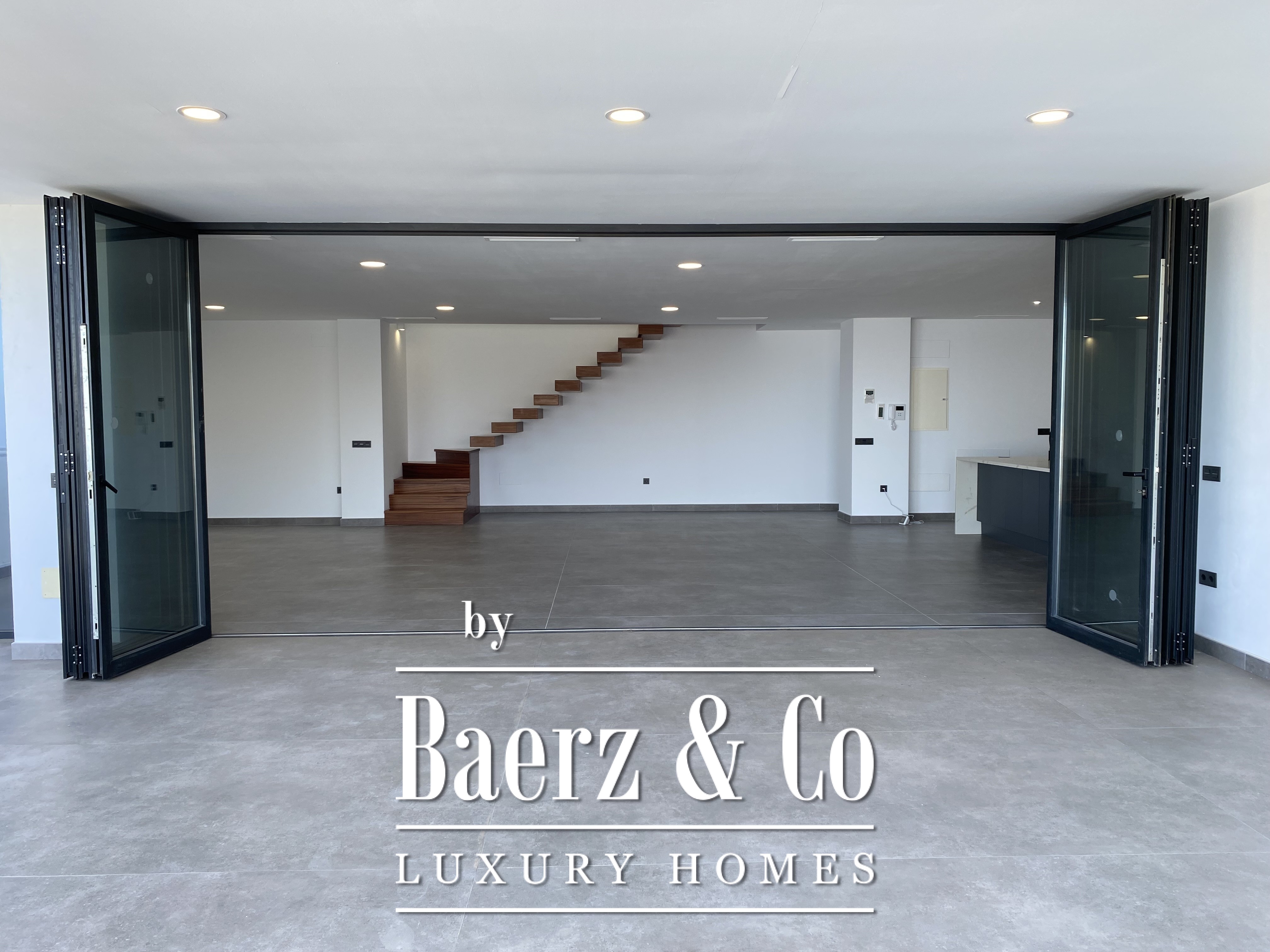 Deze villa, vorig jaar gebouwd met veel aandacht voor detail en uitstekende materialen, heeft een minimalistisch ontwerp en royale open ruimtes. Beginnend met een perceel van 755 m² en een “Infinity”-zwembad van bijna 40 m², gevolgd door een open woon-eetkamer met een volledig opvouwbare glazen wand die de woonruimte naar buiten uitbreidt en last but not least, een verbazingwekkend mooie keuken. De nieuwe designkeuken is onlangs geïnstalleerd en biedt uitzicht op zee, boven- en onderkasten en een eiland met een extra spoelbak. Volledig uitgerust met hoogwaardige apparatuur. Op dezelfde verdieping vindt u een ruim kantoor met een gastentoilet.