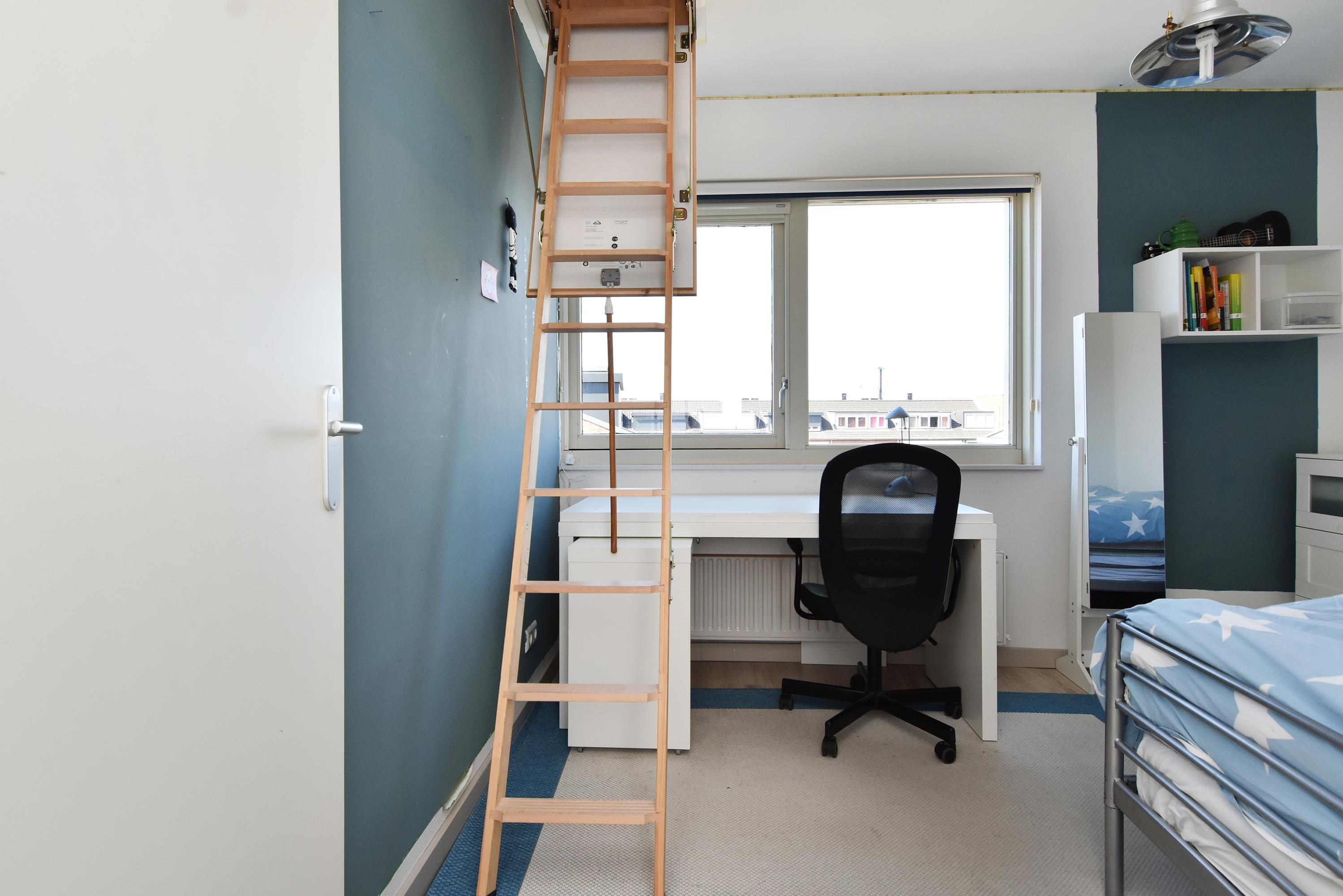 Op de eerste verdieping vind je maar liefst vijf volwaardige slaapkamers, waarvan één momenteel als kastenkamer wordt gebruikt. De moderne badkamer met dubbele wastafel en twee inloopdouches zorgt voor comfort en gemak, terwijl een apart toilet extra praktisch is voor een groot gezin.