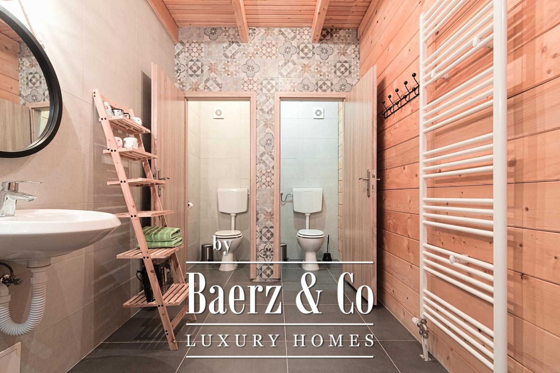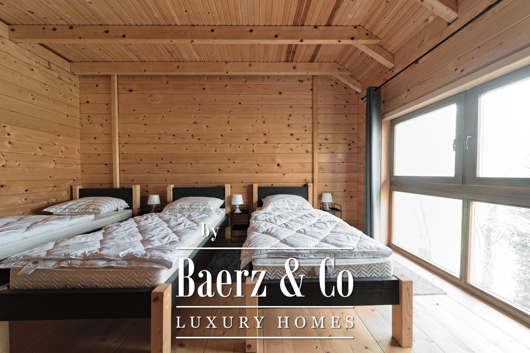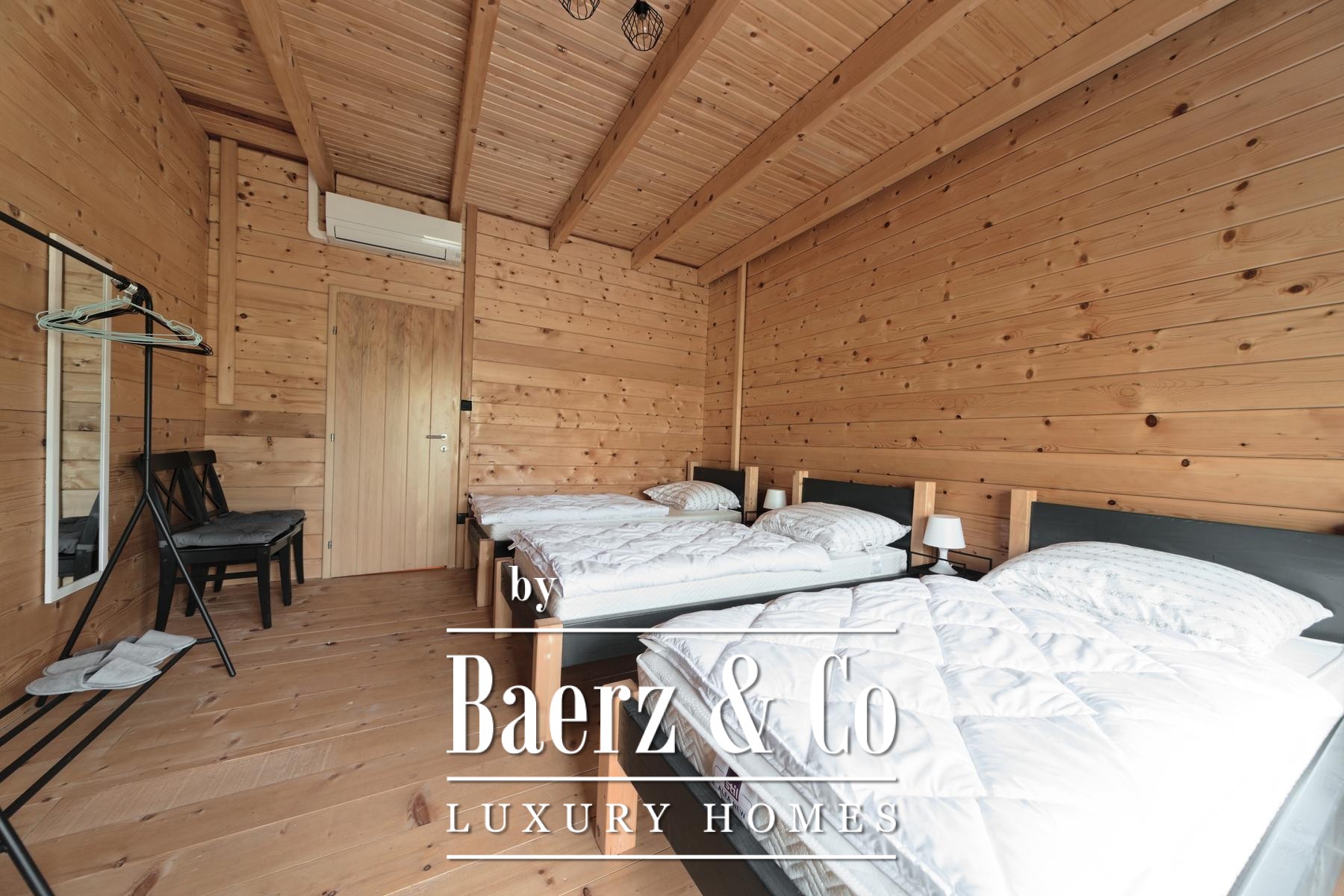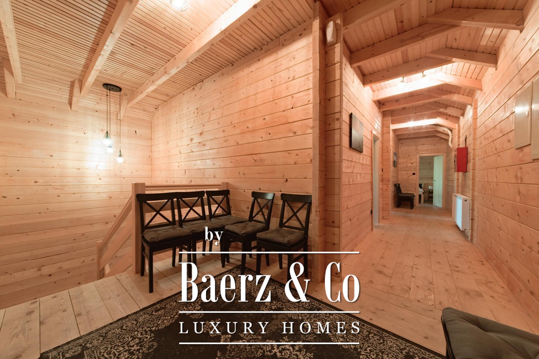 Grenzend aan de hoofdwoning liggen vijf recent opgeleverde houten woningen, elk met 80 m² woonoppervlak. De indeling omvat een lichte woonkamer en badkamer op de begane grond, terwijl de bovenverdieping plaats biedt aan twee slaapkamers. Aan de achterzijde bieden privéterrassen uitzicht op het ruime perceel en het verwarmingssysteem is ingericht op zelfstandigheid en efficiëntie.