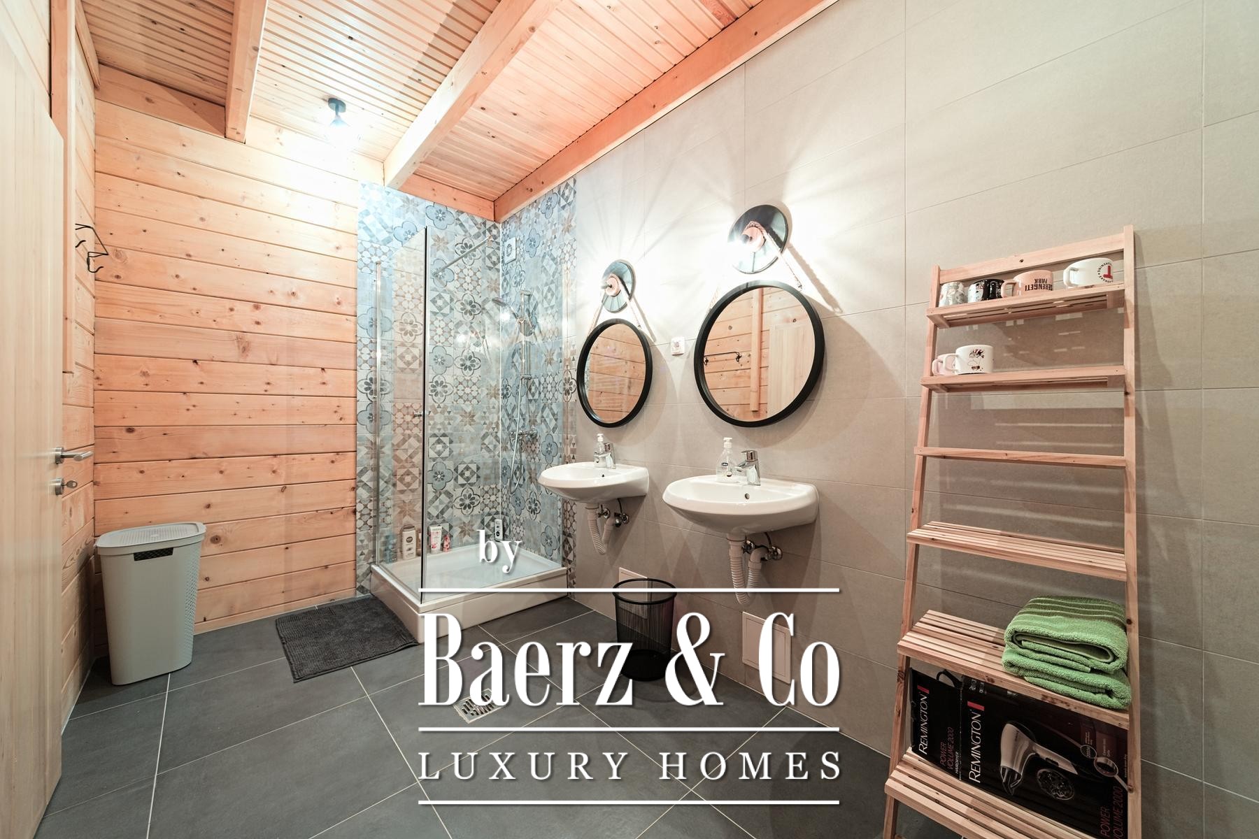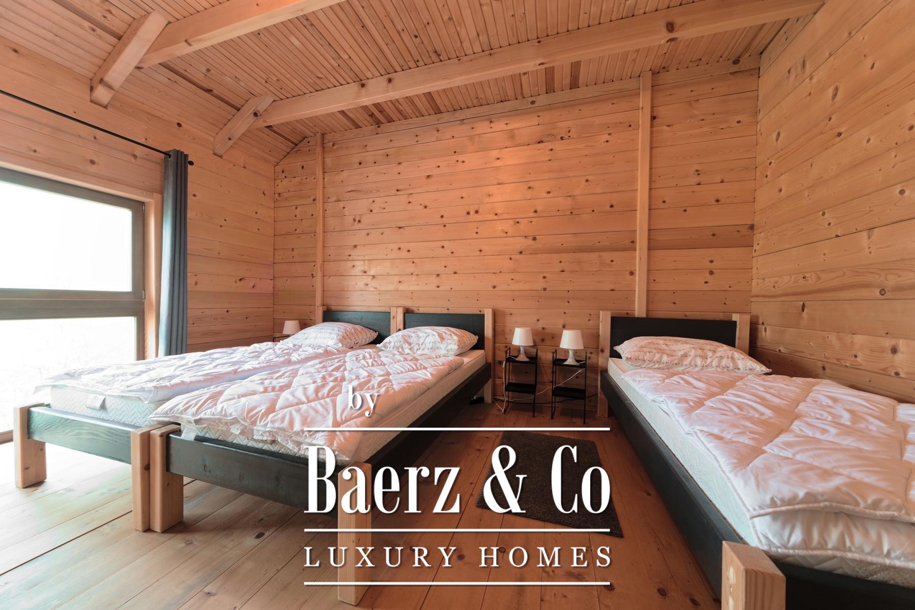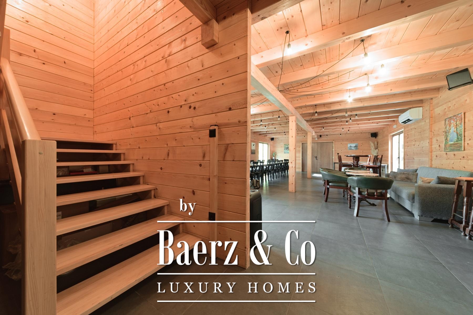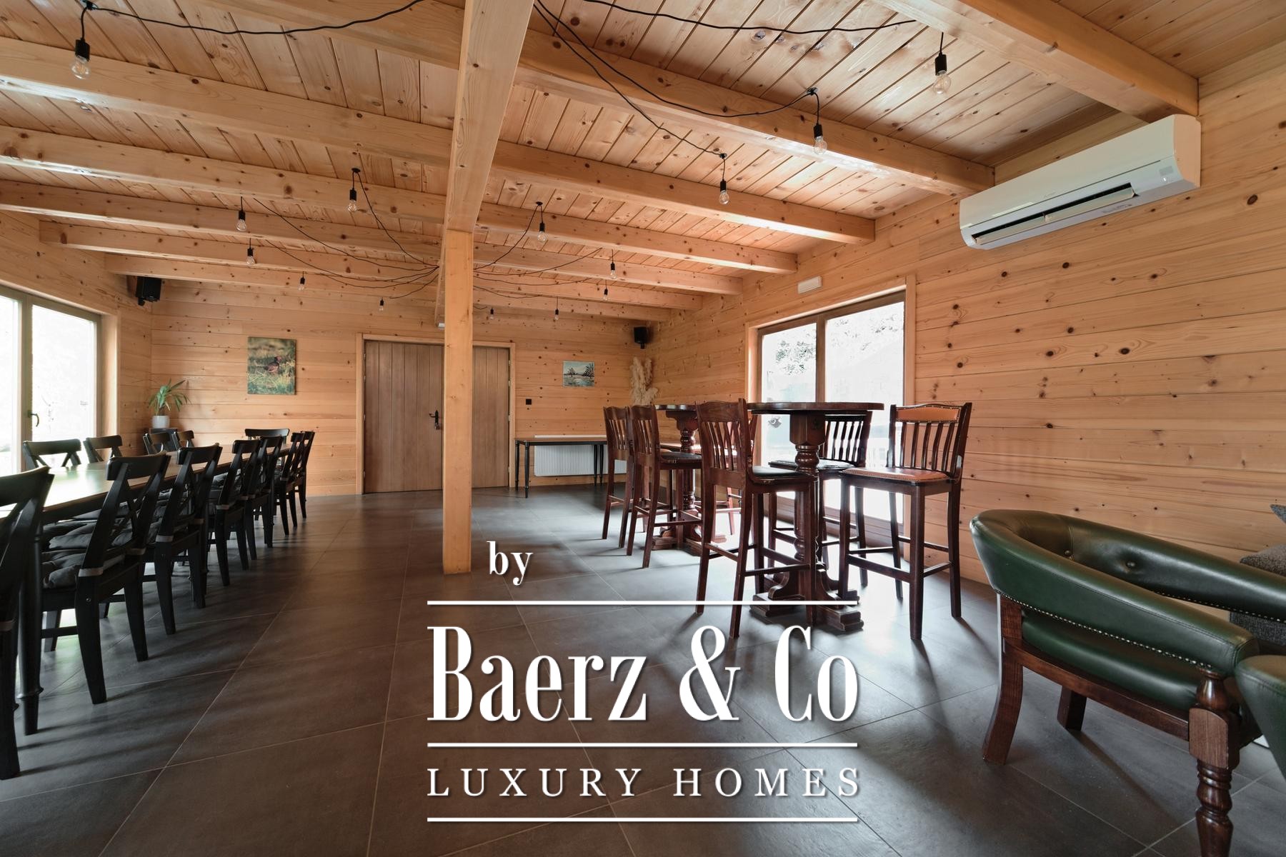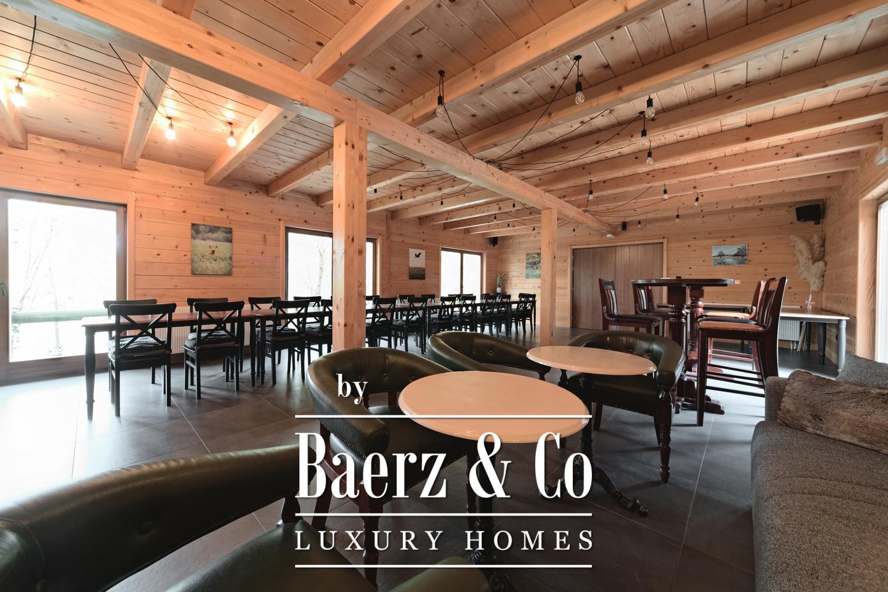 Grenzend aan de hoofdwoning liggen vijf recent opgeleverde houten woningen, elk met 80 m² woonoppervlak. De indeling omvat een lichte woonkamer en badkamer op de begane grond, terwijl de bovenverdieping plaats biedt aan twee slaapkamers. Aan de achterzijde bieden privéterrassen uitzicht op het ruime perceel en het verwarmingssysteem is ingericht op zelfstandigheid en efficiëntie.