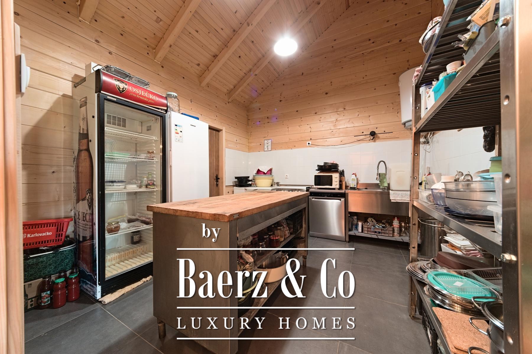 Dit zakelijk complex Draž bevindt zich in het hart van Baranja en biedt een gevestigd accommodatieportfolio op een perceel van 16.000 m². Het geheel omvat een hoofdwoning en zes verhuurhuizen en presenteert zich als een zeldzame kans voor veeleisende investeerders die een positie zoeken in een van de dynamische grensregio’s van Kroatië. De hoofdresidentie, gebouwd in 2023, beschikt over een veelzijdige evenementenruimte geschikt voor maximaal 50 gasten, een bar, een doordachte keuken, bijruimten, sanitaire voorzieningen, en tien bedden op de bovenverdieping. Airconditioning, centrale verwarming via een pelletsysteem en internetverbinding zorgen het hele jaar door voor comfort en moeiteloze exploitatie. Zes parkeerplaatsen bevinden zich aan de voorzijde van het gebouw.