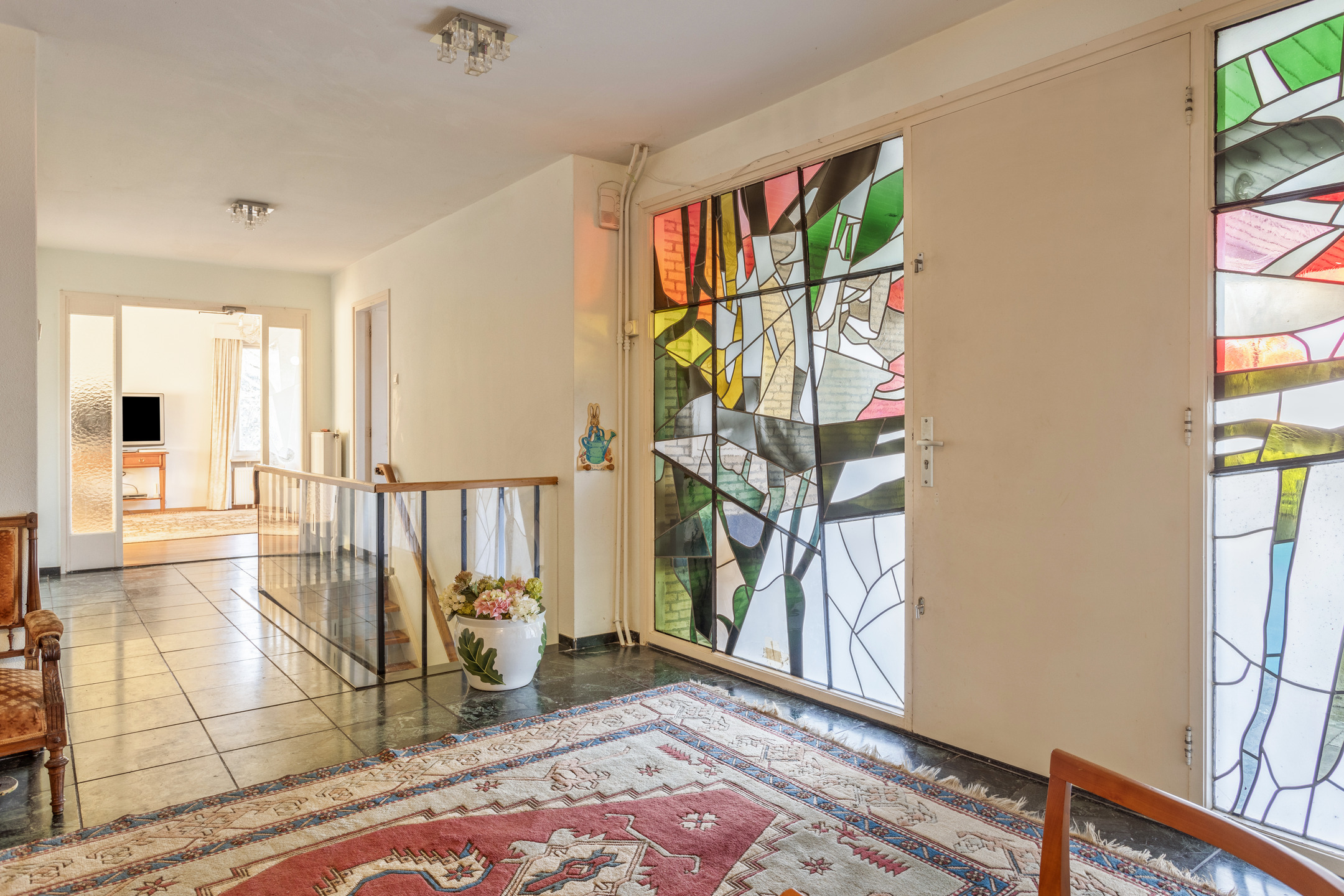 Deze villa, gebouwd in de jaren ’70 en in 2001 stijlvol uitgebreid, kenmerkt zich door strakke lijnen, grote raampartijen en een uniek glas-in-loodpaneel van Hans Morselt. Het resultaat is een woning met ziel, sfeer en hedendaags comfort.