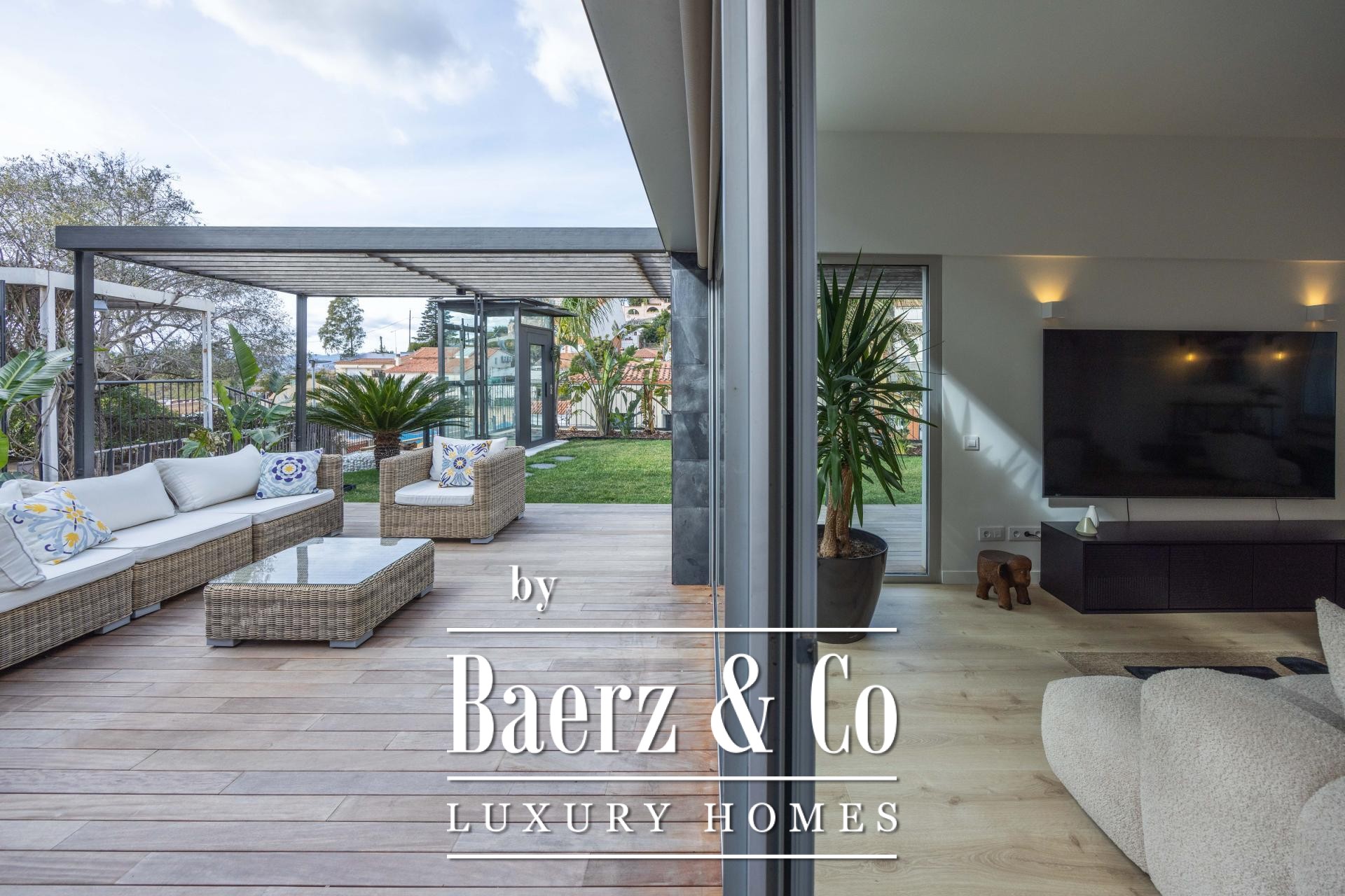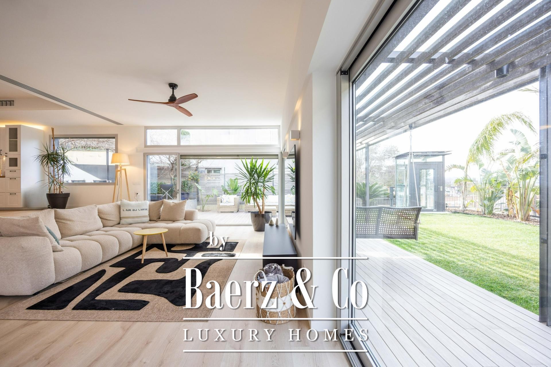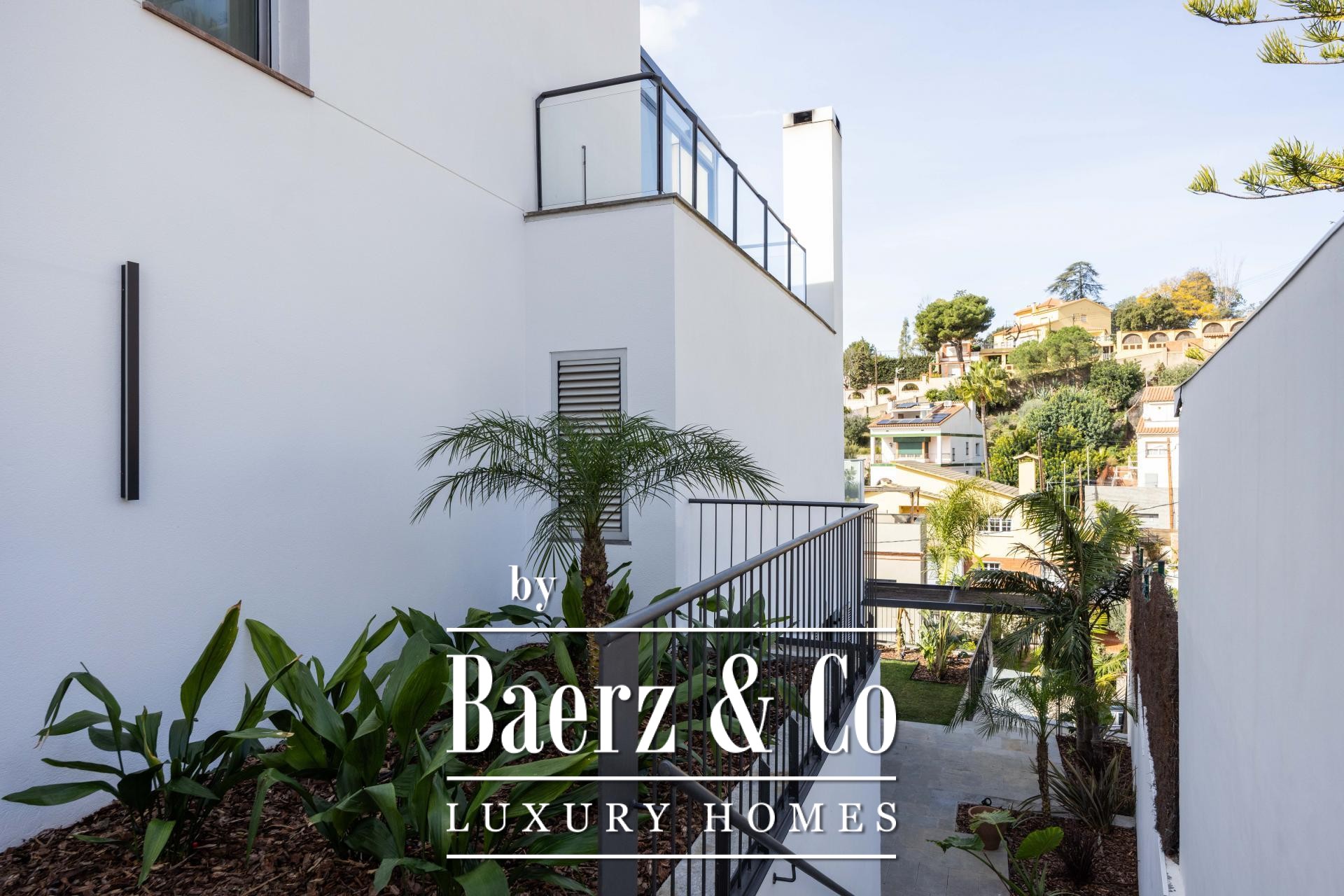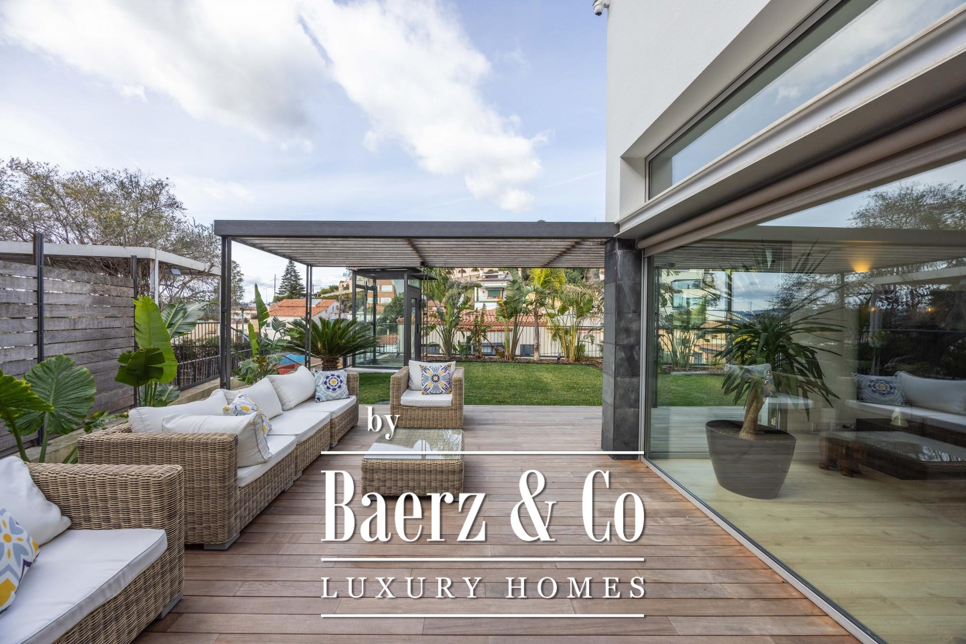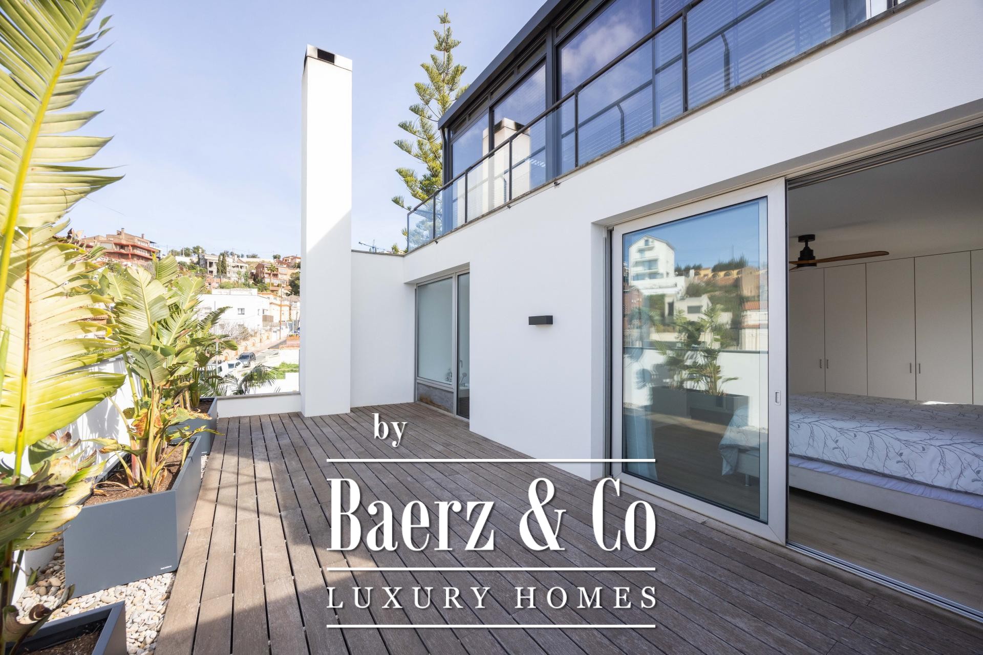 De ervaring wordt buiten voortgezet op vier aangelegde terrassen, omringd door palmen, bananenbomen, verzorgd gazon, een schaduwrijke pergola en een buitenkeuken voor de zomer. Het zwembad van 7x5 m en het houten zonneterras nodigen uit tot ontspanning en privacy. De master suite kenmerkt zich door een inloopkast, privéterras en hydromassagebad, terwijl twee slaapkamers toegang bieden tot een beschutte buitenruimte. Een lift verbindt de niveaus en biedt ultiem comfort en moeiteloze toegankelijkheid in de woning. De verfijnde ligging in Esplugues de Llobregat garandeert discretie en directe toegang tot het hart van Barcelona.