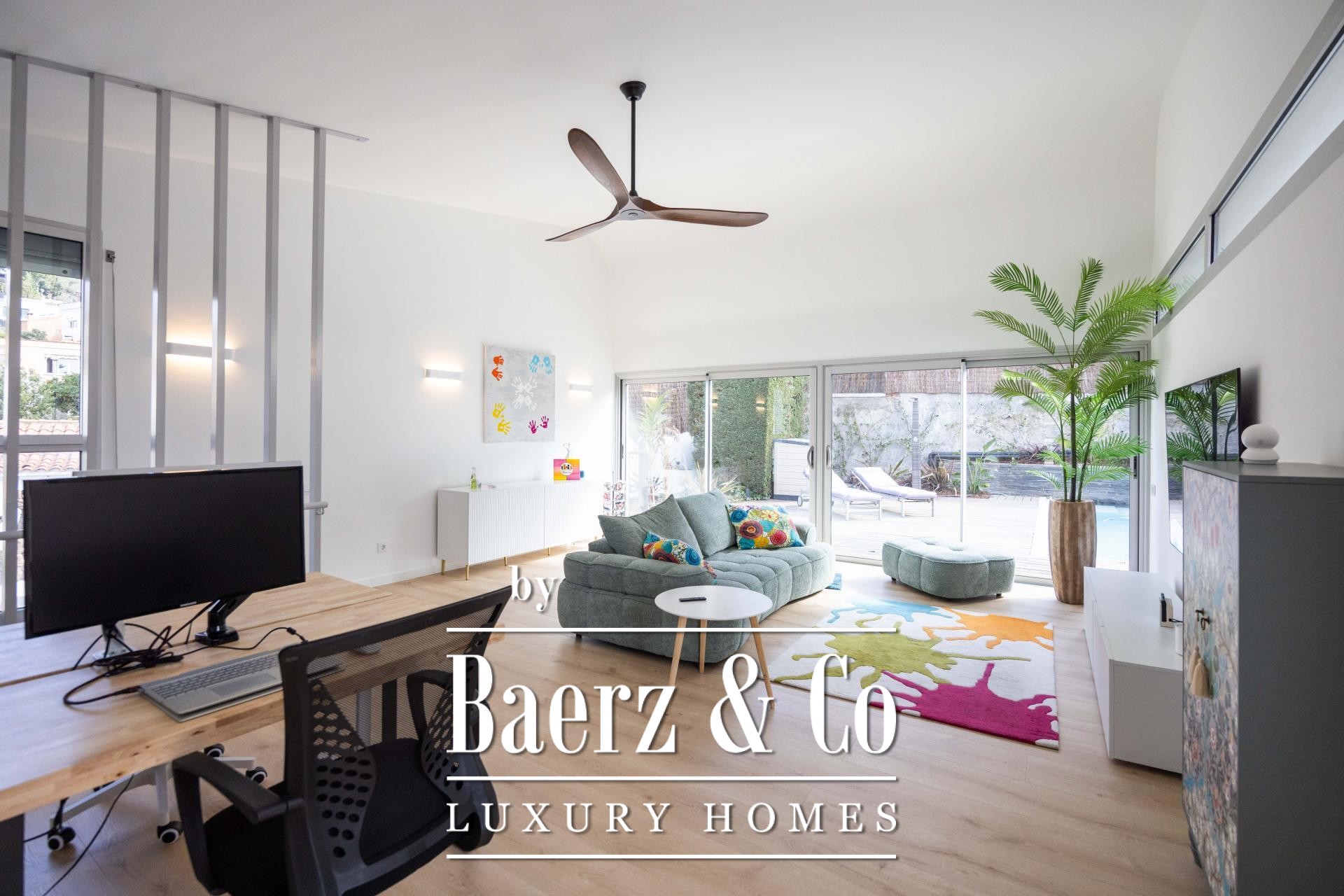 Luxe villa Esplugues de Llobregat vormt een harmonieuze samensmelting van hedendaagse architectuur en het rustige mediterrane leven. Deze in 2025 gerenoveerde residentie beschikt over 314 m², verdeeld over drie stijlvolle verdiepingen, met vier slaapkamers en vier badkamers. Op een perceel van 602 m² is licht hét centrale element; van vloer tot plafond reikende ramen vullen de leefruimtes de hele dag met warmte.