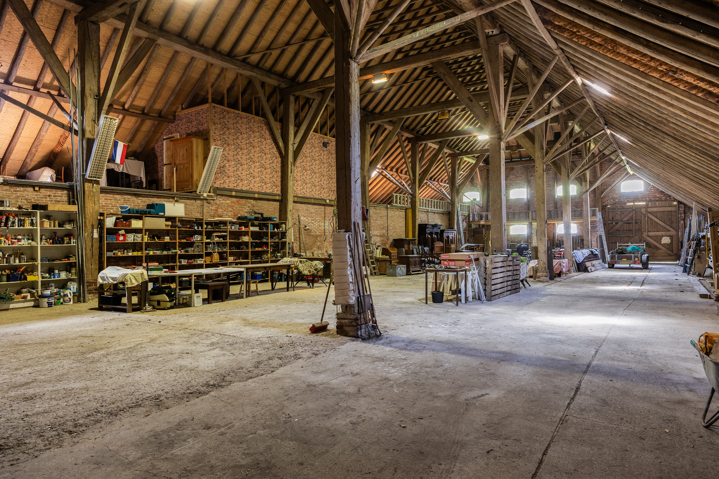 Met een nokhoogte van ruim 12 meter, originele gebinten en entresol biedt deze ruimte ongekende mogelijkheden. Het open vloeroppervlak van circa 800 m² maakt uiteenlopende invullingen denkbaar: van galerie tot werkplaats, van camperstalling tot hobbymatige dierhouderij of evenementenruimte. Ook kunstenaars en ondernemers vinden hier de ruimte die zij zoeken.