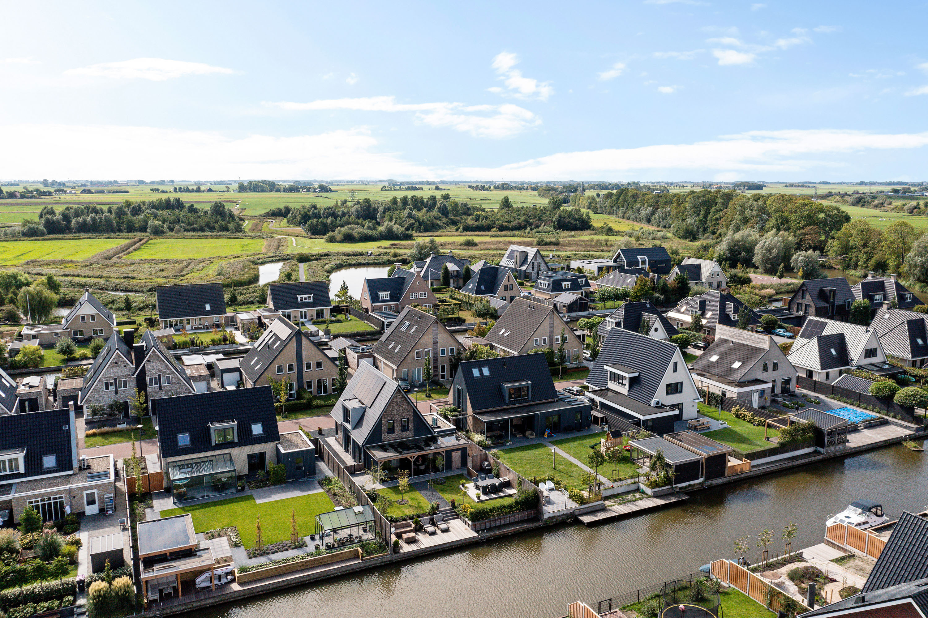 Aan de rand van de jonge woonwijk Franeker-Zuid ligt deze schitterende vrijstaande villa (2023) direct aan open vaarwater.