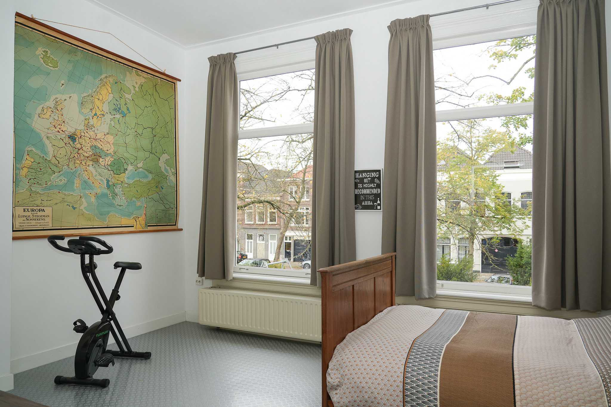 Aan de achterzijde ligt de grootste slaapkamer met antieke schouw, geornamenteerd stucplafond, garderobewand en balkon. Aangrenzend bevindt zich de wasruimte met aansluitingen voor wasmachine, droger en de cv-ketel. De badkamer is compleet ingericht met ligbad, inloopdouche, twee wastafels en vloerverwarming. De toiletruimte grenst aan de overloop.