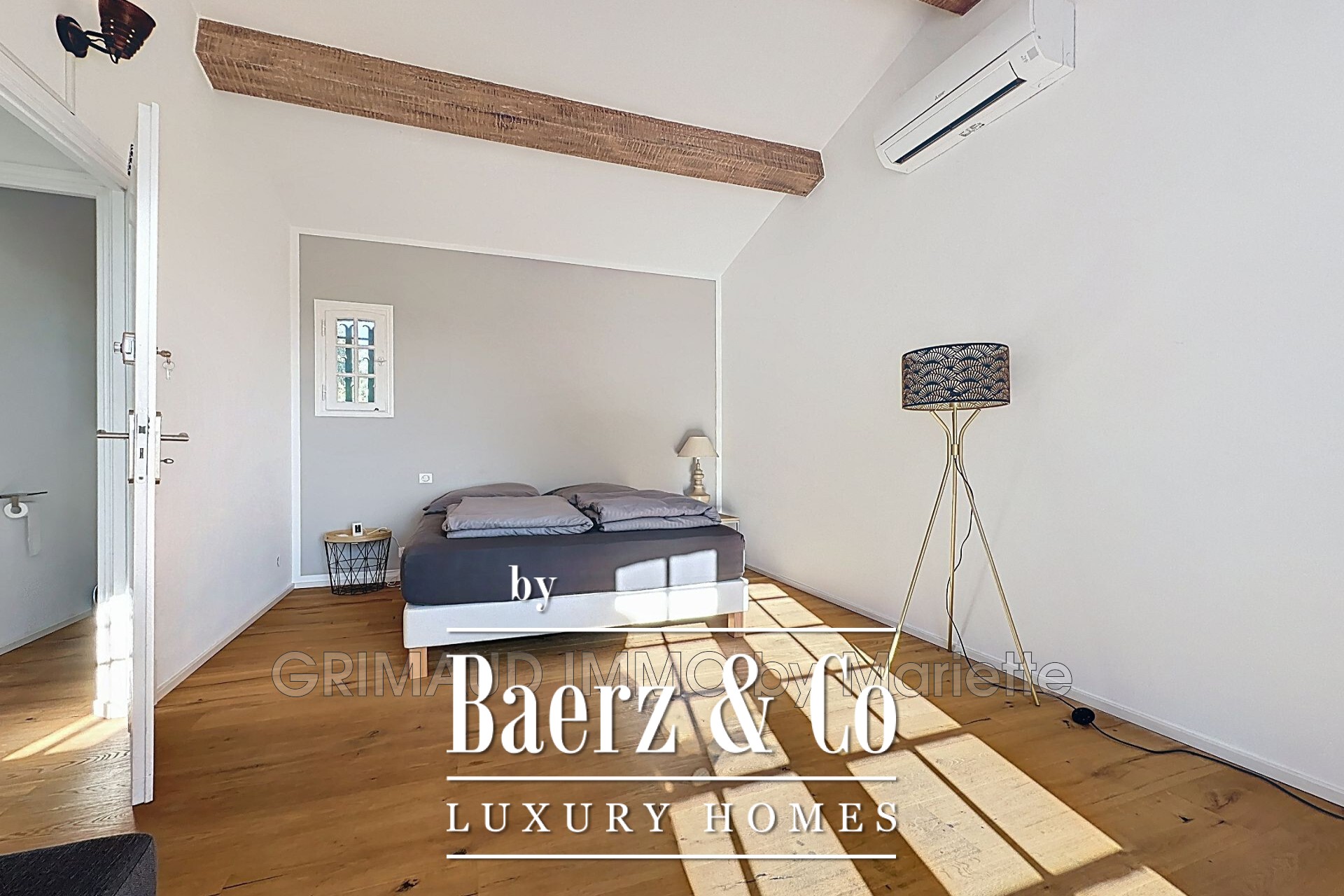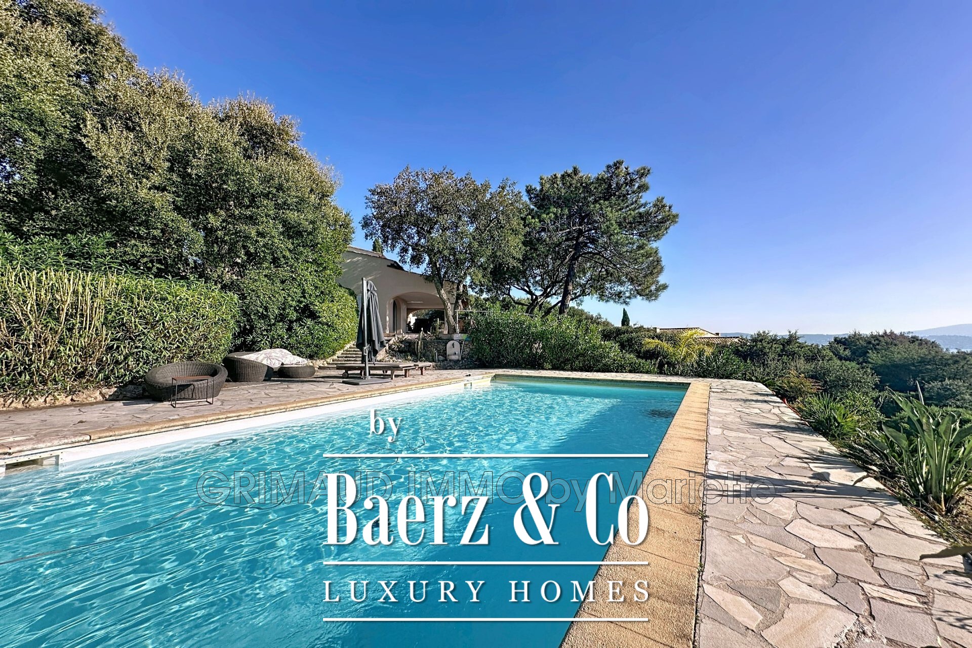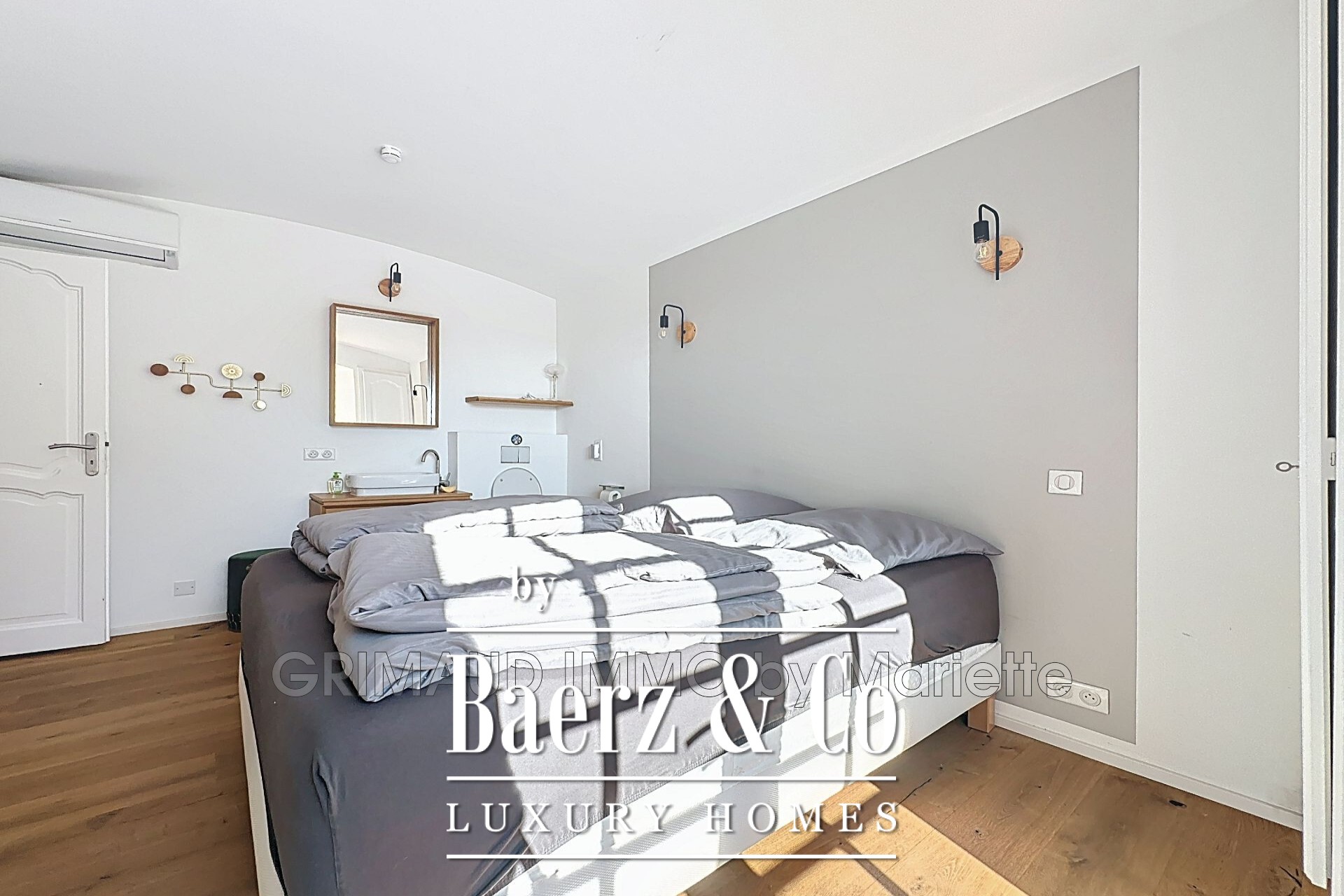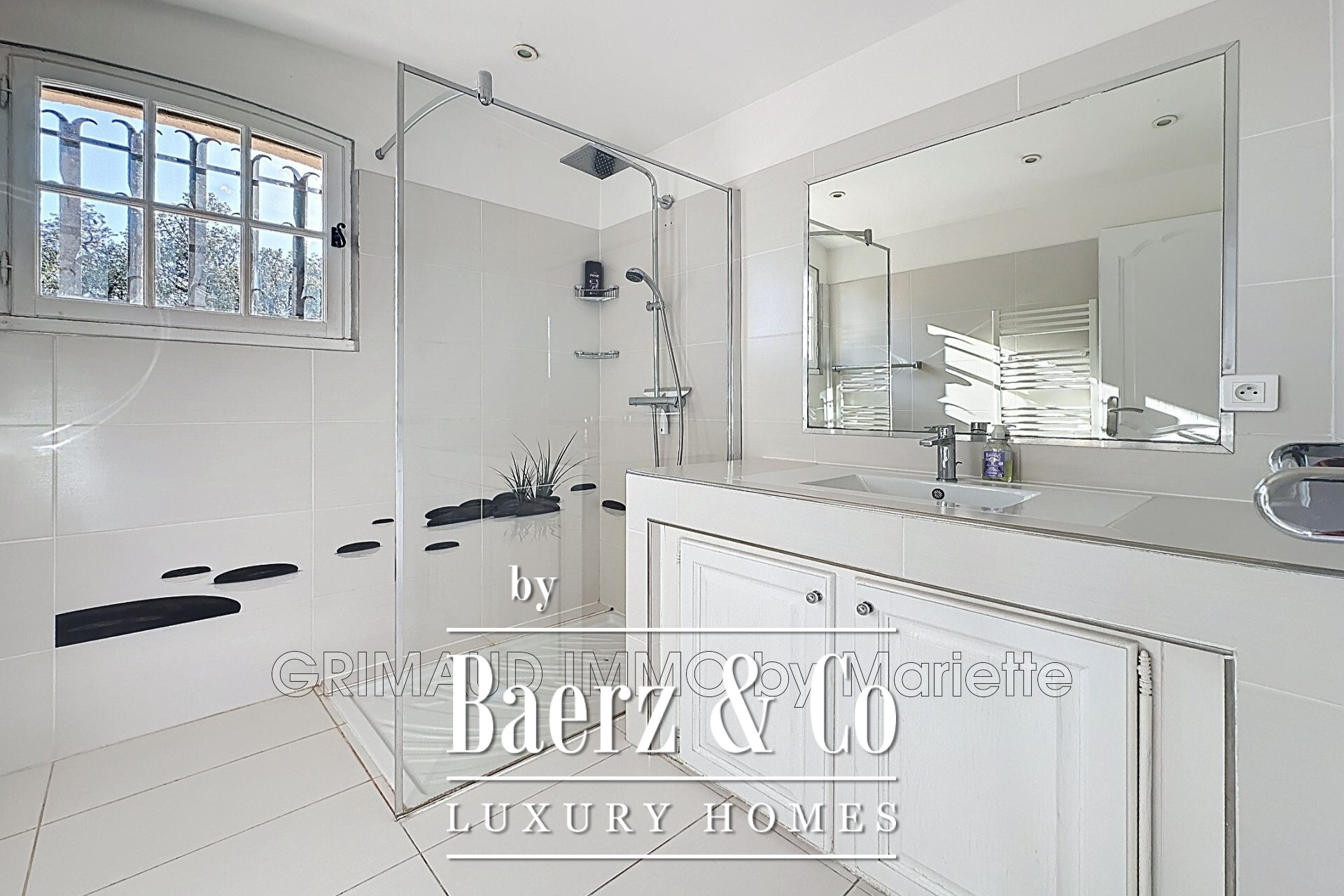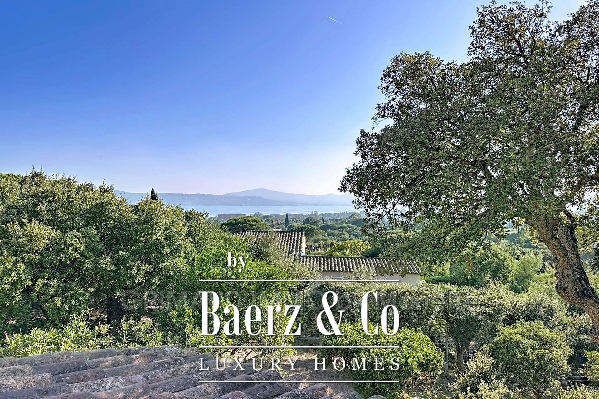 fitted kitchen, three bedrooms with two shower rooms, upstairs a master suite with its bathroom and an office. Numerous covered and uncovered terraces. Beautiful amenities and a beautiful view of the bay of Saint Tropez.