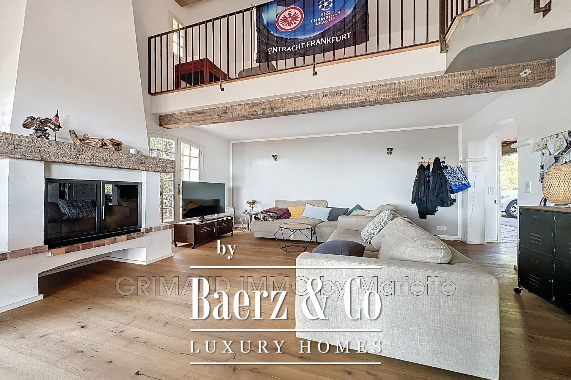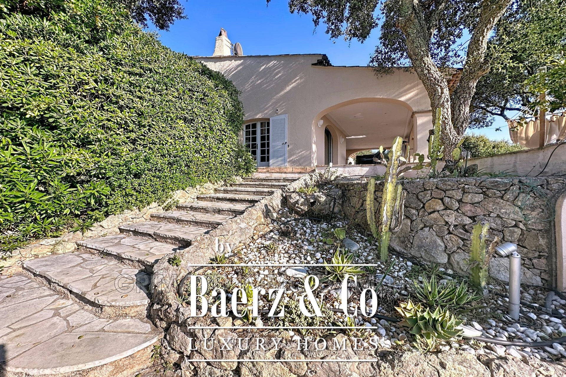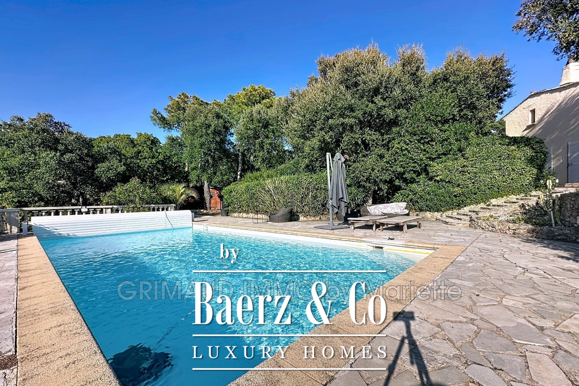 SEA VIEW for this beautiful Provençal villa, peacefully located on a large plot of 4100m² with heated swimming pool, jacuzzi and pétanque court, comprising: entrance hall, living room with fireplace, beautiful independent