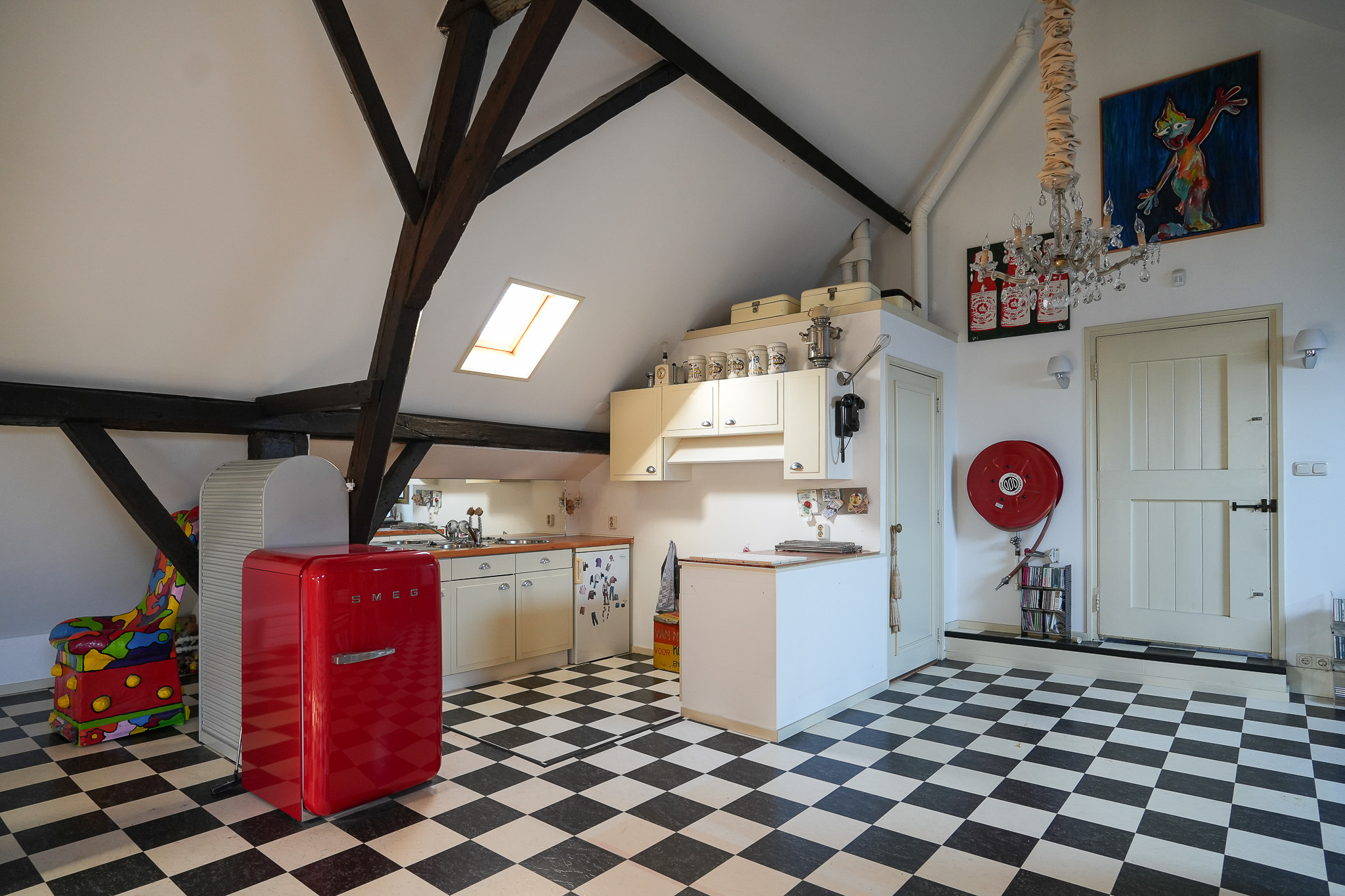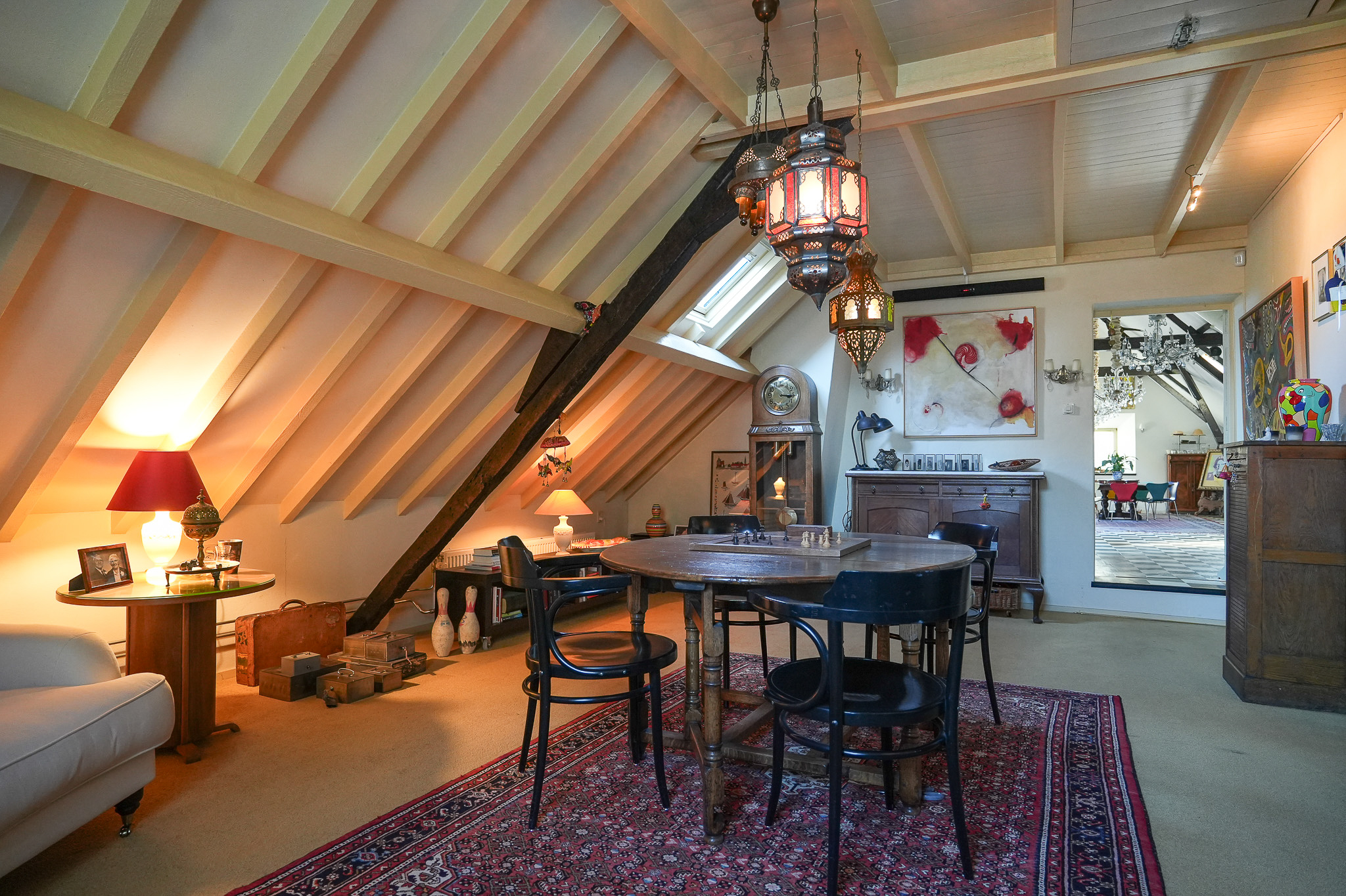 De verdieping boven het achterhuis is verrassend dankzij de indrukwekkende nokhoogte van ruim 4,5 meter en het open karakter van deze voormalige hooizolder. De huidige eigenaren hebben deze ruimte gebruikt als vergaderruimte, waarbij de pantry praktisch was. Deze verdieping kan desgewenst eenvoudig worden ingericht met extra (slaap)kamers en badkamer. Een optionele plattegrond is toegevoegd om dit inzichtelijk te maken. Het creëren van een luxe suite behoort ook tot de mogelijkheden.