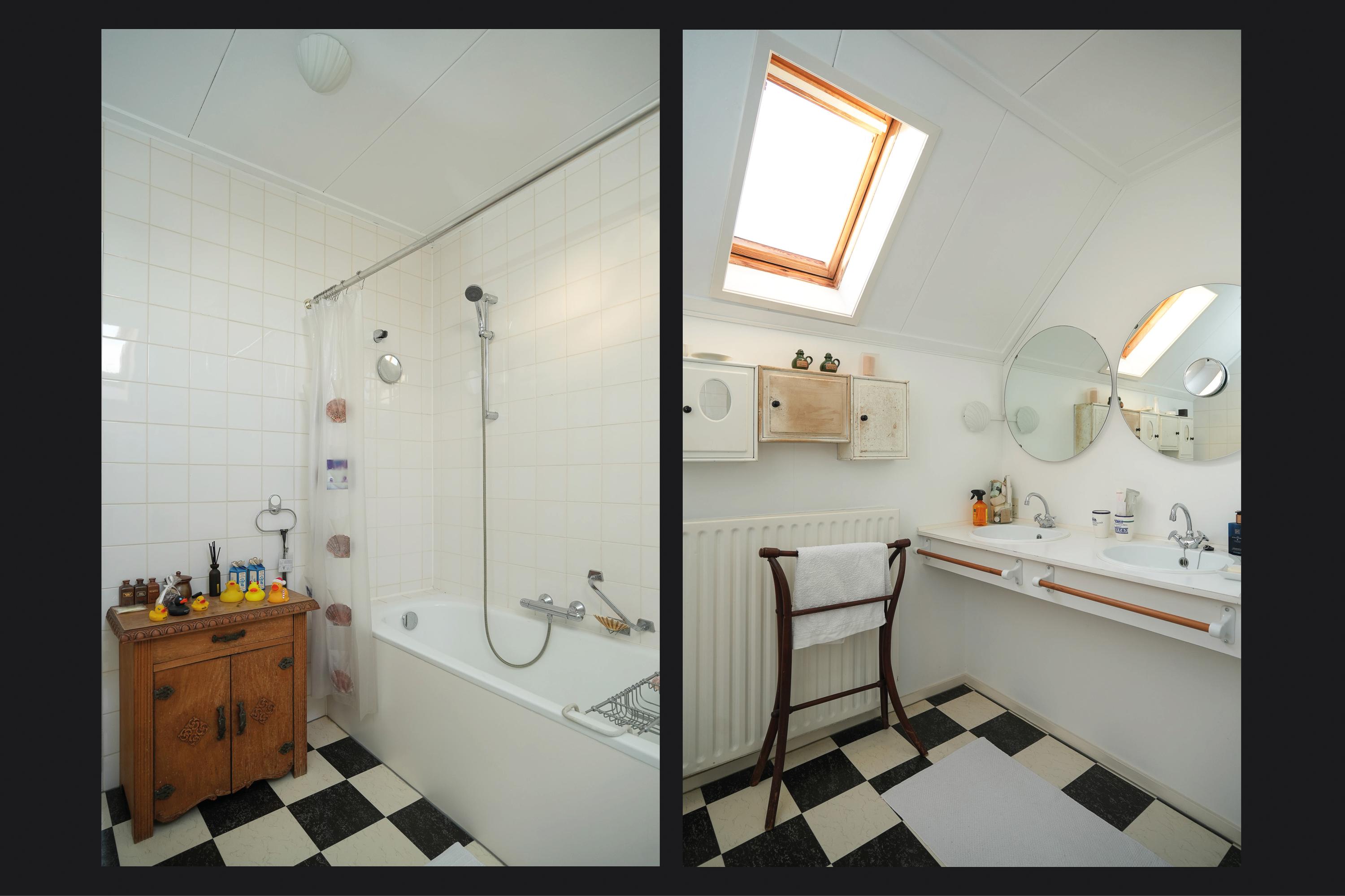 Royale open ruimte met pantry onder de geïsoleerde kap in het achterhuis en twee slaapkamers en een tweede badkamer in het voorhuis op de eerste verdieping.