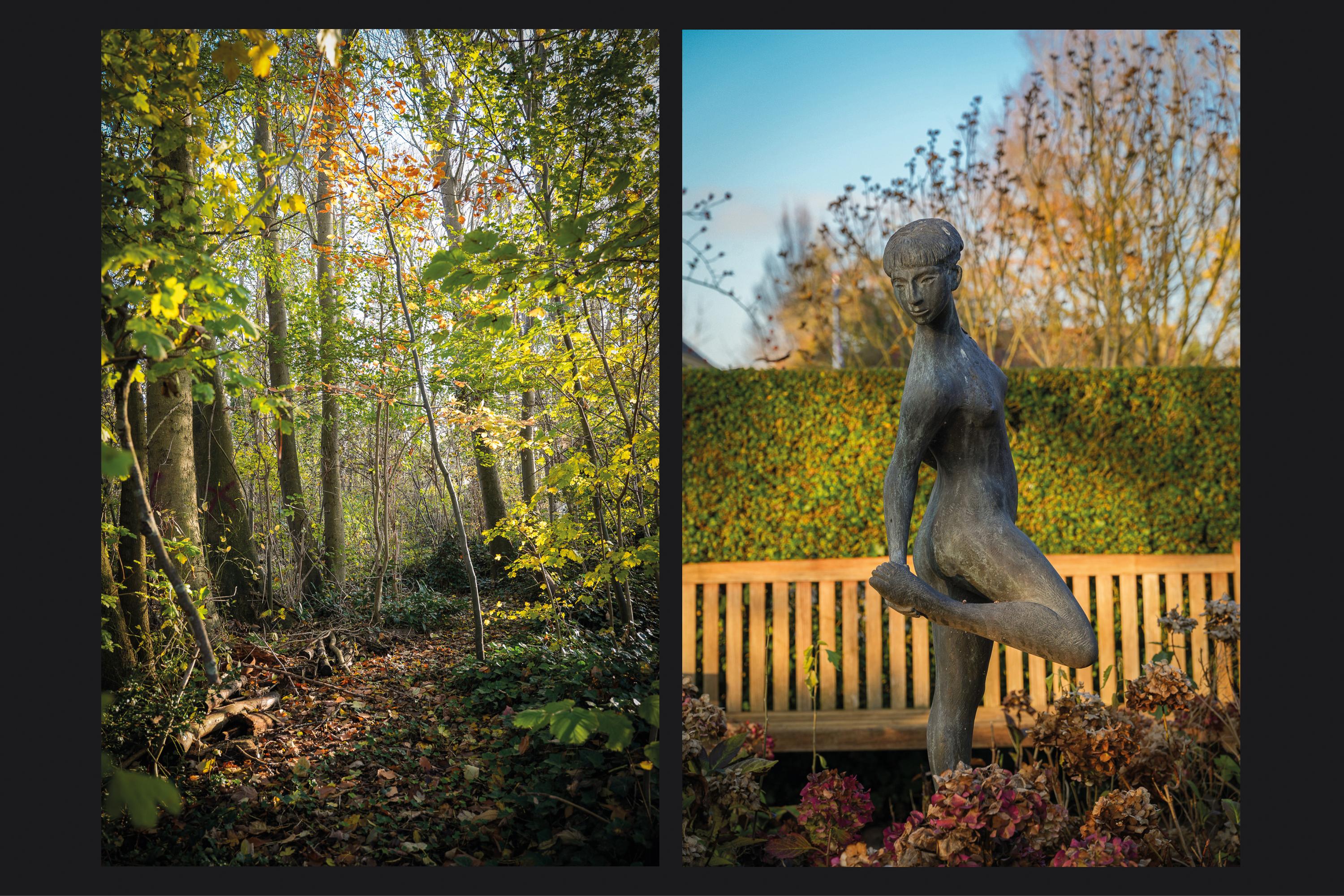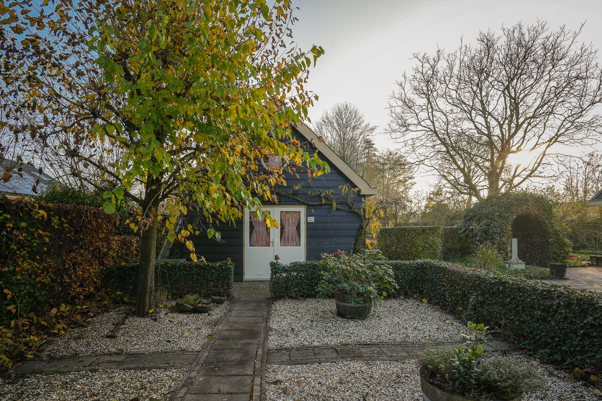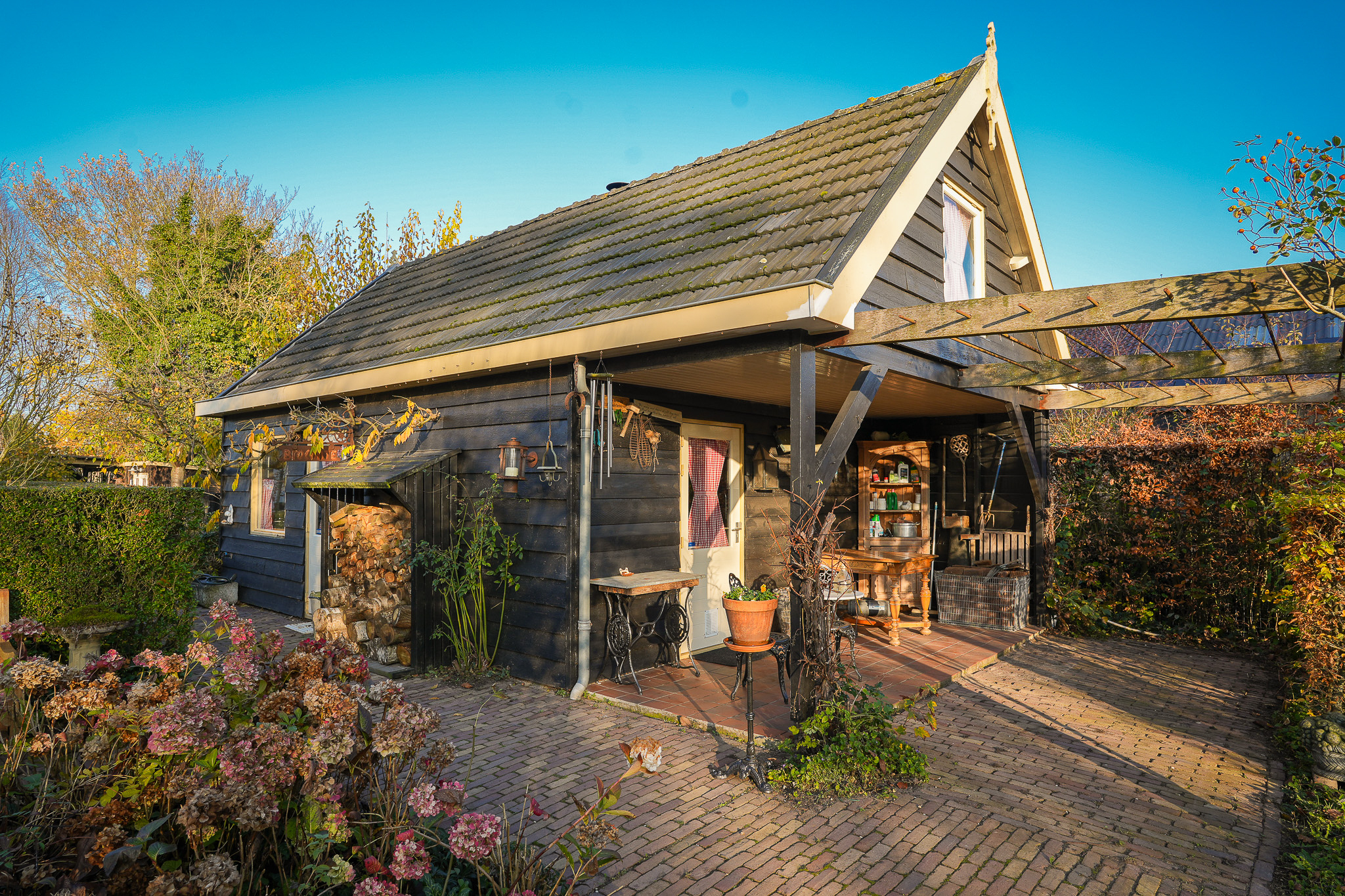 Het bijgebouw is met vergunning aanzienlijk te vergroten. Aan de achterzijde loopt het zuidgerichte perceel over in een eigen bos(je). Aan het begin van het bos staan een dierenverblijf met buitenren, een groot vlonderterras en een paddenpoel. Al met al een groene enclave met een parkachtige uitstraling, waar veel vogels en andere dieren zich thuis voelen. Regelmatig zijn er egels, kool- en pimpelmezen, merels, lijsters, vinken, roodborstjes, boomklevers, spechten, maar ook hazen en fazanten te zien. Her en der hangen nestkastjes voor vogels, vlinders en vleermuizen, die vrijwel ieder jaar volop worden gebruikt.
