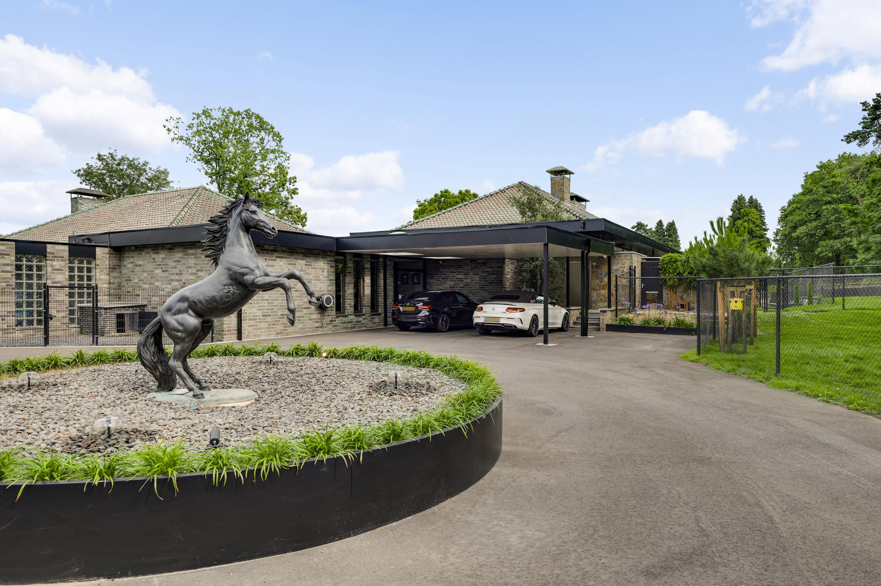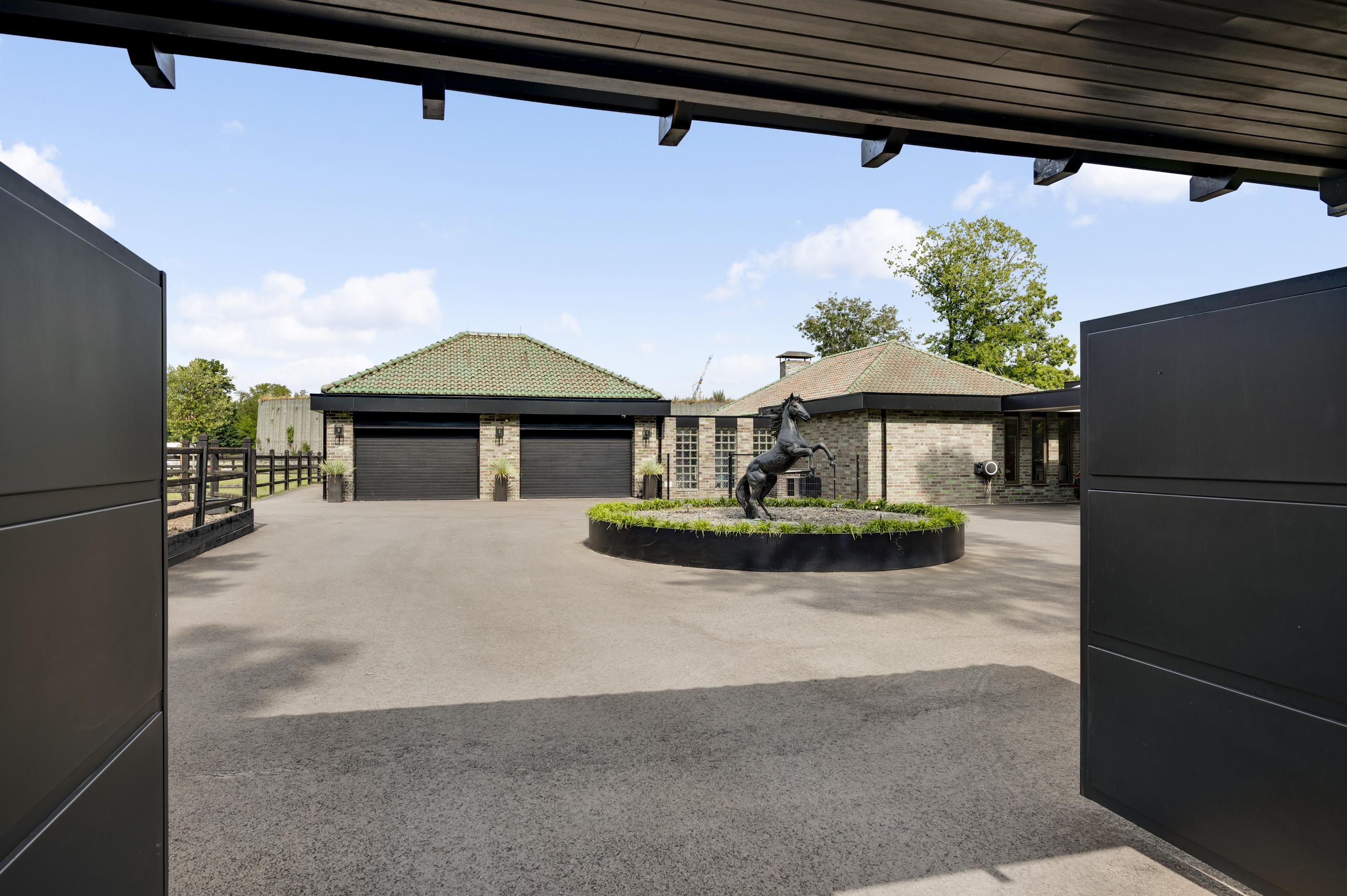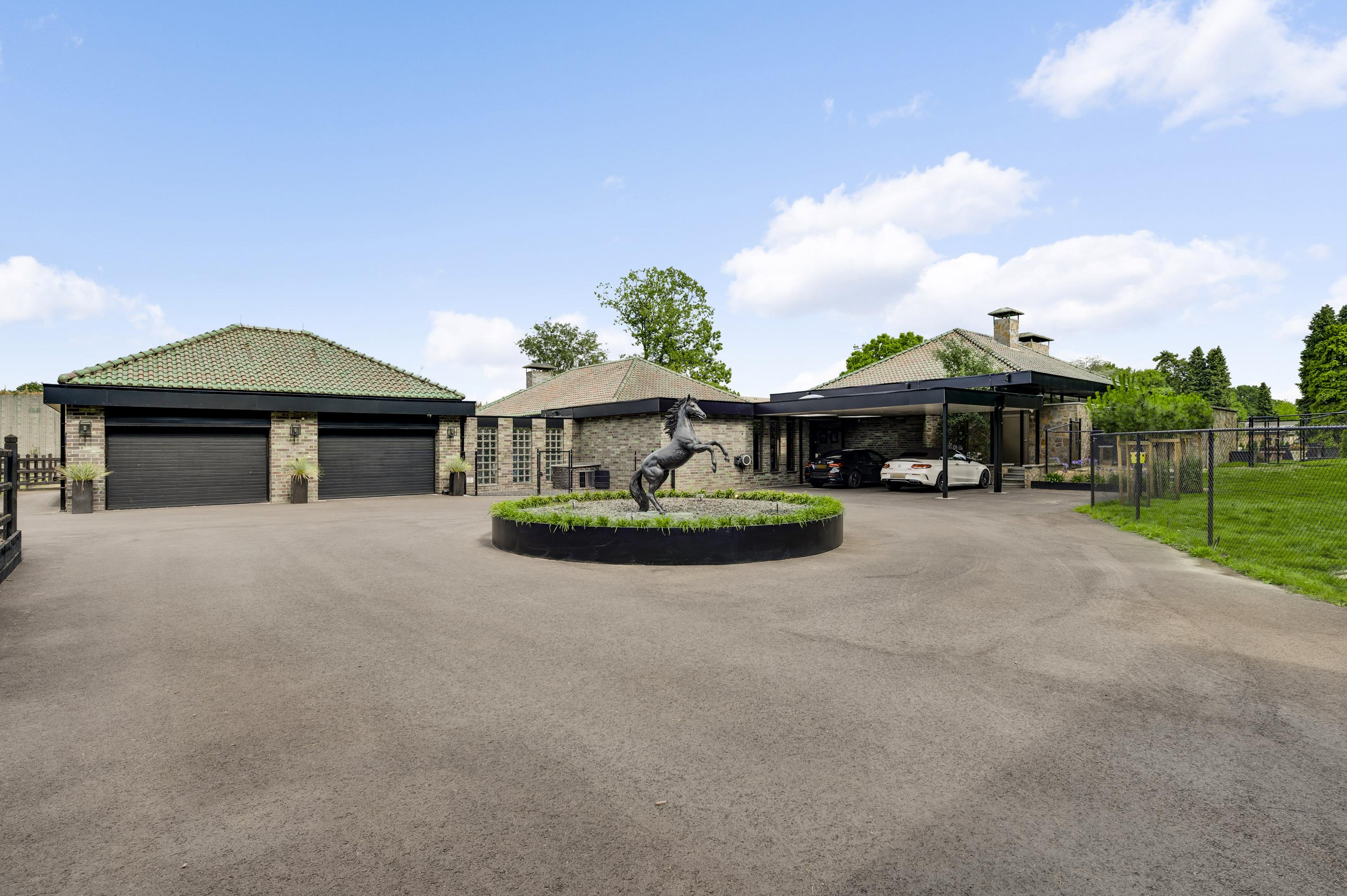 Via de statige toegangspoort met intercom betreedt u het domein. Uw auto parkeert u vorstelijk onder de dubbele carport of in de inpandige dubbele garage. Via de overdekte entree bereikt u de royale ontvangsthal — een waardige binnenkomst voor deze villa van formaat.