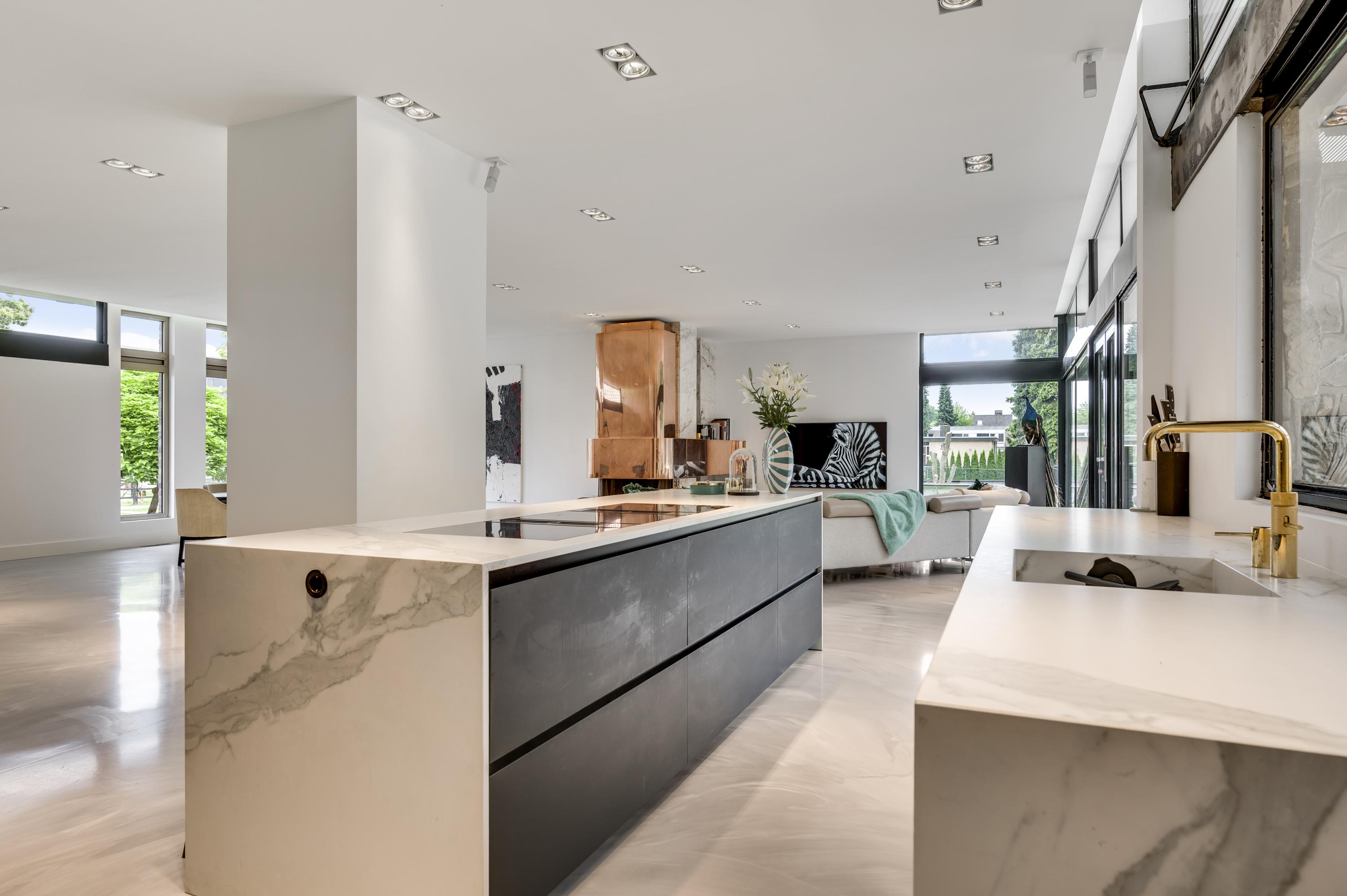 De zuidvleugel van de woning herbergt een riante living met grote raampartijen en een sfeervolle open haard. De moderne open keuken (2020) vormt het hart van deze vleugel, compleet met hoogwaardige inbouwapparatuur. Aangrenzend vindt u een multifunctionele kamer, ideaal als thuiswerkplek, speelkamer of bibliotheek.