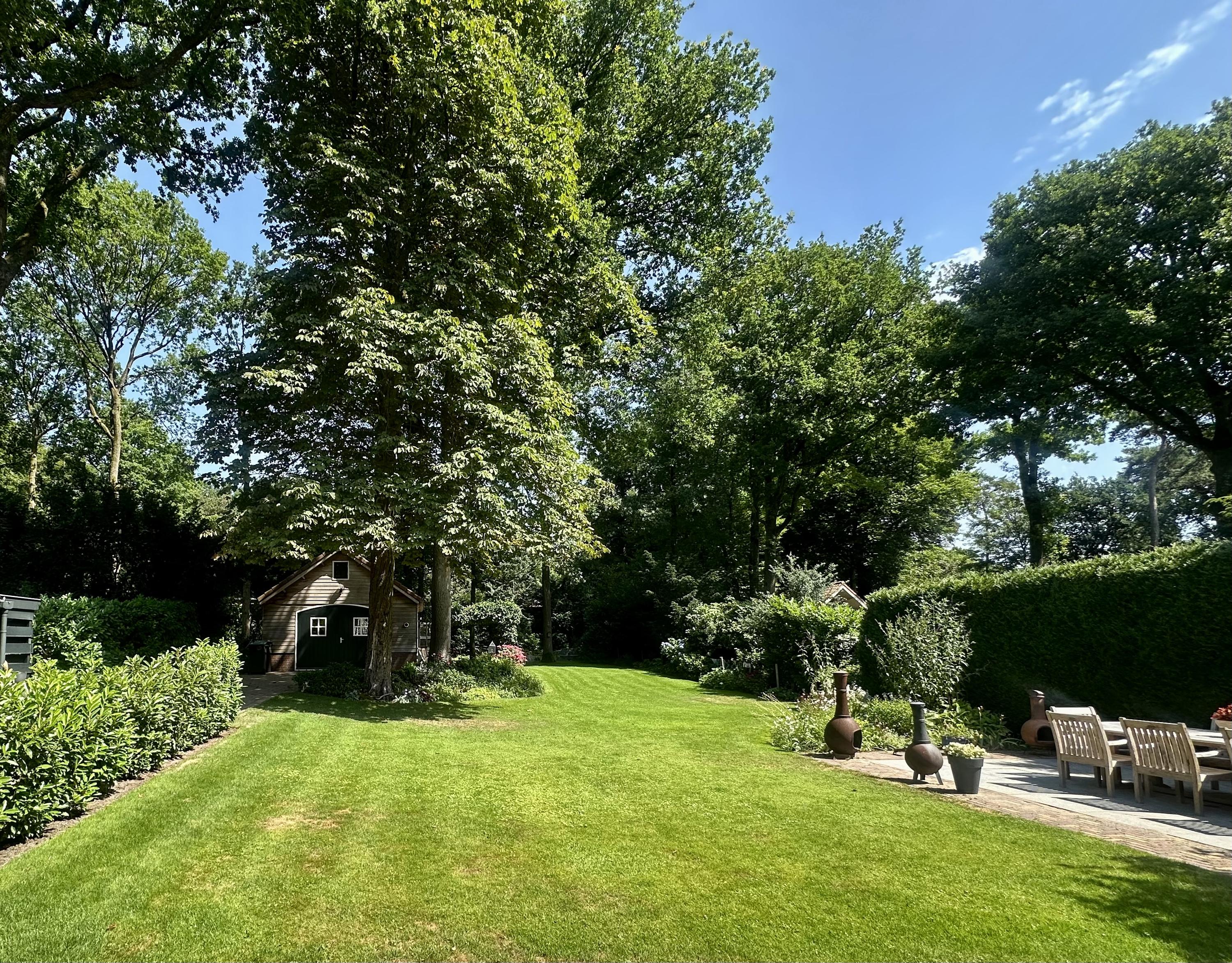 Een boomrijk paradijs van 1.590 m². Met volop privacy, zon, schaduw, ruimte om te spelen of te loungen én een vrijstaand houten bijgebouw met garage en atelier met bergruimte. Of u er nu een kantoor, hobbyruimte of stil toevluchtsoord van maakt – de mogelijkheden zijn even royaal als de tuin zelf.