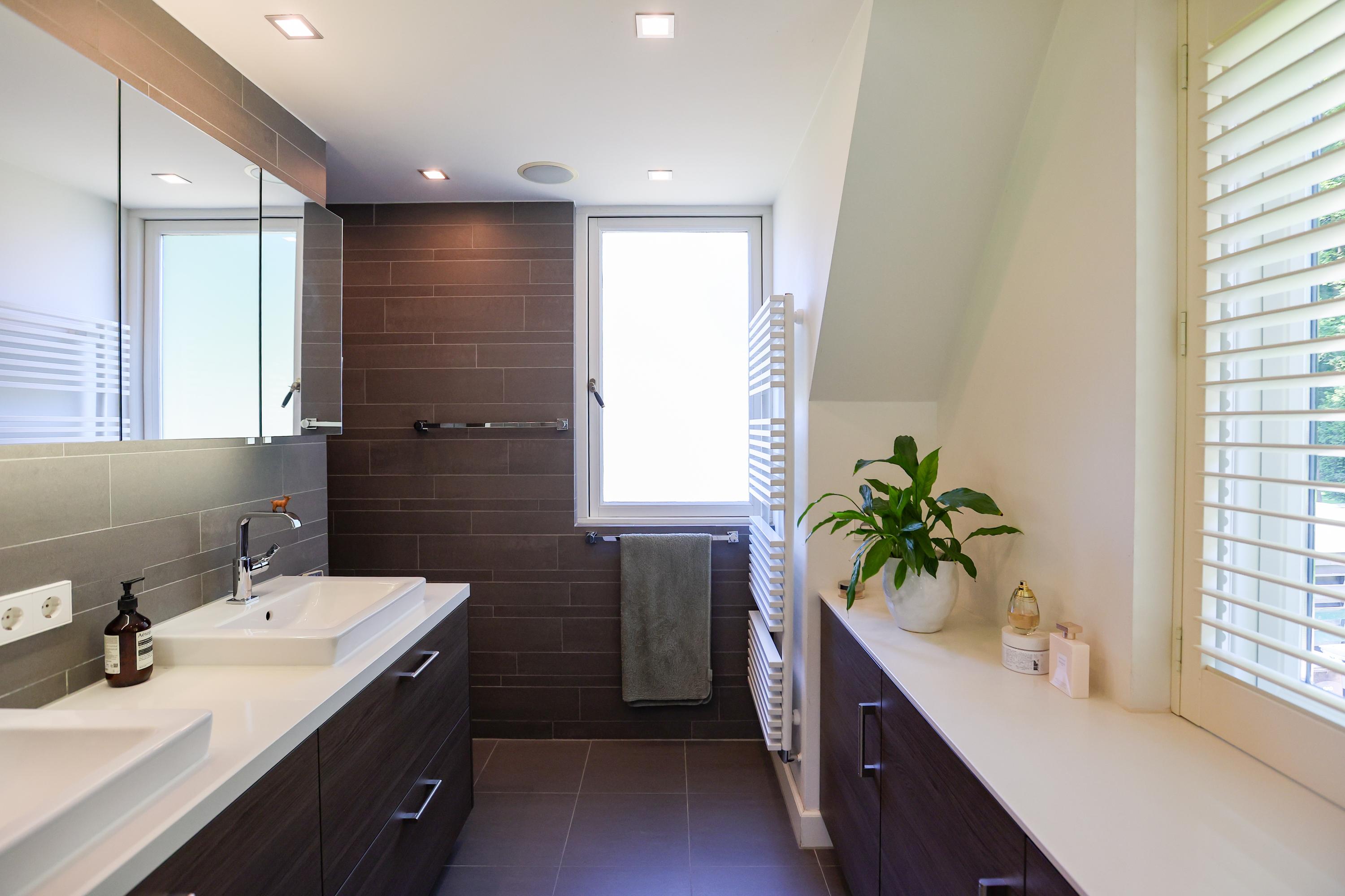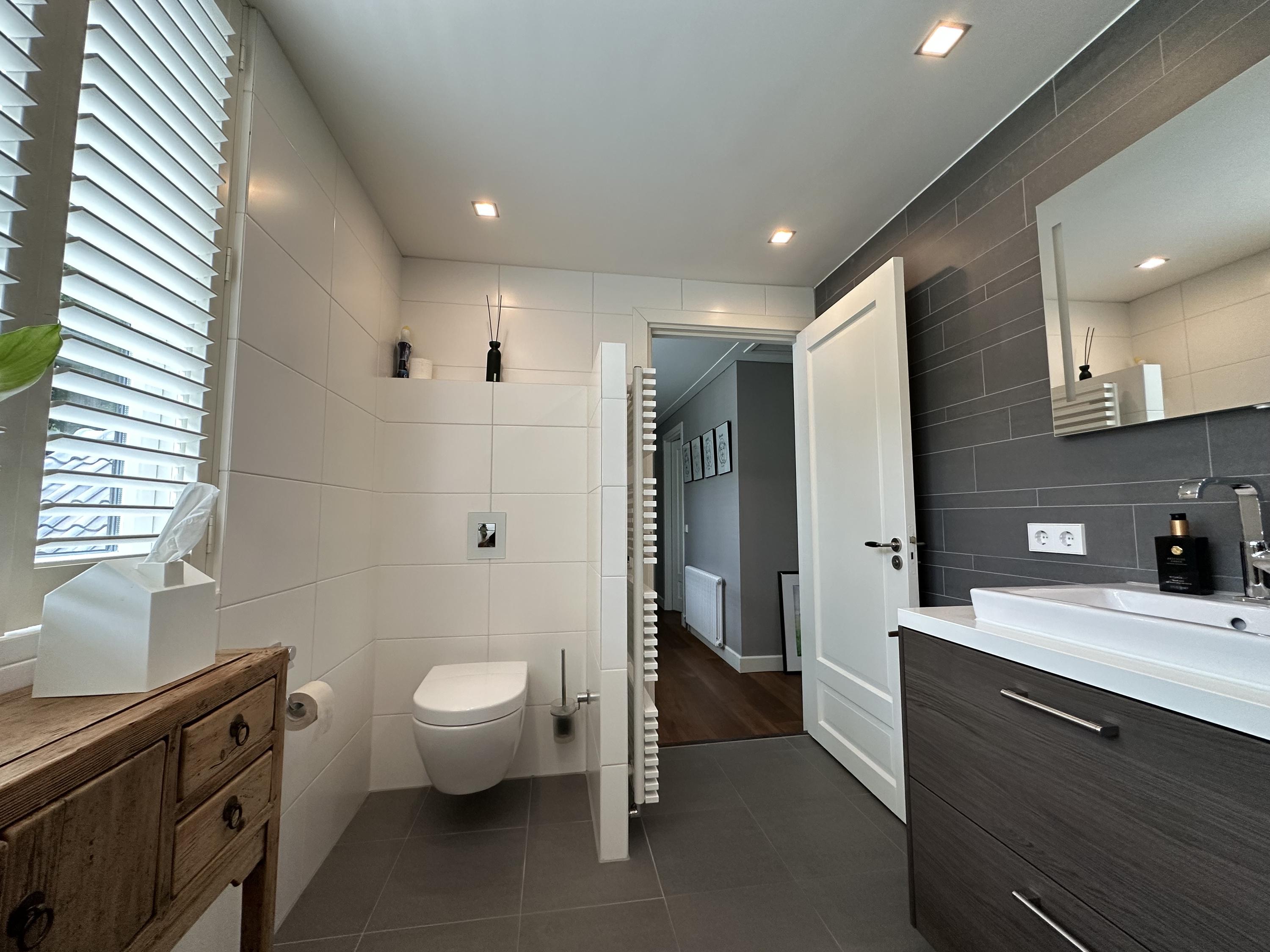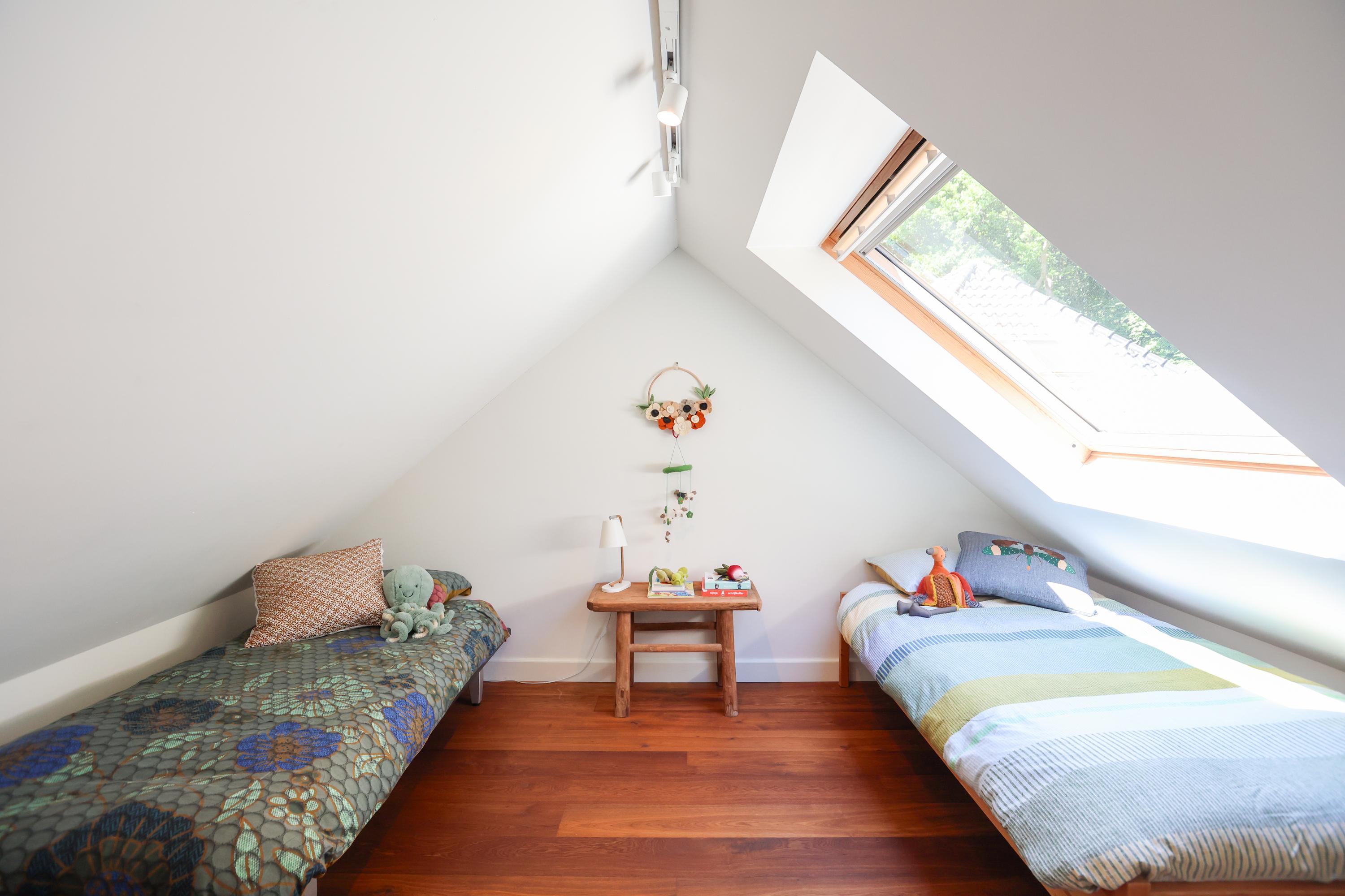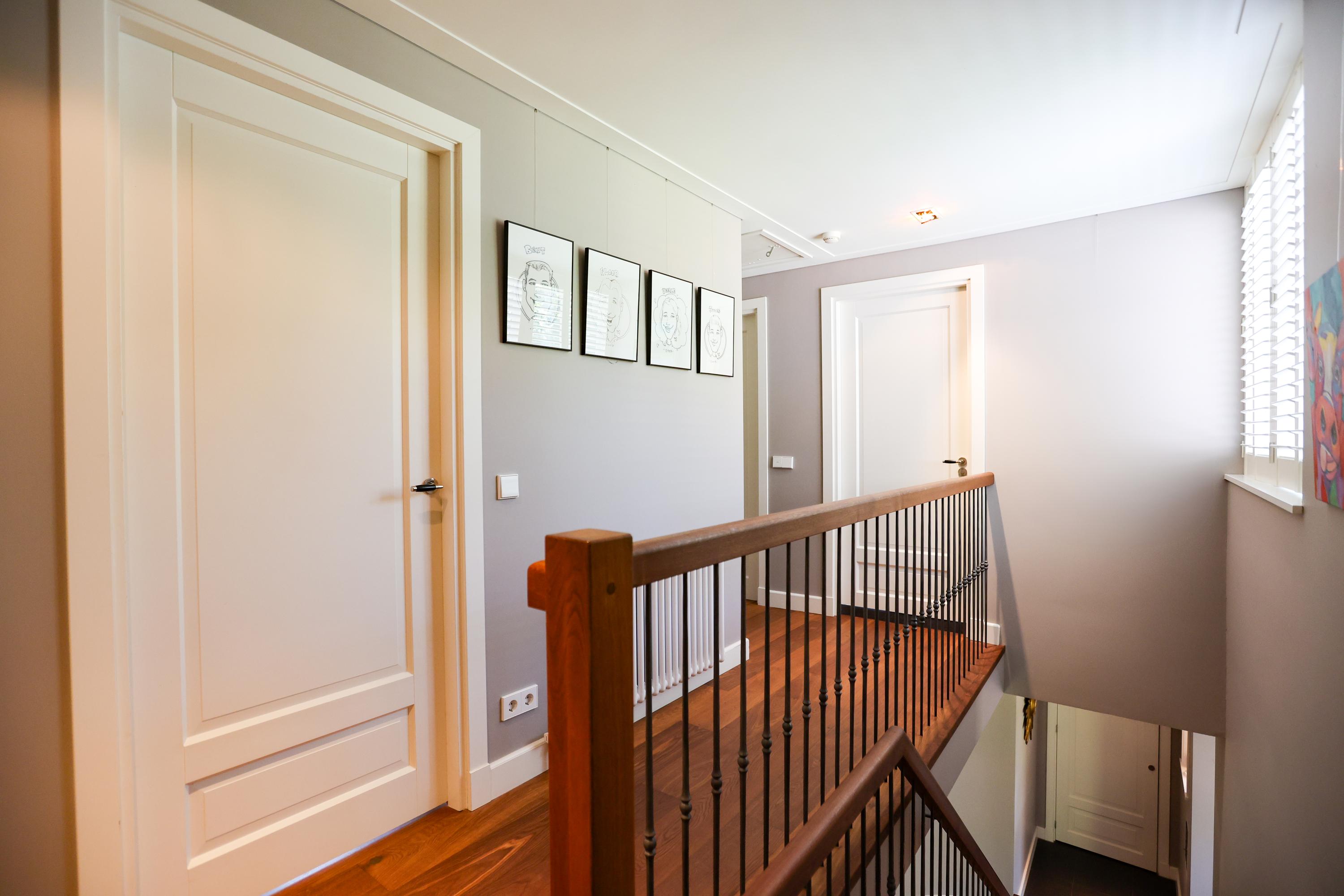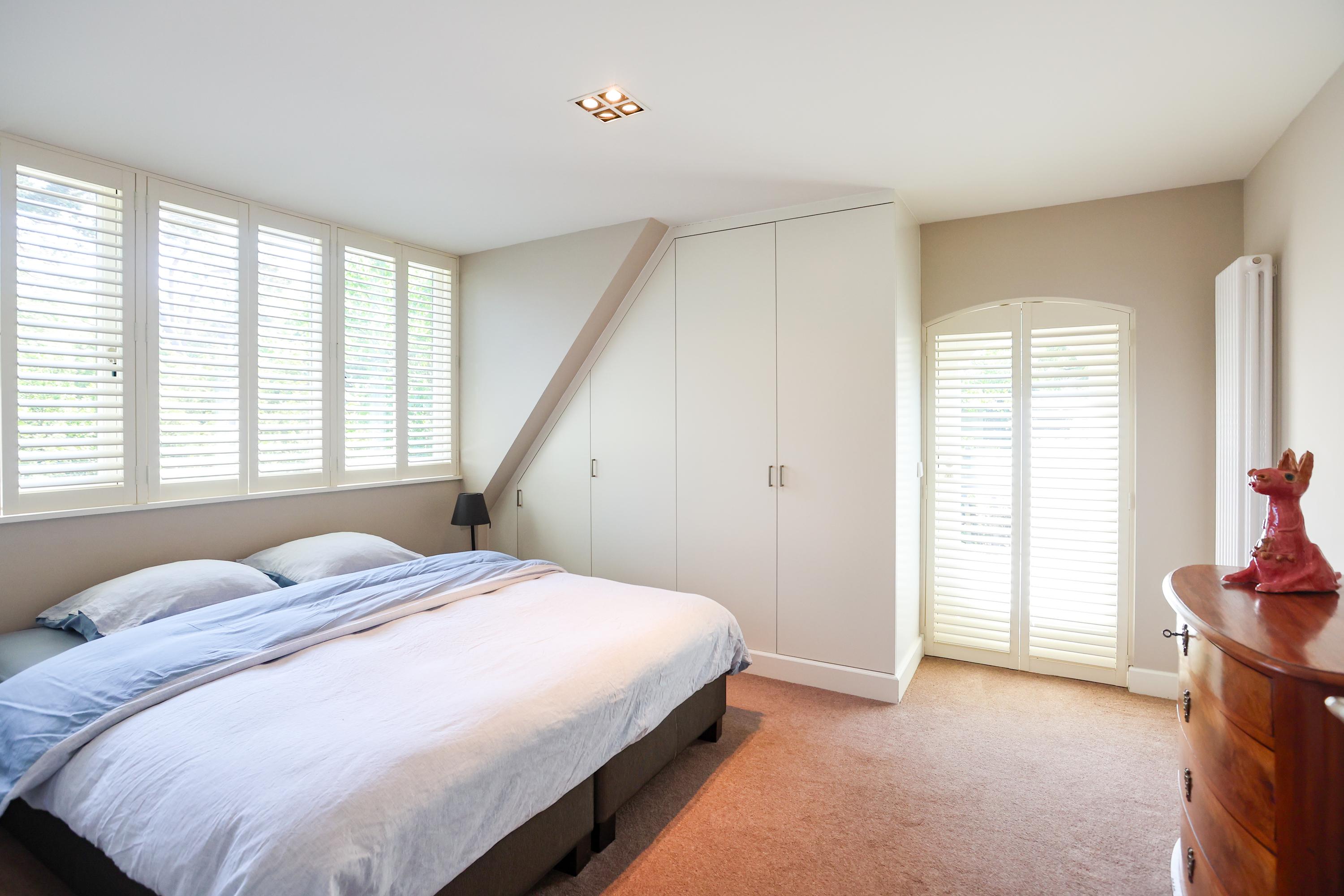 Op de 1ste verdieping, een speelse kinderkamer, twee slaapkamers met vaste kasten, een moderne badkamer met bad, toilet en wastafelmeubel. De ouderslaapkamer heeft een op maat gemaakte kastenwand en een eigen doorloop naar de tweede badkamer met wastafelmeubel inloopdouche, een separaat toilet en voor meer bergruimte is er een vliering.