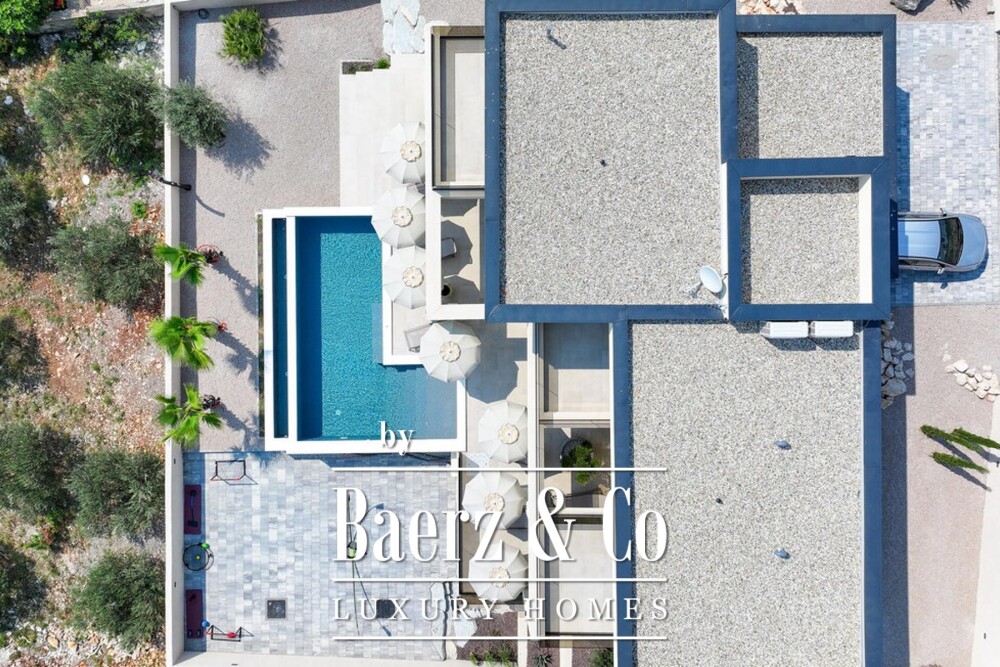 Villa Zadar Maslenica met zeezicht belichaamt een visie van ingetogen kustelijke elegantie. Gebouwd in 2024 en voorzien van 254 m² woonoppervlak op een perceel van 654 m², ligt deze woning op slechts 620 meter van de Adriatische kust, met uitzicht op de Novigradzee en één kilometer van het centrum van Maslenica. De doordachte indeling begint met een gastvrije begane grond, waar een lichte hal en een fraai ingerichte slaapkamer samenvloeien met een open keuken, eetkamer en living. Vanuit elke ruimte is er directe toegang tot het terras, dat uitkomt op een zwembad van 40 m², een ingebouwde jacuzzi en een zonovergoten zonneterras, allemaal omgeven door een zorgvuldig aangelegde tuin. De interne trap leidt naar het slaapgedeelte, met drie slaapkamers, ieder voorzien van en-suite badkamer en gedeeltelijk overdekte terrassen met rustgevend uitzicht op zee. Vier badkamers, vloerverwarming, airconditioning, aluminium kozijnen met elektrische rolluiken en een hoogwaardige thermische gevel zorgen voor dagelijks comfort en stille efficiëntie. Op het terrein zijn vier parkeerplaatsen en een aparte berging aanwezig. Deze villa in Maslenica ligt tussen historische olijfgaarden en het immer aanwezige blauw van de Novigradzee, omzoomd door de rivier de Zrmanja en het Velebitgebergte, en vormt een verfijnd toevluchtsoord aan de Dalmatische kust. Voor wie een luxe villa te koop zoekt in Zadar Maslenica, biedt dit adres een harmonieuze balans tussen kwaliteit, authenticiteit en het subtiele ritme van het mediterrane leven.