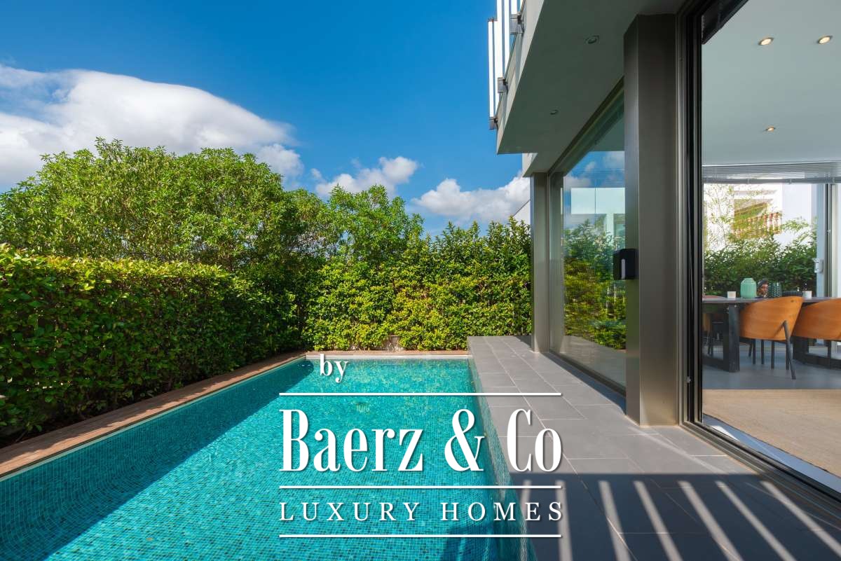 De townhouse van 178 m² met een buitenruimte van 120 m² is ontworpen voor comfortabel en sfeervol wonen. Op de begane grond wordt u verwelkomd door een lichte, open living met warme materialen en grote schuifdeuren die het binnen en buitenleven prachtig met elkaar verbinden. De aangrenzende eetruimte en uitgeruste keuken creëren een uitnodigende plek voor gezellige diners en ontspanning. Wat deze verdieping compleet maakt is een apart gastentoilet en directe toegang tot de privégarage, ideaal geschikt voor parkeren en extra opslagOp de eerste verdieping bevinden zich drie comfortabele slaapkamers. De master bedroom beschikt over een ensuite badkamer en een sfeervol, ruimtelijk gevoel dankzij grote raampartijen. De tweede slaapkamer