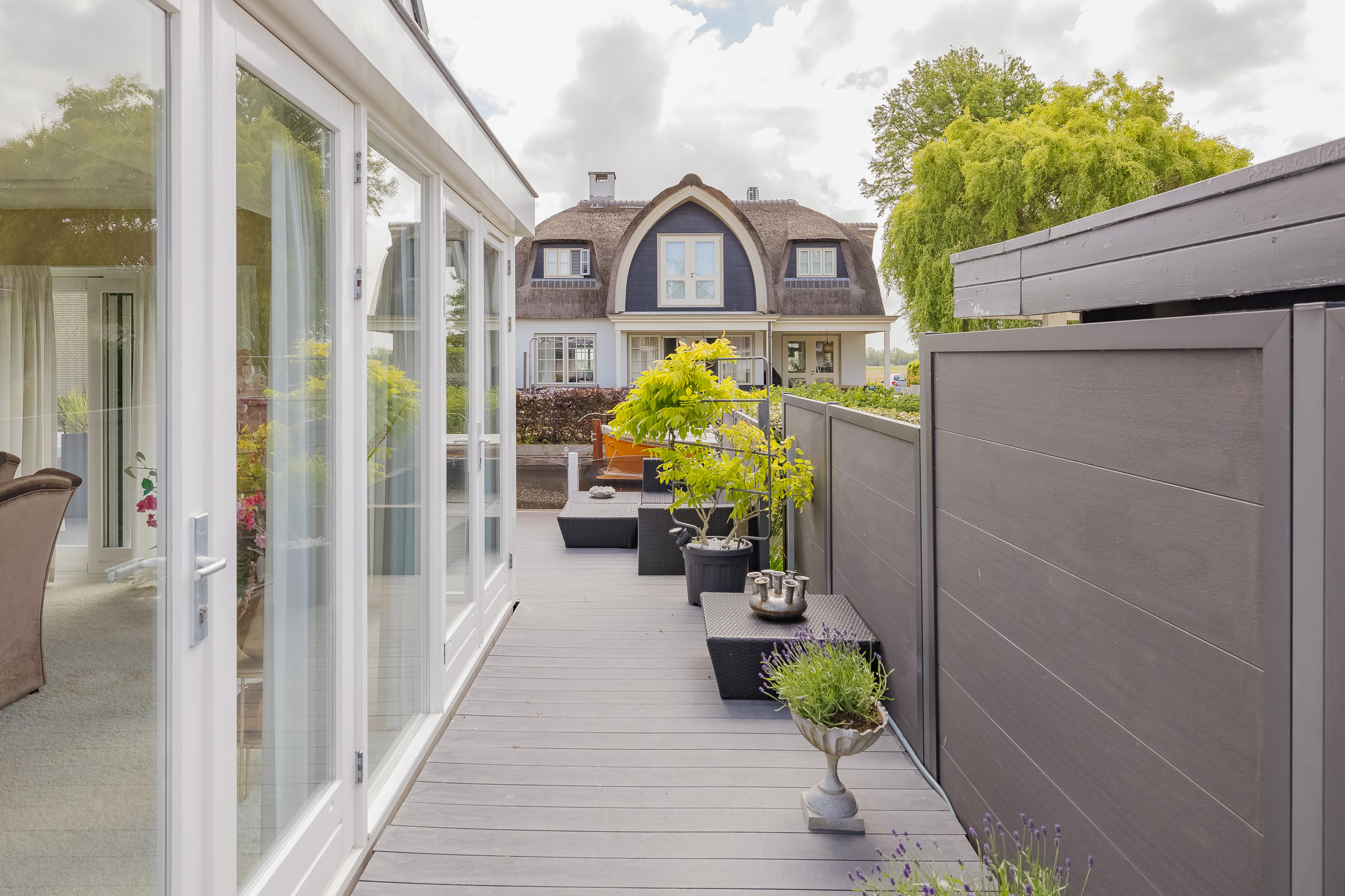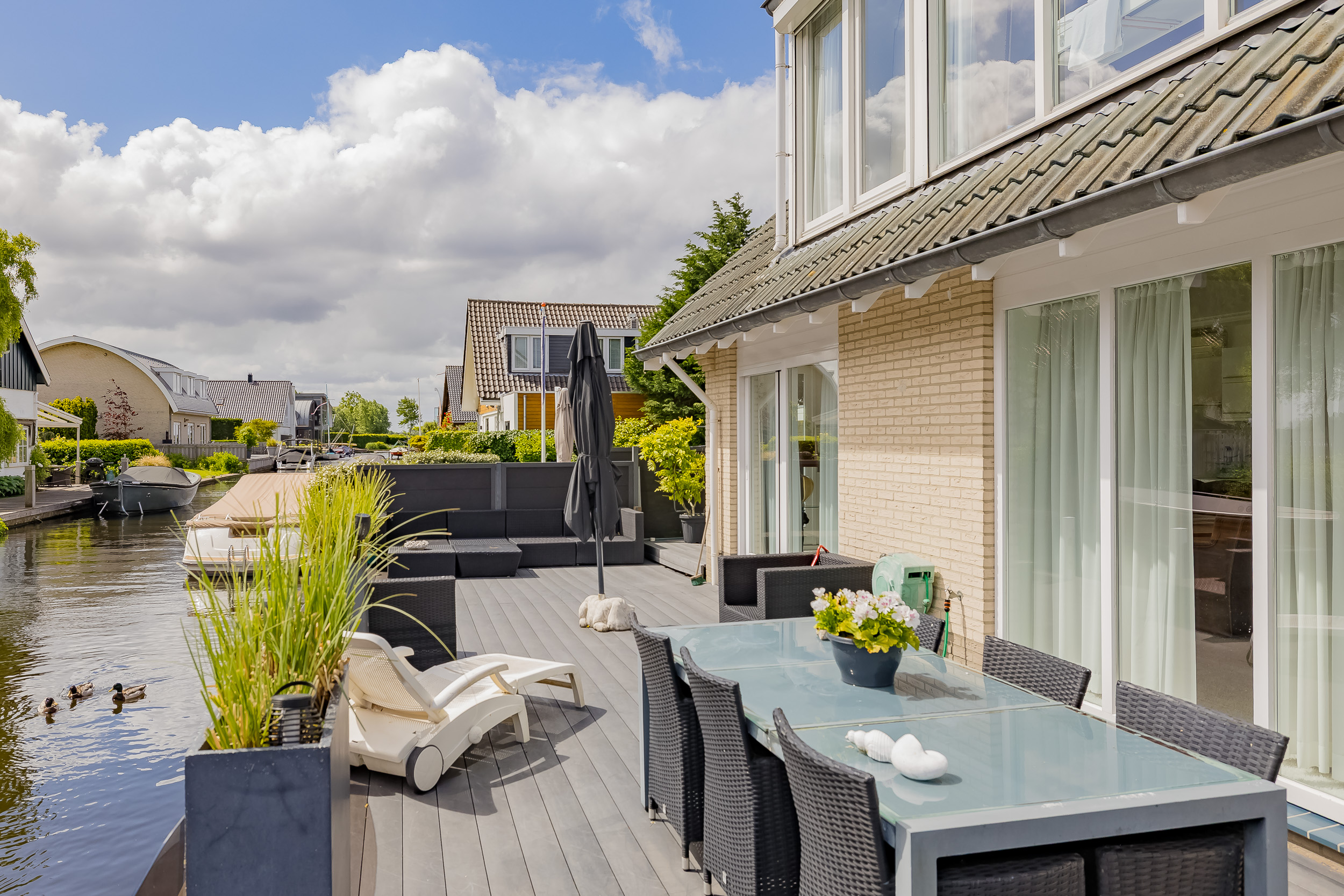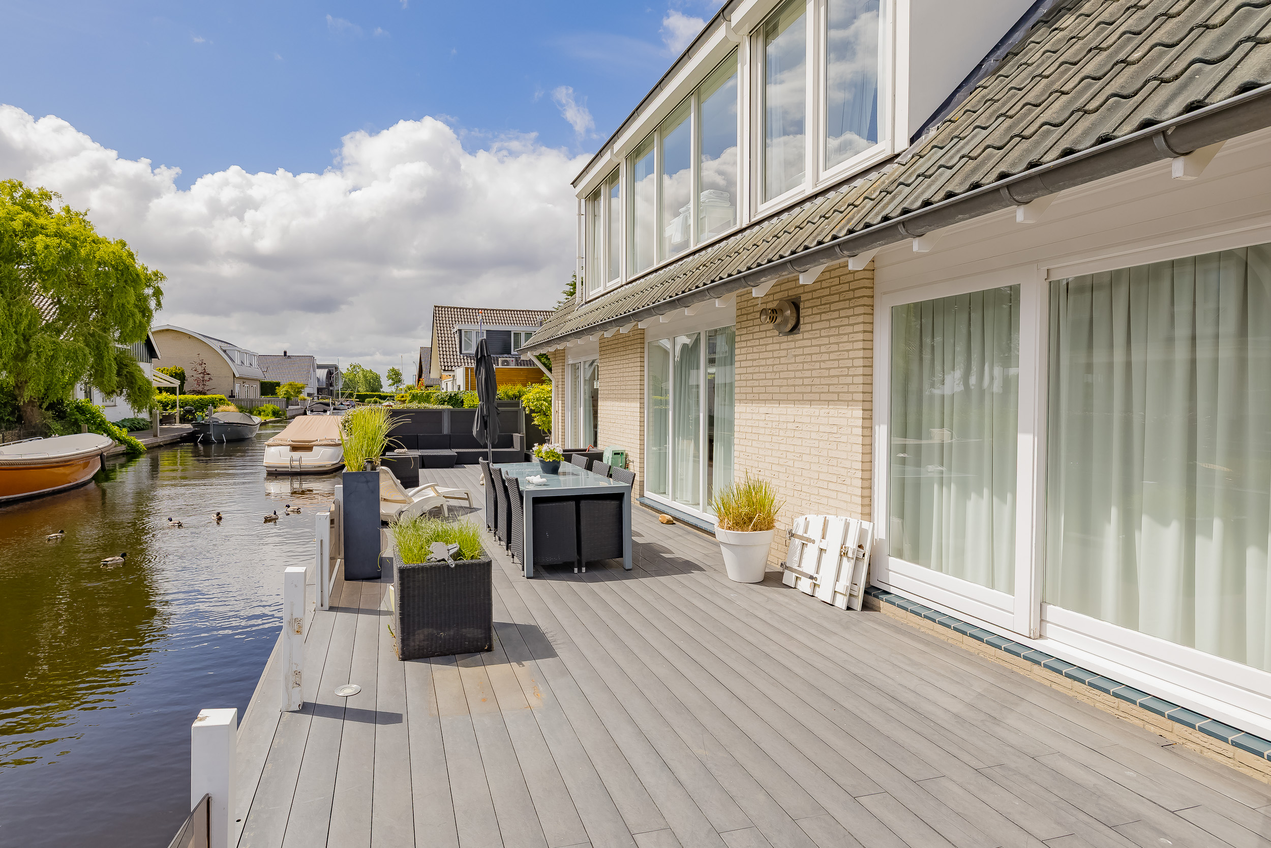 • Groot kunststof vlonderterras aan het water