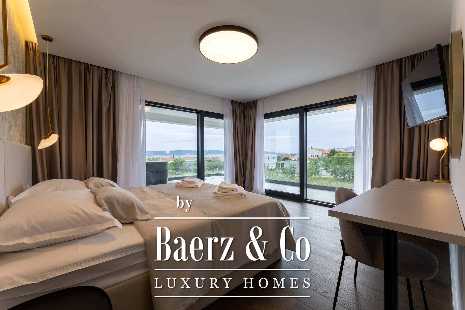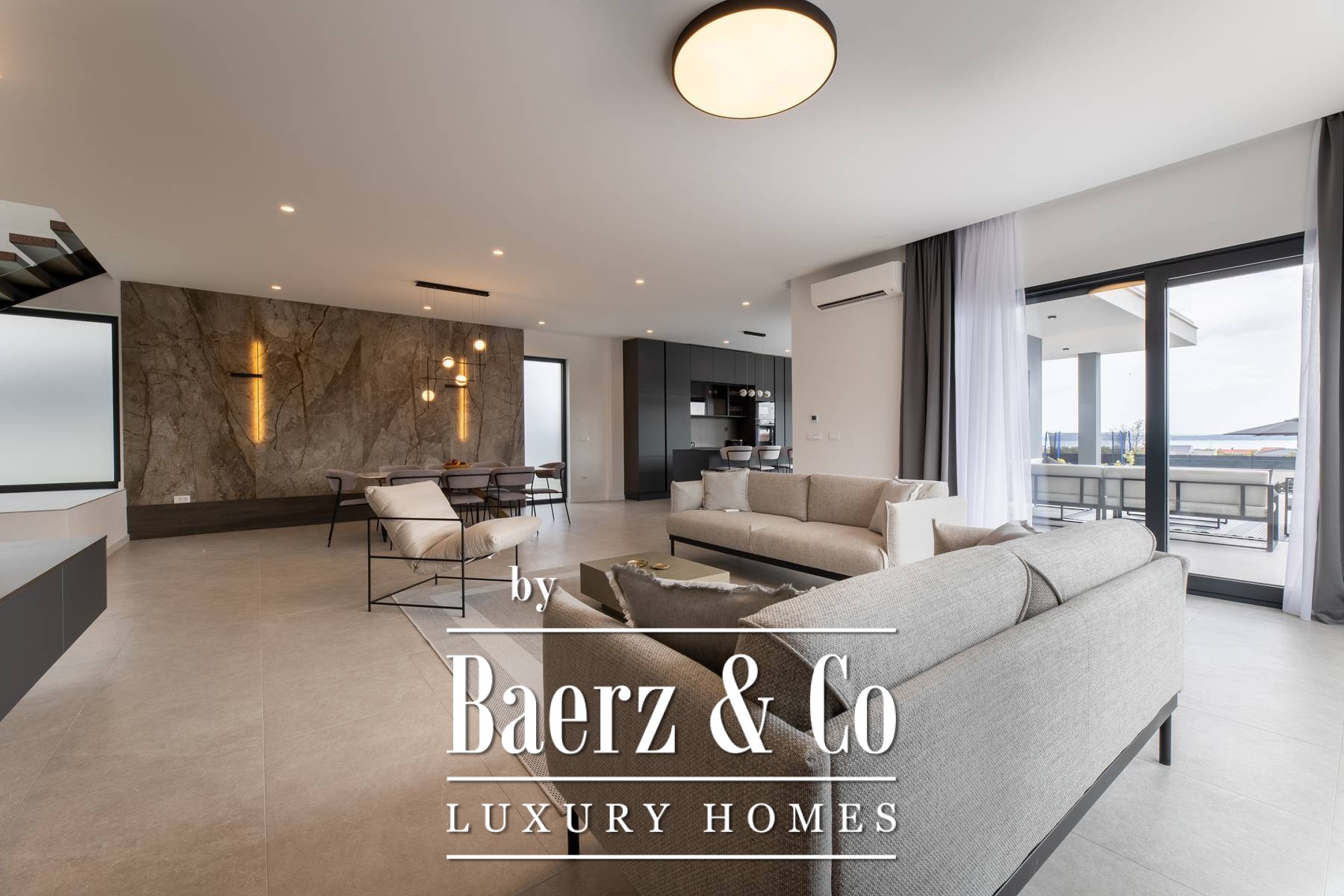 De rustige ligging van de villa biedt een weids uitzicht op de kustlijn en de omliggende eilanden, terwijl de belangrijkste verbindingswegen uitstekend bereikbaar zijn. Trogir, Split en het vliegveld liggen op slechts enkele minuten afstand, waarmee privacy perfect samengaat met bereikbaarheid op deze begeerde Kroatische locatie. Ideaal voor wie waarde hecht aan zowel design als het comfort van het mediterrane leven, is deze luxe villa te koop in Kaštela een uitnodiging tot een verfijnd leven aan de kust.