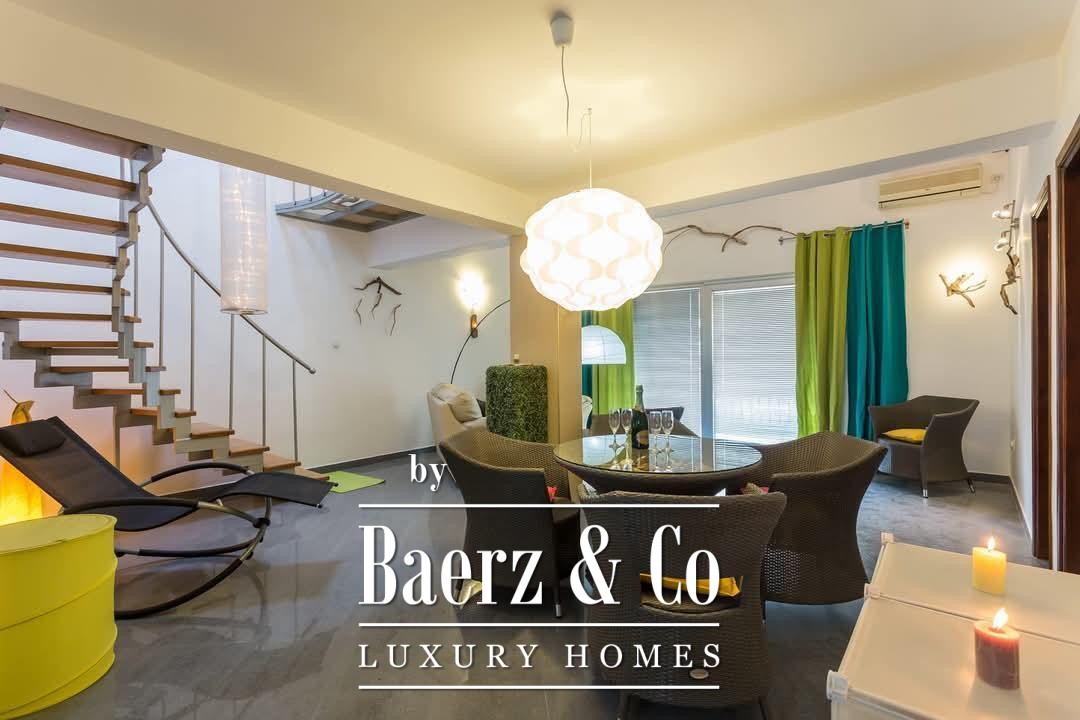 De woning omvat 110 m², met een harmonieuze balans tussen privacy en openheid. Op de benedenverdieping bevinden zich een woonkamer, een separate keuken, twee slaapkamers, een badkamer en twee terrassen. Het grote terras biedt vrij uitzicht over zee en het middeleeuwse silhouet van Kotor. De bovenste verdieping beschikt over een derde slaapkamer, een tweede badkamer en een kleinere zitkamer, wat ruimte biedt voor familie of gasten. Elke kamer is volledig gemeubileerd en met zorg direct gebruiksklaar gemaakt.