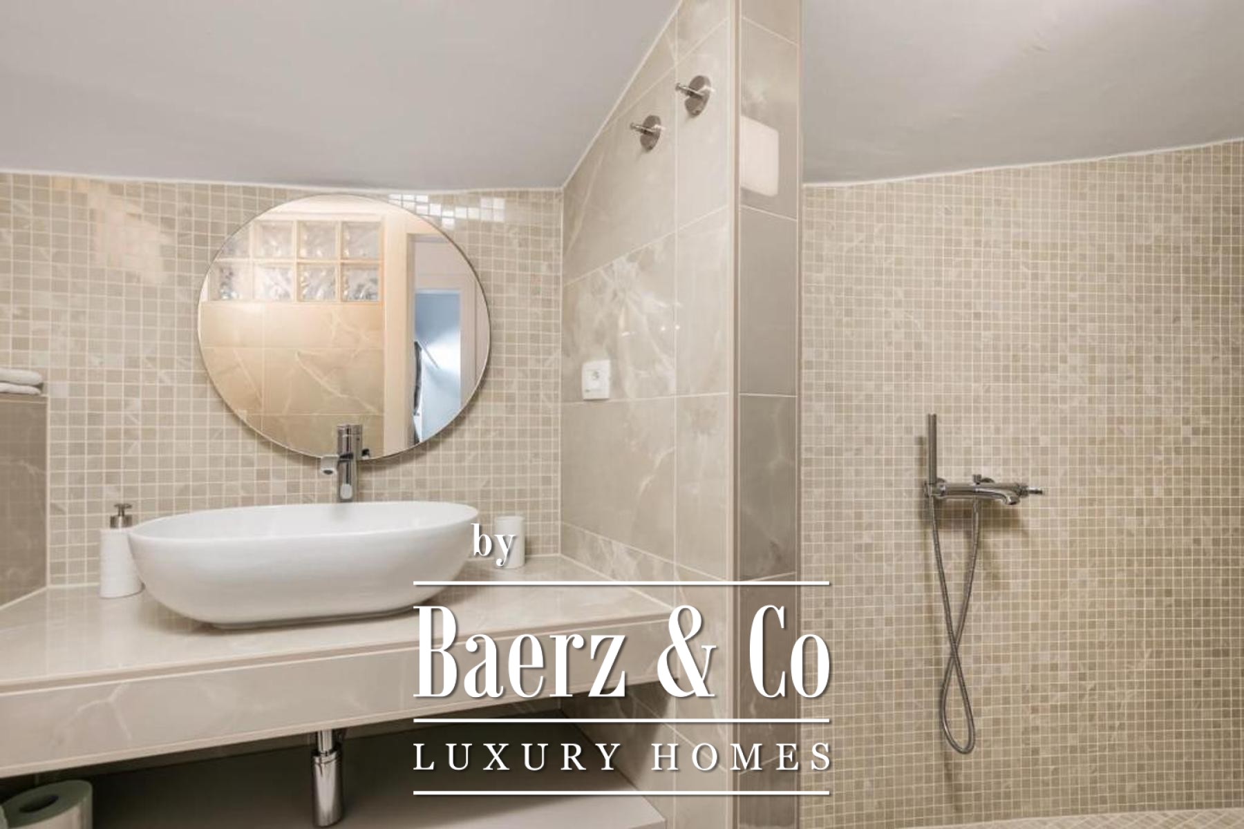 Op de eerste verdieping bevindt zich een stijlvolle driekamerappartement, waar licht door de royale terrassen naar binnen stroomt en het blikveld richting het heldere zeezicht leidt. In de hoge zolder vinden twee slaapkamers met eigen badkamer aansluiting bij een elegante leefruimte met toegang tot een beschouwend dakterras.