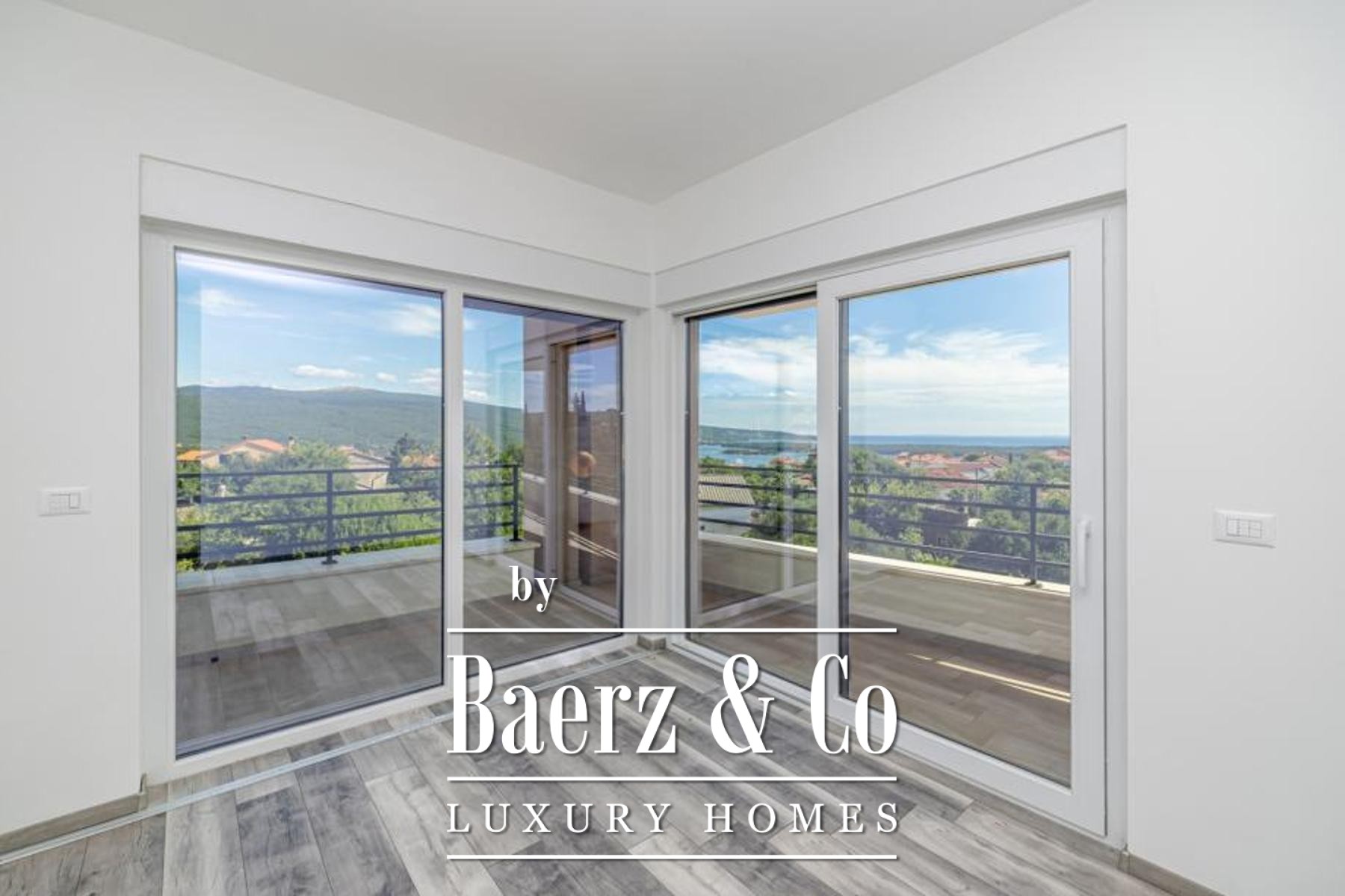 Modern newly built villa on the island of Krk, with a living area of 200 m², situated on a 614 m² plot. This property offers top-level comfort, carefully selected design, and high-quality materials, with spacious terraces that provide a stunning sea view.The ground floor features a large open-concept living space with an elegant fireplace, a kitchen, and a dining area with direct access to the terrace. There is also a wellness area with a sauna and bathroom, a guest toilet, entrance hallway, and a practical storage room.Upstairs, there are three spacious bedrooms, each with its own en-suite bathroom and access to a balcony or terrace, ensuring privacy and comfort. Additionally, there is a separate laundry room on this floor. All bathrooms are equipped with underfloor heating, providing a cozy atmosphere
