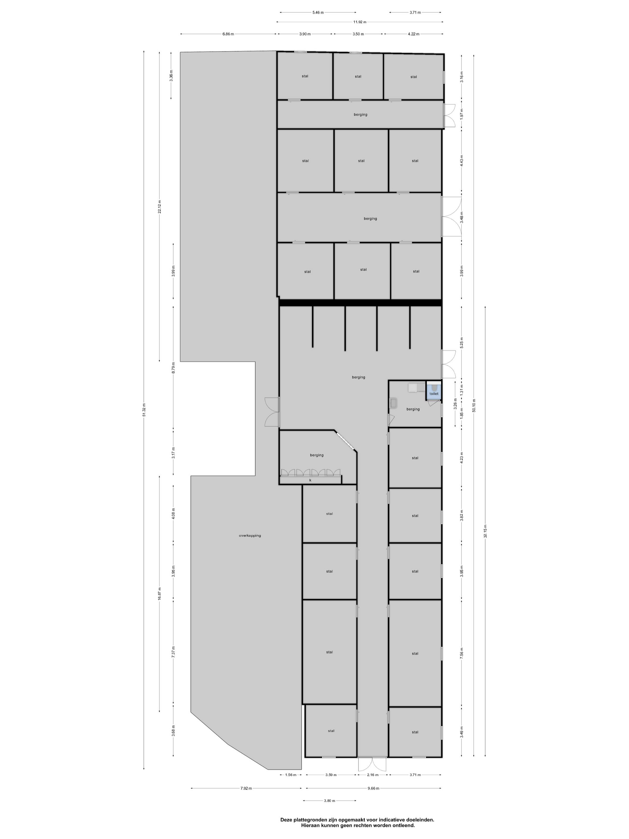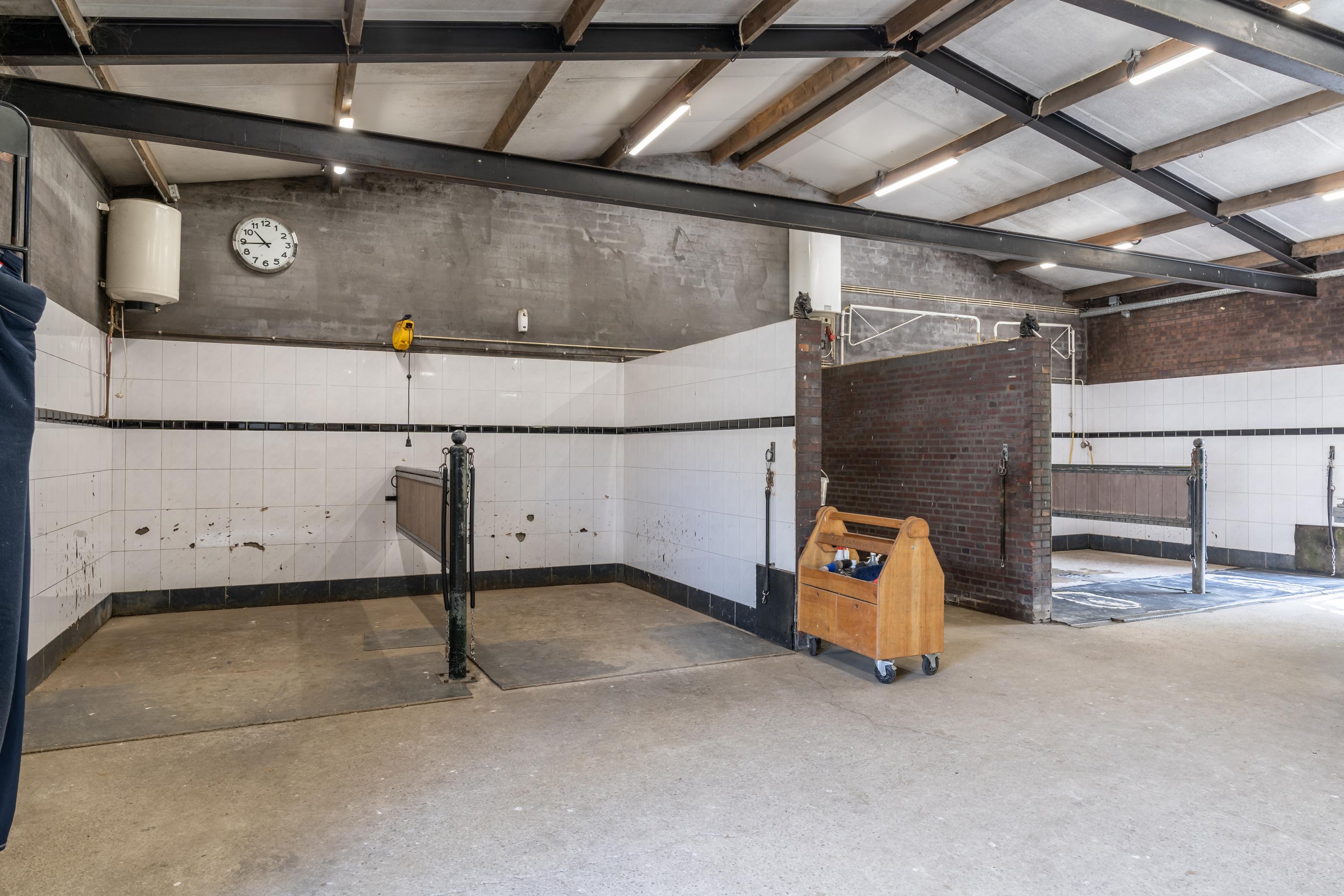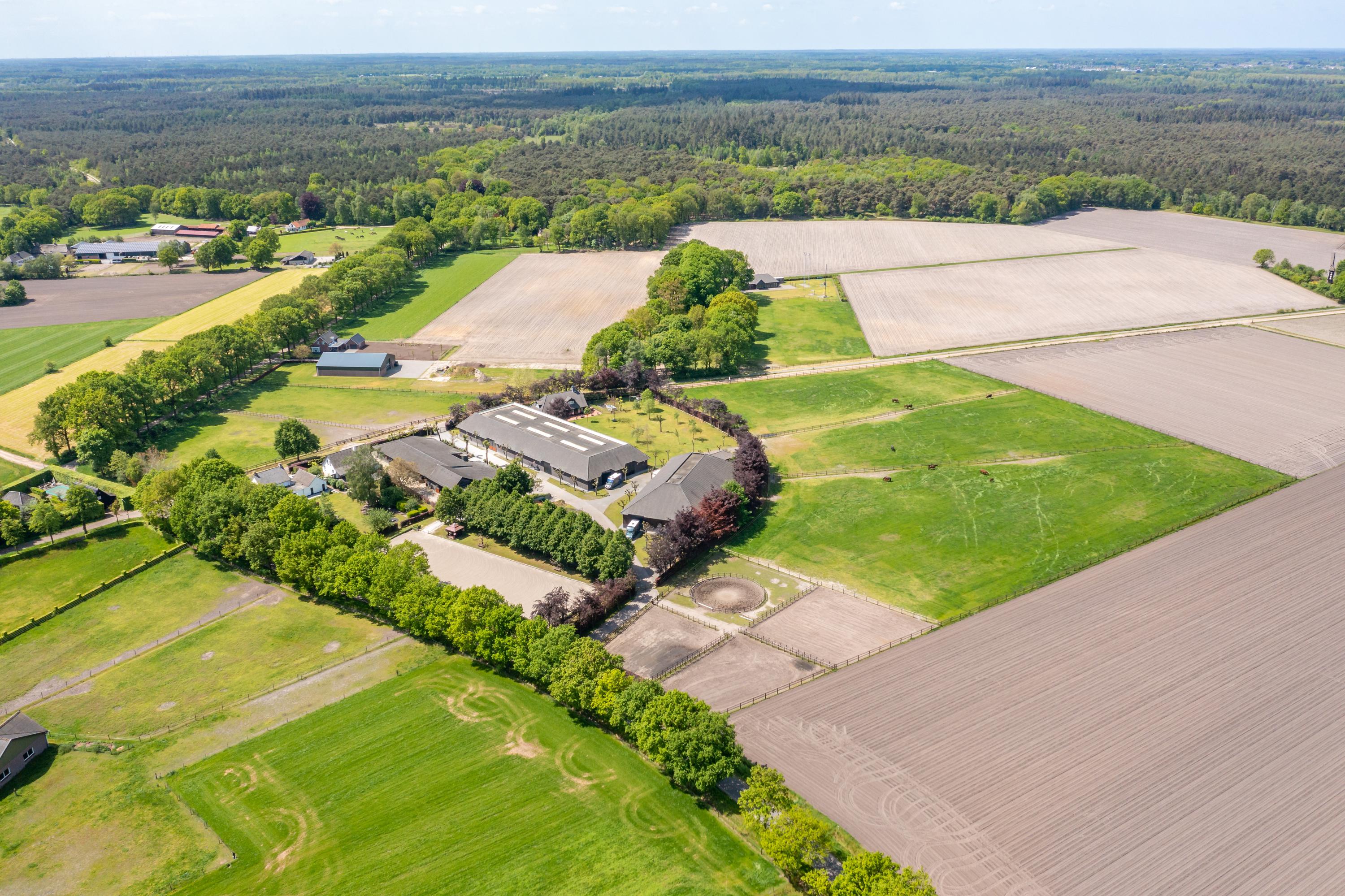 De paardenstal is verder verdeeld in 3 units met in totaal 20 paardenboxen. De geïsoleerde stal is opgetrokken uit metselwerk met stalen spanten en ook hier is het dak met pannen gedekt. Openslaande deuren bieden vanuit alle units toegang tot het erf. Naast 11 paardenboxen zijn in de eerste stalunit nog 4 wasplaatsen, een zadelkamer, een wasruimte en een toiletruimte gesitueerd. De boxen (ca. 4x4 mtr.) zijn voorzien van deels kunststof en deels gegalvaniseerde voorwanden met schuifdeuren en metselwerk tussenwanden. 6 Boxen beschikken over een buitenluik. Stalgedeelte II beschikt over 6 paardenboxen (ca. 4x4 mtr.) met deels kunststof en deels gegalvaniseerde voorwanden met schuifdeuren en betonnen tussenwanden. De unit is verder voorzien van sfeervolle houten gebinten. In het derde stalgedeelte zijn nog 3 boxen aanwezig, welke allen beschikken over een buitenluik. De boxen zijn voorzien van deels kunststof en deels gegalvaniseerde voorwanden met schuifdeuren en betonnen tussenwanden.