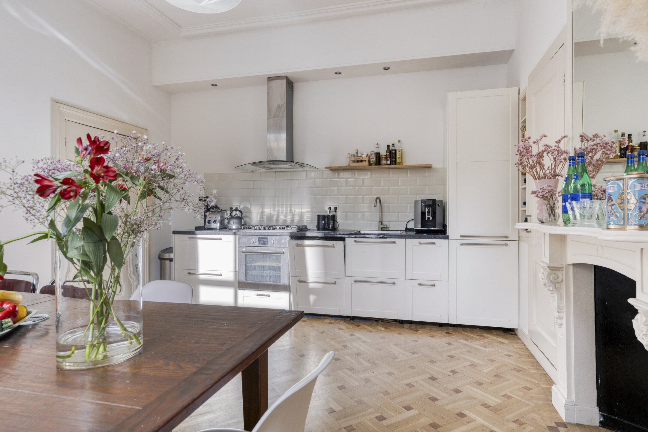 - Een Walhalla voor liefhebbers van eten en koken. Niet alleen door de zeer ruime woonkeuken en de volwaardige tweede keuken. Maar vooral ook door de locatie: slager, (Franse) bakker, toko, kaaswinkel, kookwinkel, wijnwinkels en nog veel meer liggen op loopafstand. En nog belangrijker: op woensdag en zaterdag is er markt voor de deur!