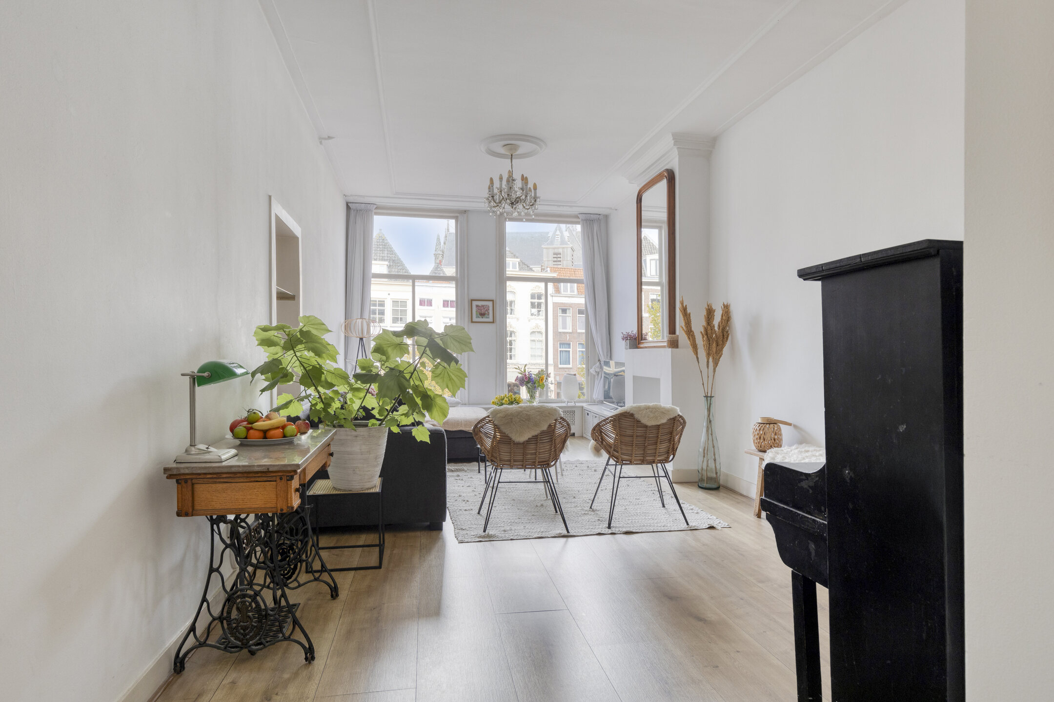 In hartje centrum Leiden vinden we dit prachtige monument. Oorspronkelijk bestaat de woning uit twee voorhuizen met uitzicht op de Rijn en een achterhuis met ingang aan de steeg. De huidige eigenaren hebben er één geheel van hebben gemaakt, waarmee deze woning wel zeer veel mogelijkheden biedt. Niet alleen qua woonoppervlak, maar ook qua indeling: