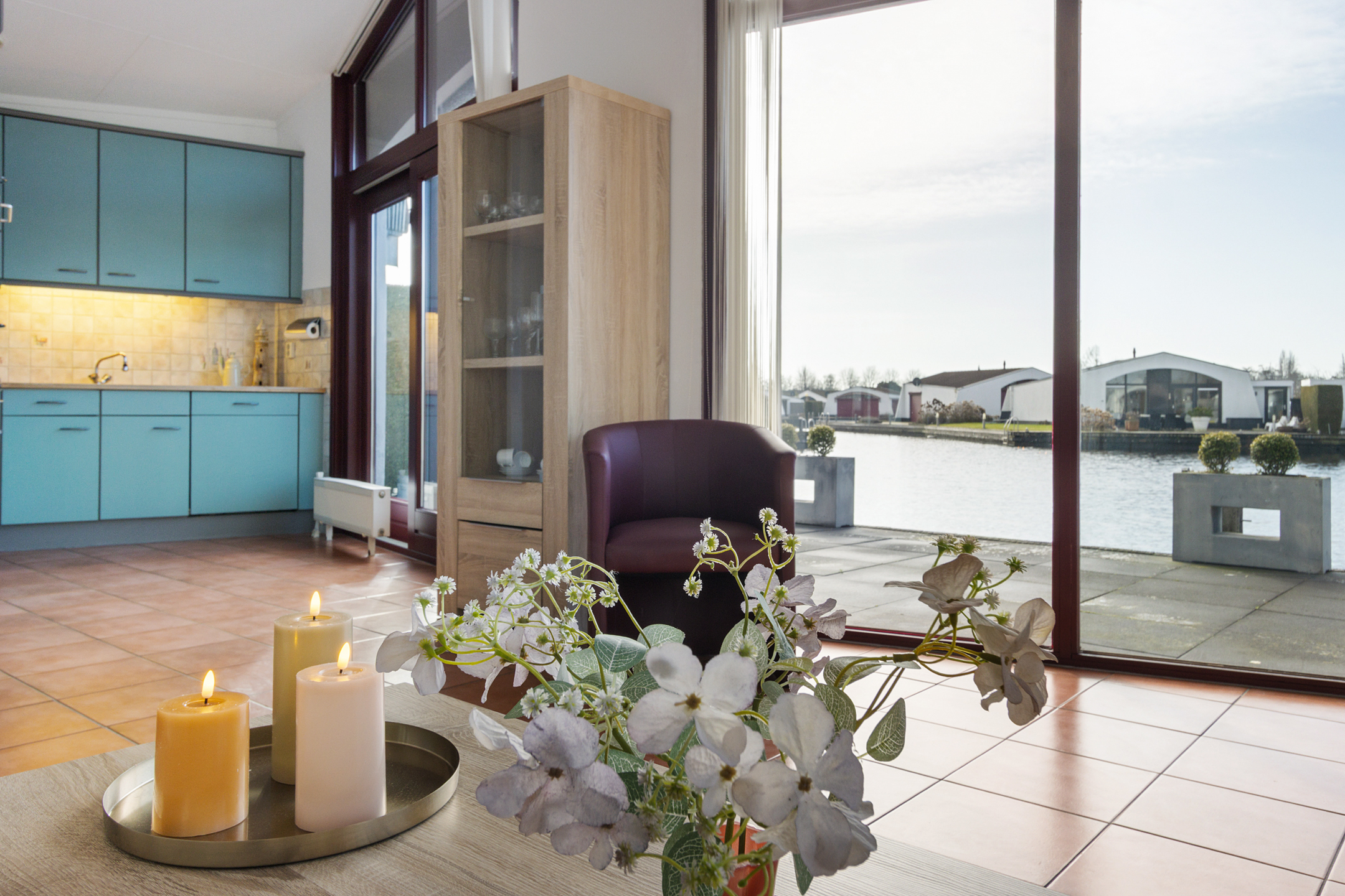 De vrijstaande bungalow ligt direct aan het doorgaande vaarwater, dat in verbinding staat met de Friese meren. Vanuit uw eigen aanlegsteiger met vrij zicht over de kom, vaart u zó richting het Tjeukemeer of het IJsselmeer. Een droomplek voor watersportliefhebbers, maar ook voor wie simpelweg wil genieten van rust, ruimte en weids uitzicht over het water.