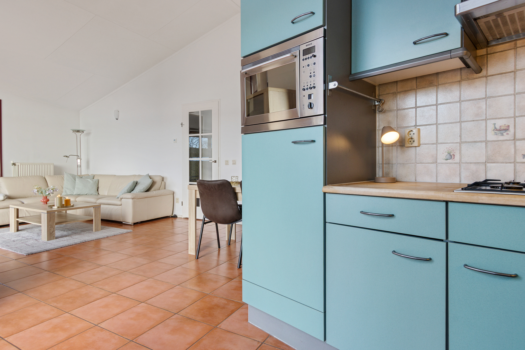 De open hoekkeuken is praktisch ingericht, voorzien van inbouw apparatuur en staat in directe verbinding met de living. Verder beschikt de woning over: