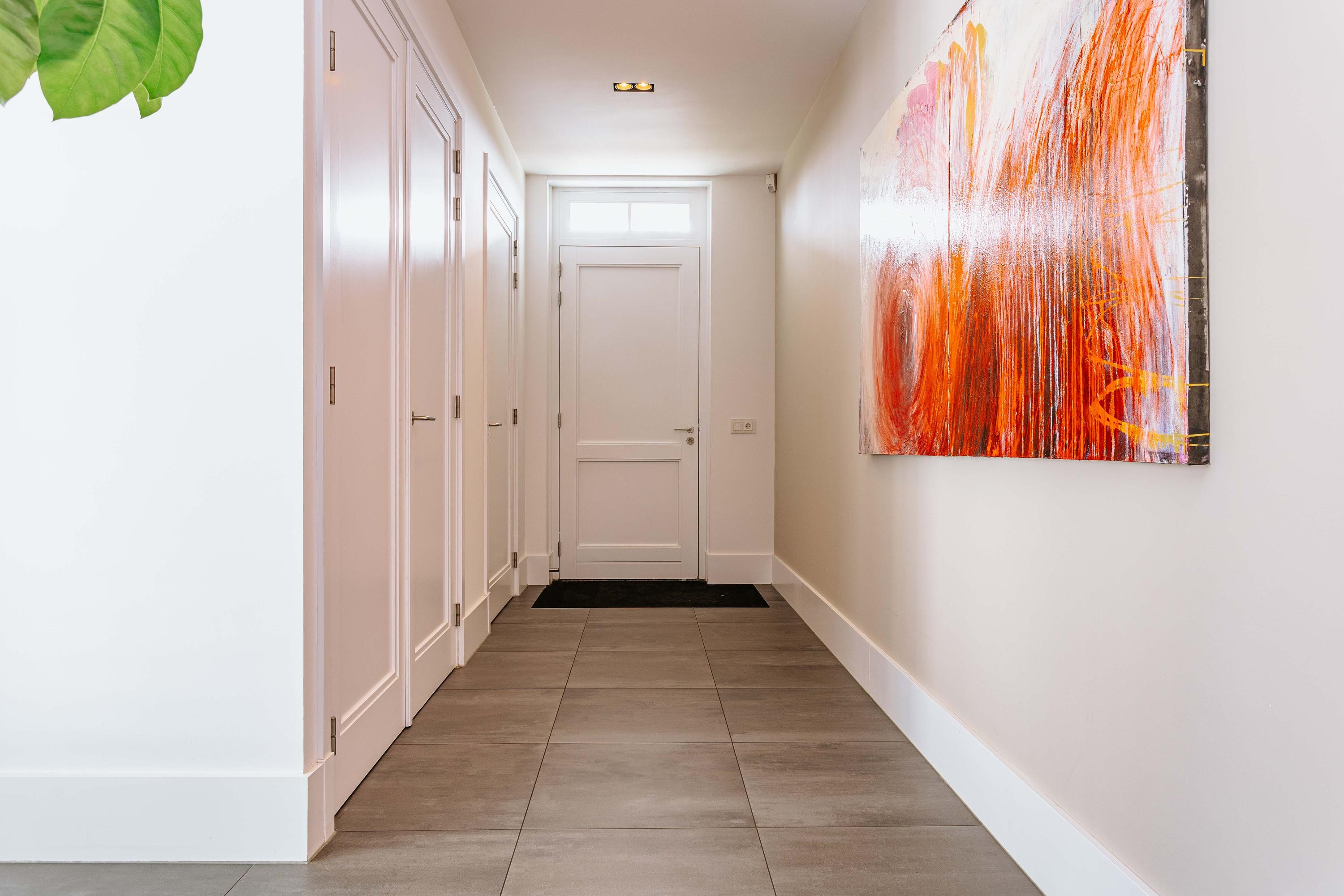 De elektrisch te ontgrendelen deur aan de voorzijde leidt ons naar de hal waar luxe, ruimte en comfort direct opvallen.