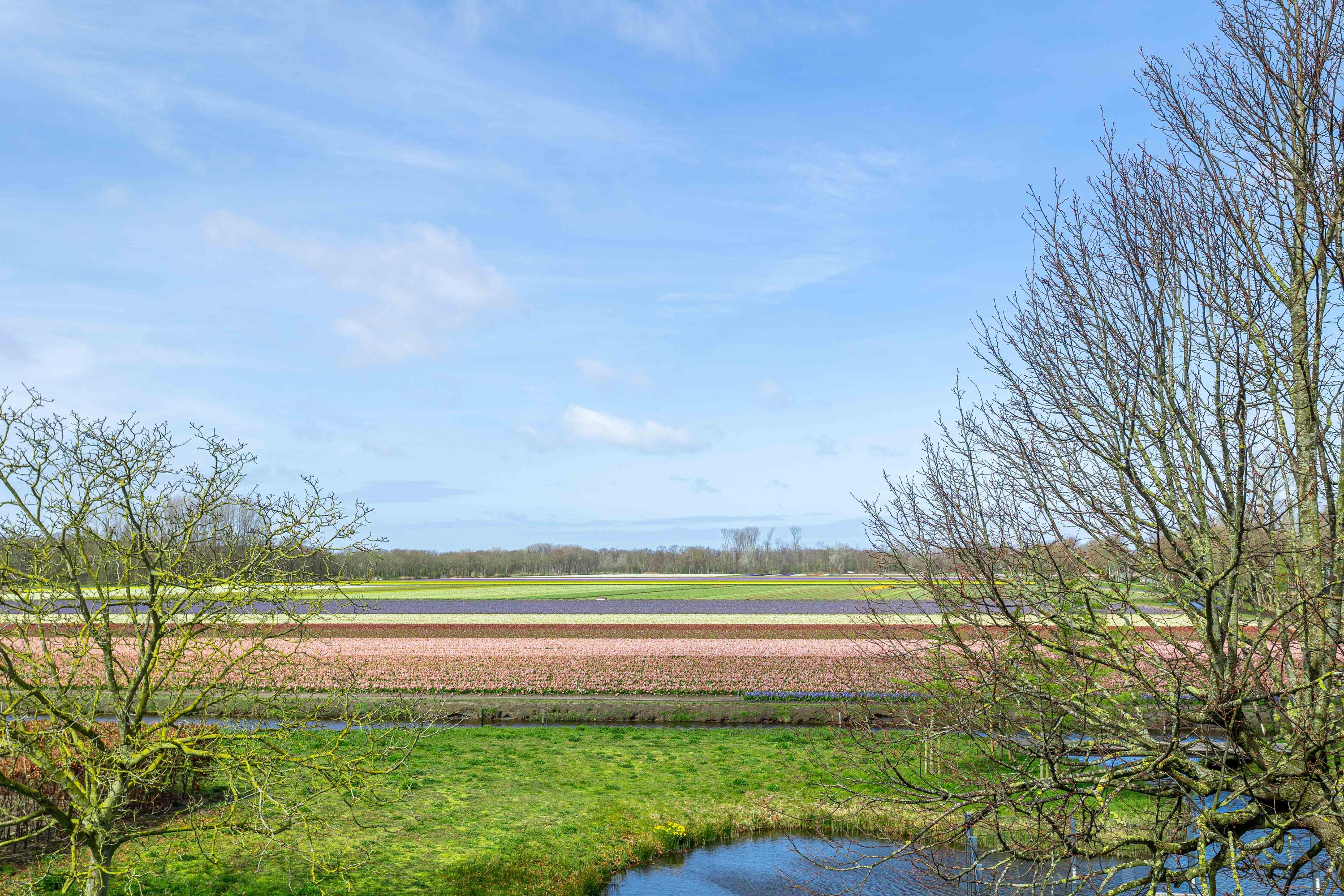 - weids uitzicht over de bloembollenvelden;