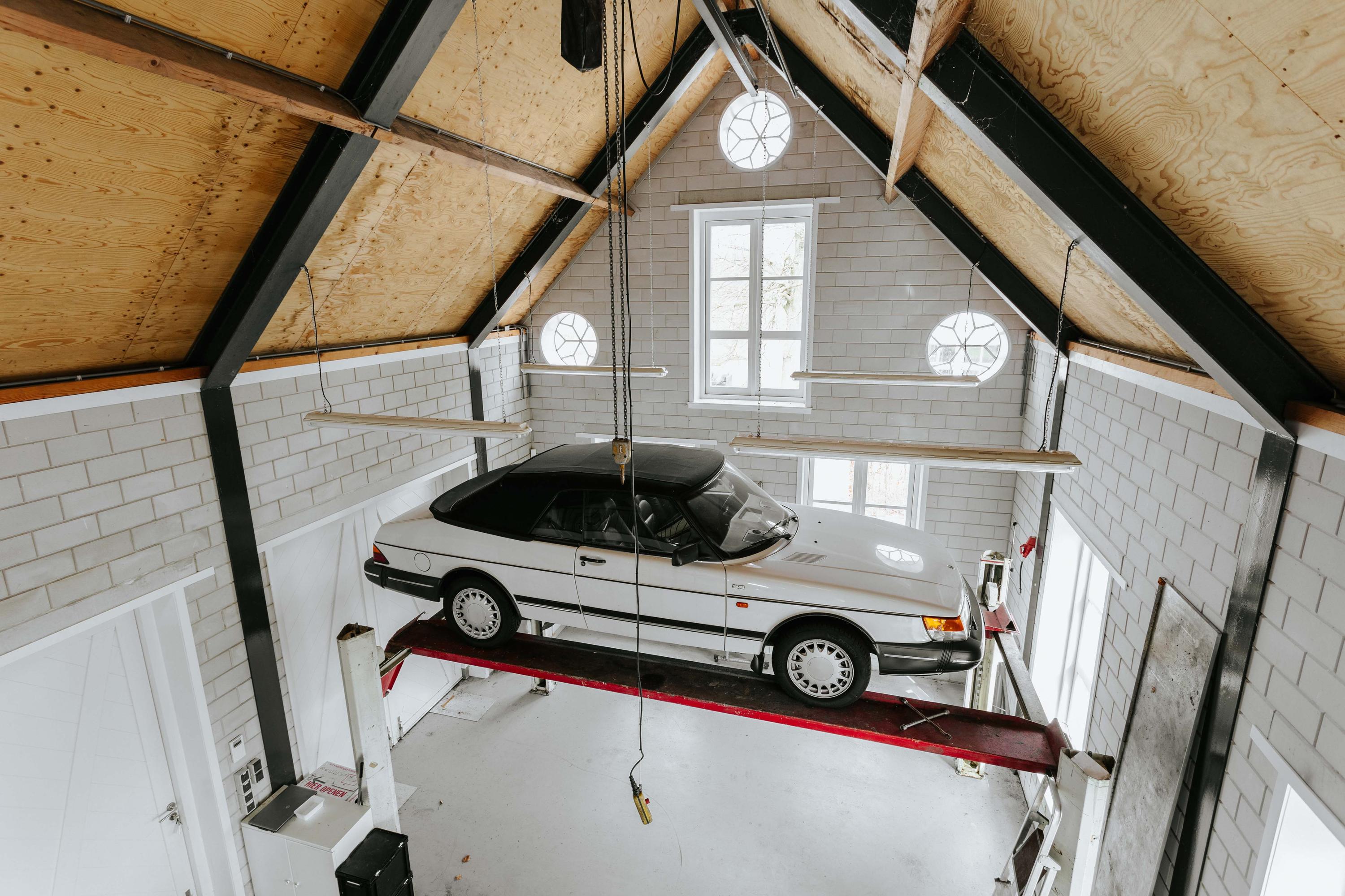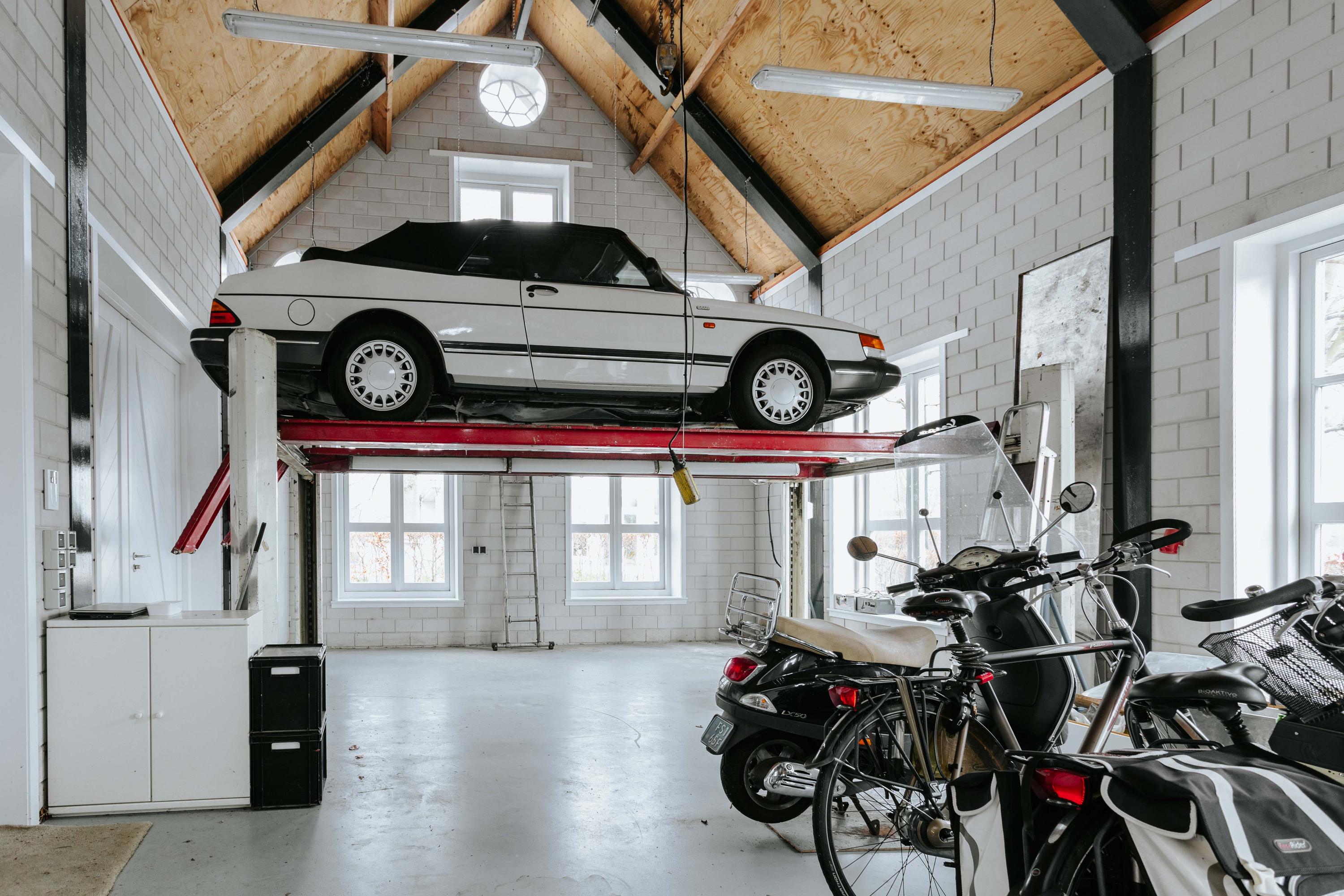 De luxueuze vrijstaande garage biedt parkeerplaats aan 6 auto’s. De gehele ruimte is voorzien van vloerverwarming en er is een autobrug aanwezig om aan de (hobby)-auto te sleutelen. Dit gebouw kan mogelijk voor bewoning geschikt gemaakt worden.