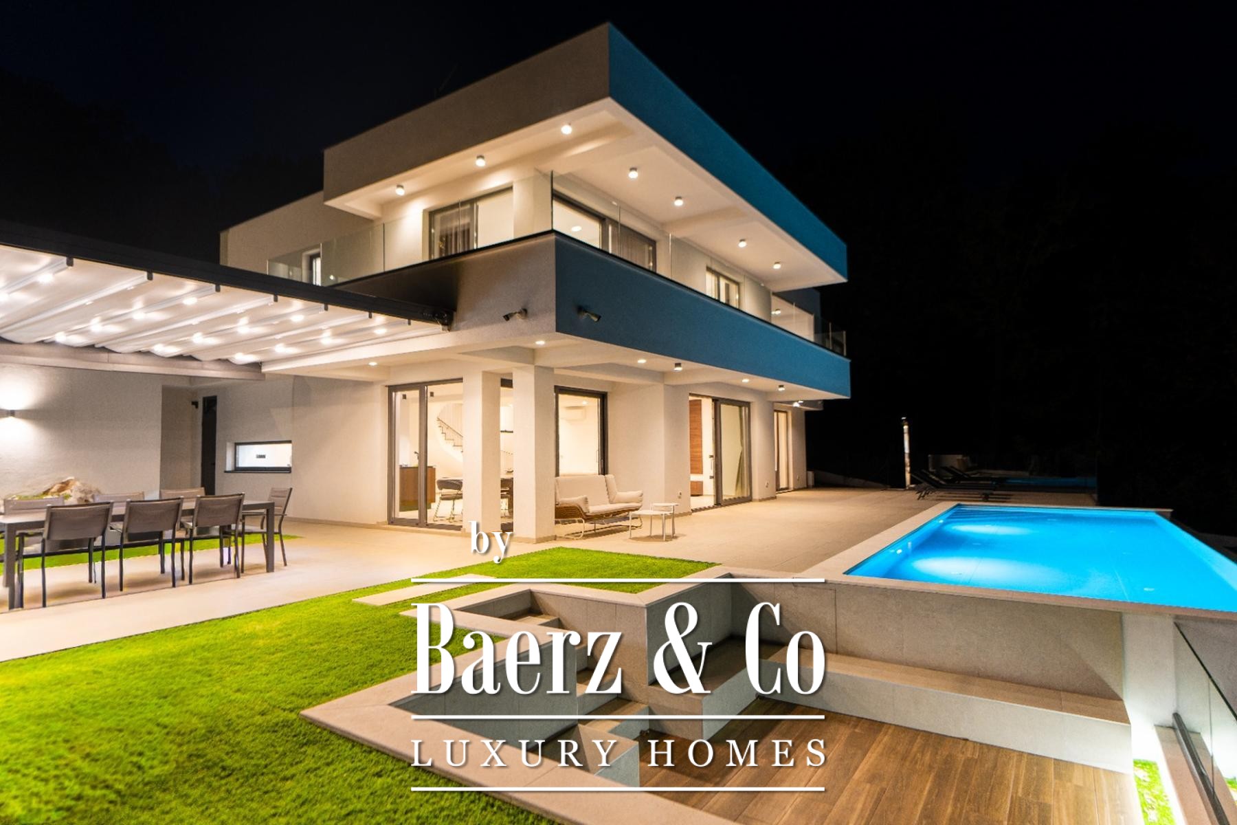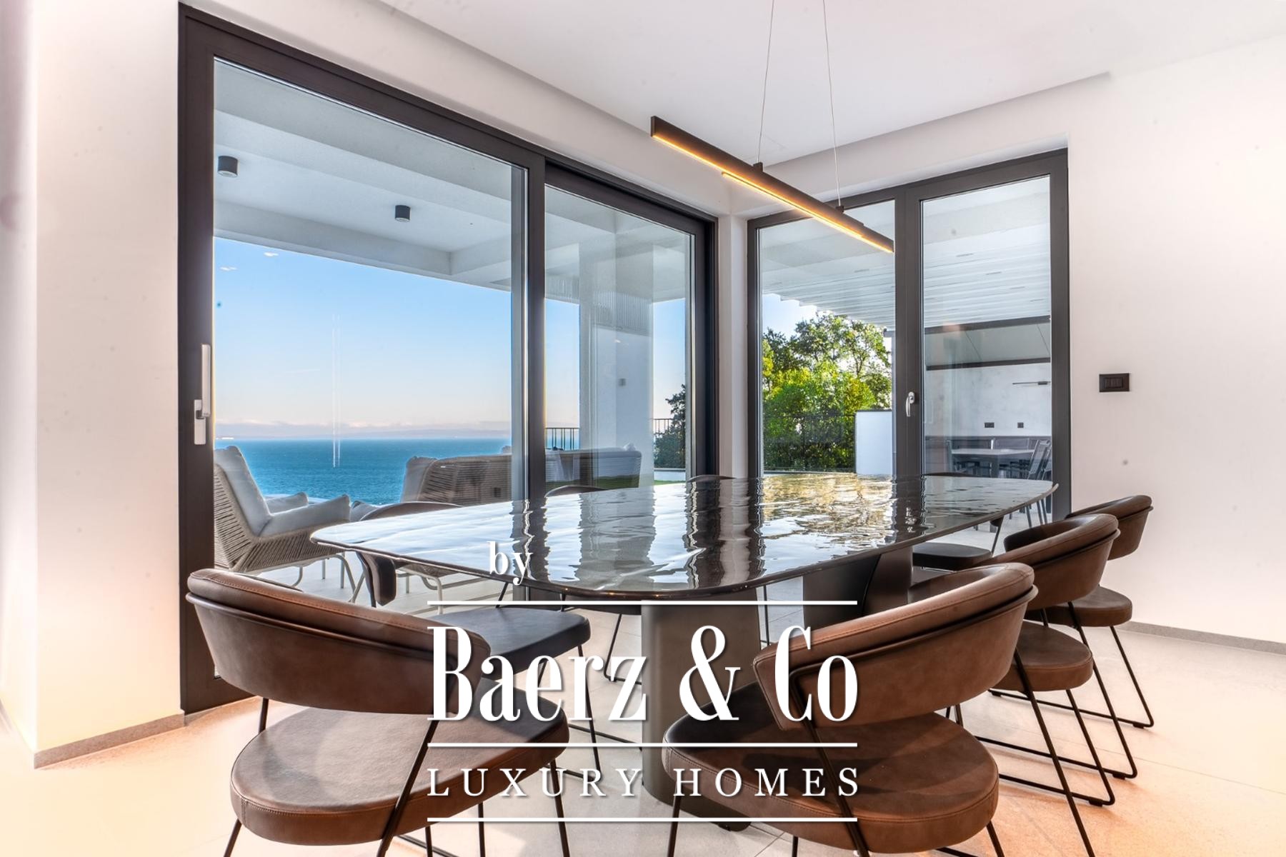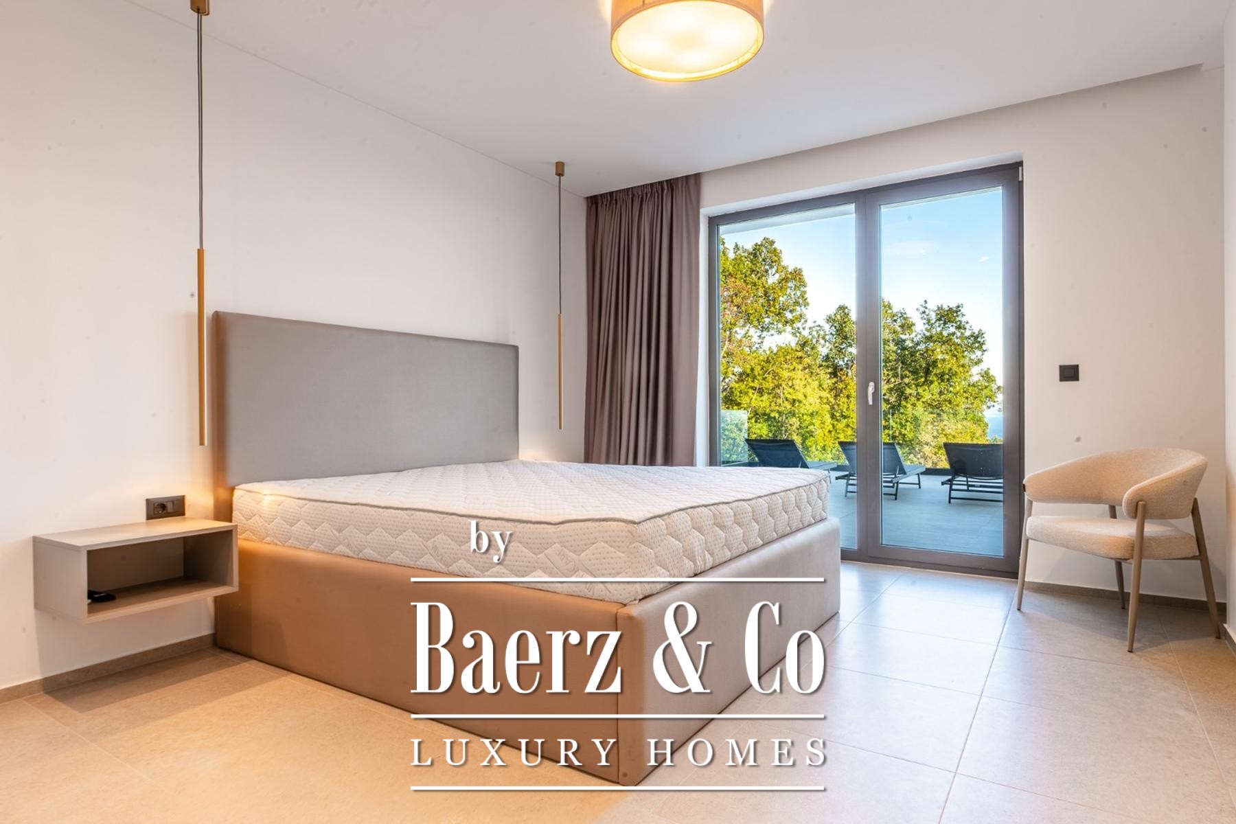 Moderne villa Lovran zet een verfijnde standaard voor hedendaags wonen, met 250 m² aan lichte, open ruimtes op de rustige heuvels boven de Kvarnerbaai. Deze woning toont een doordacht architectonisch ritme over twee verdiepingen, elk ingericht voor comfort en privacy. Vier ruime slaapkamers en vier badkamers bieden plaats aan familie en gasten, terwijl de royale open woonkamer en eetruimte naadloos overlopen in het panoramisch terras. Vloerhoge ramen omlijsten het onbelemmerde uitzicht over de baai en geven het huis een gevoel van openheid en rust.