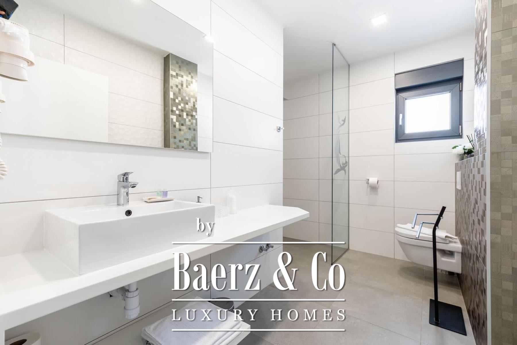 Villa Makarska bevindt zich op een verhoogde locatie, wat een panoramisch uitzicht biedt over zee en de historische stad beneden. Deze villa in Makarska beschikt over 450 m² woonoppervlakte, geïntegreerd op een perceel van 448 m² en benadrukt daarmee de duidelijke verbinding tussen binnen- en buitenleven. De zuidgerichte ligging zorgt in elke hoofdruimte voor constant daglicht, waardoor het dagelijks leven wordt verrijkt met uitzichten die veranderen van zonsopkomst tot avond.