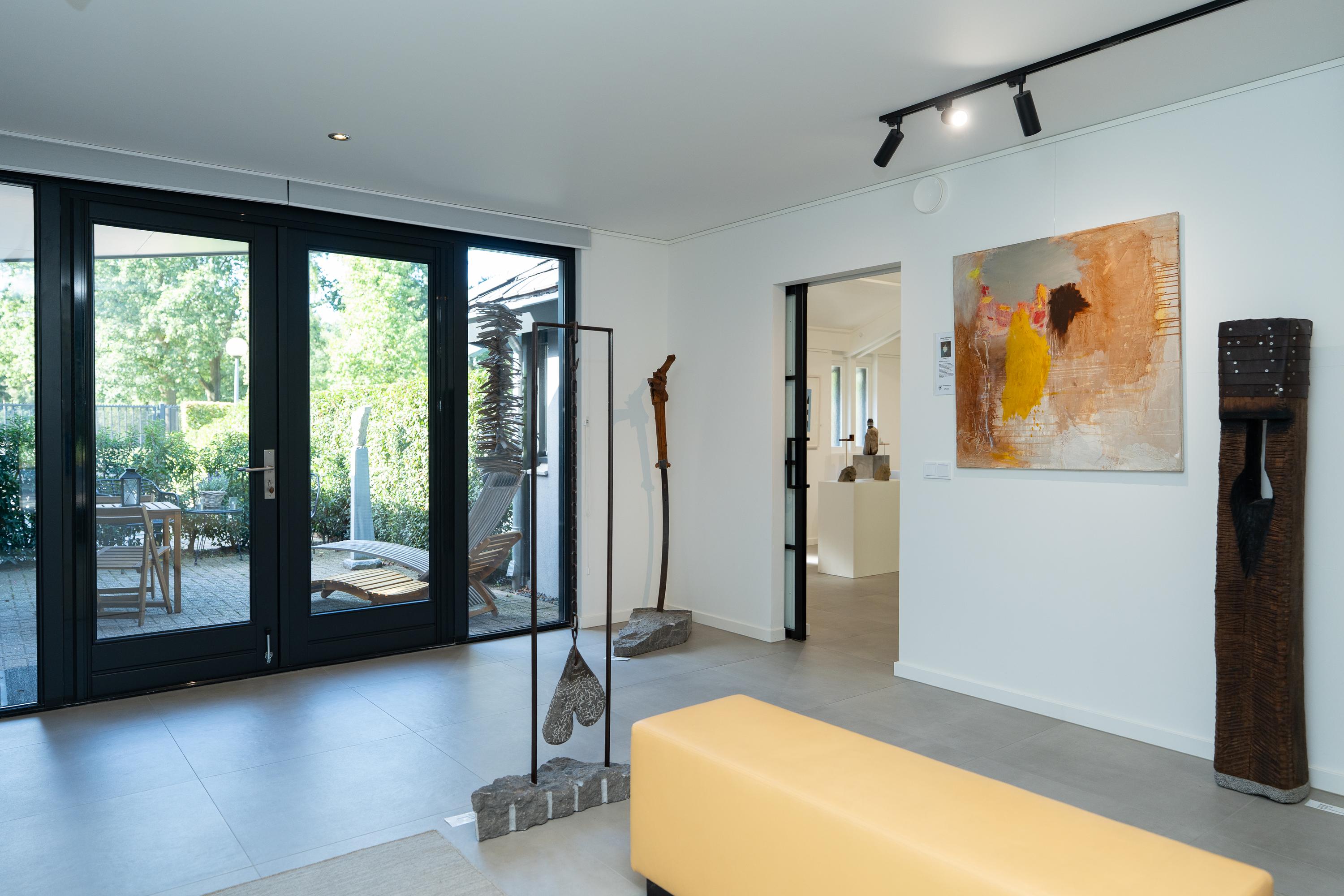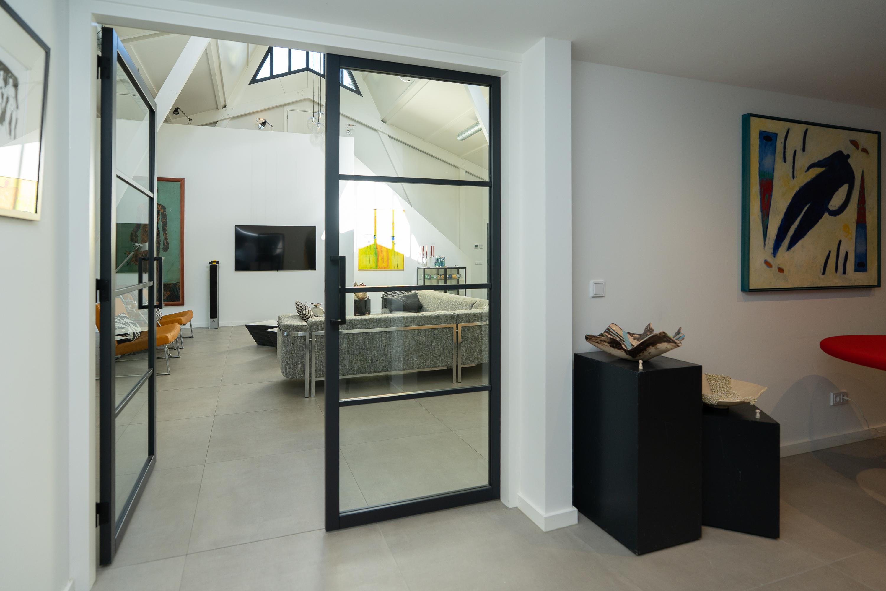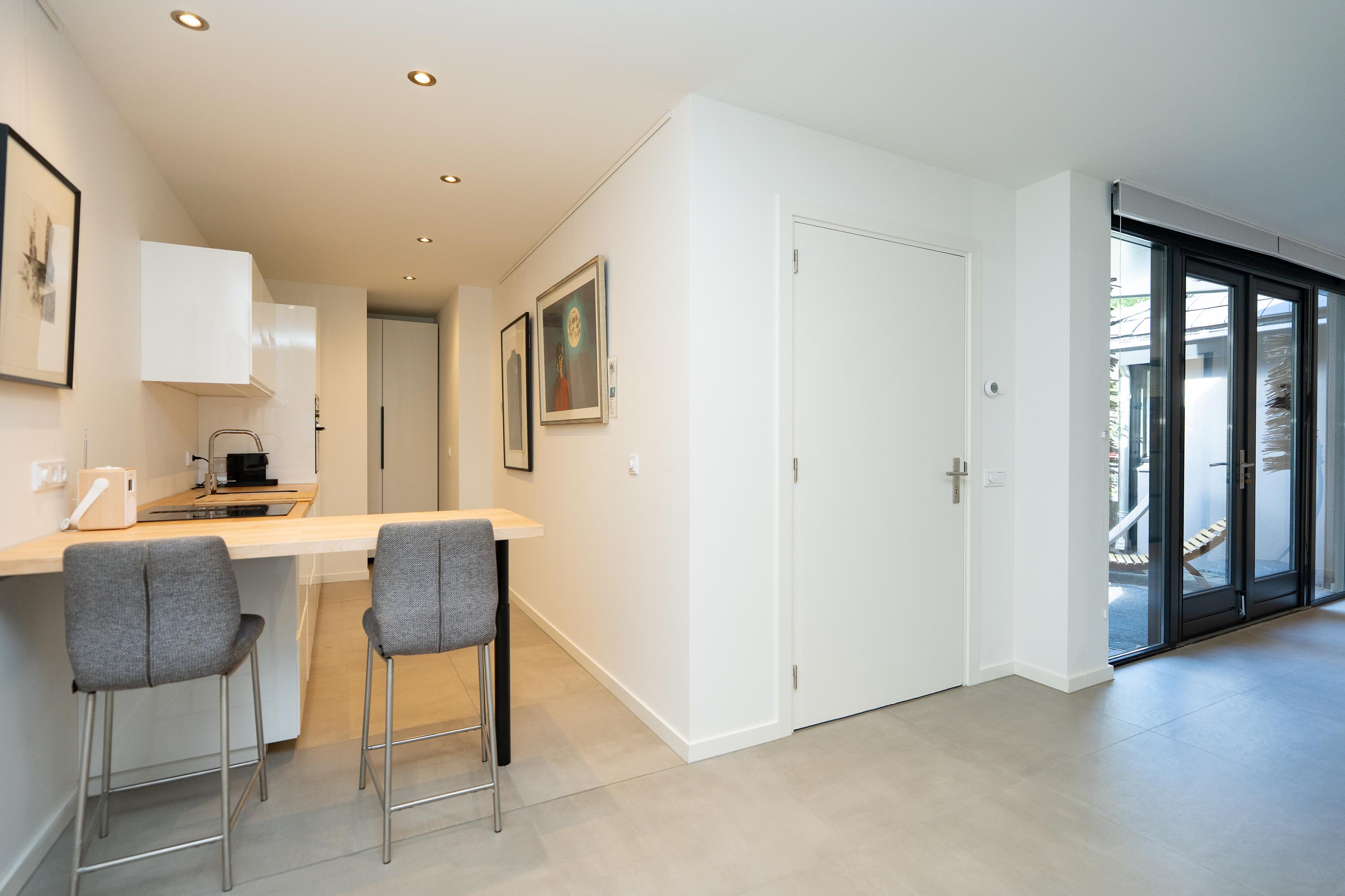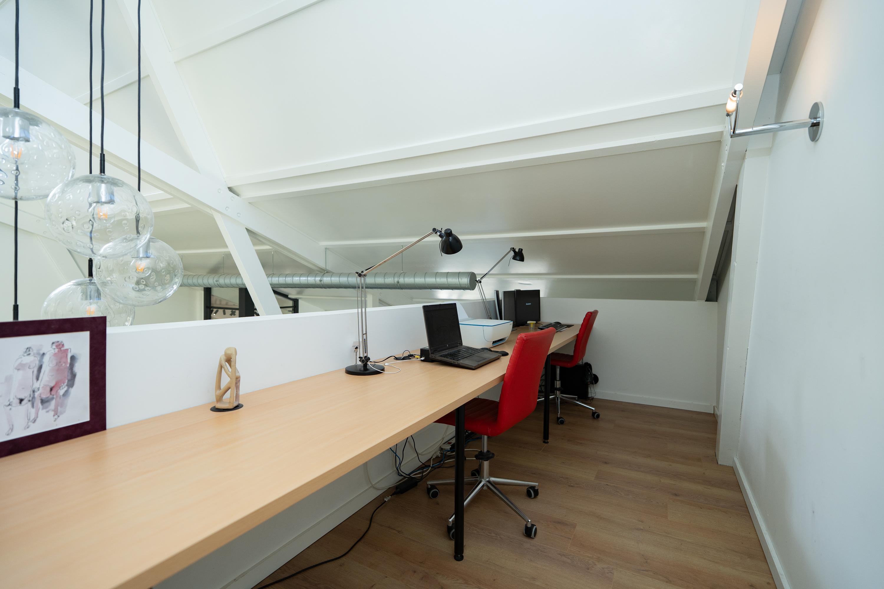 Vanuit de studeerkamer is de multifunctionele atelierruimte te bereiken. Deze ruimte heeft openslaande deuren aan de voor- en achterzijde met een omheind terras en beschikt over een eigen keuken en badkamer. De keuken is voorzien van diverse inbouwapparatuur en de badkamer heeft een inloopdouche, dubbele wastafel en een toilet.