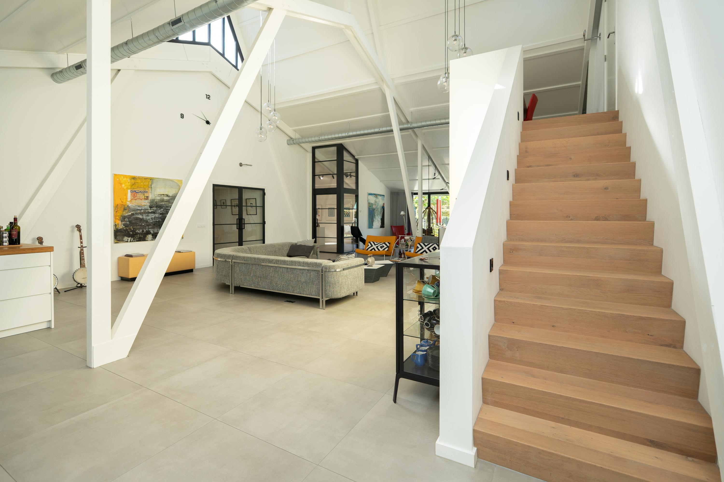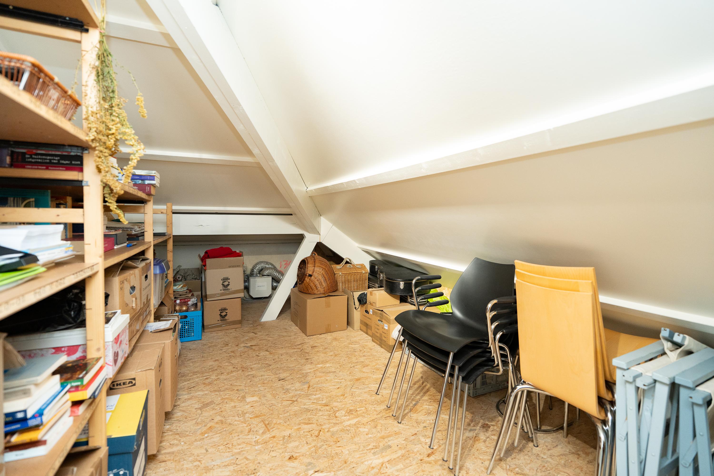 Fraaie vide bij de woonkamer, deze is nu in gebruik als studeerruimte. Ruime berging. Boven de entree is nog een vliering gesitueerd.