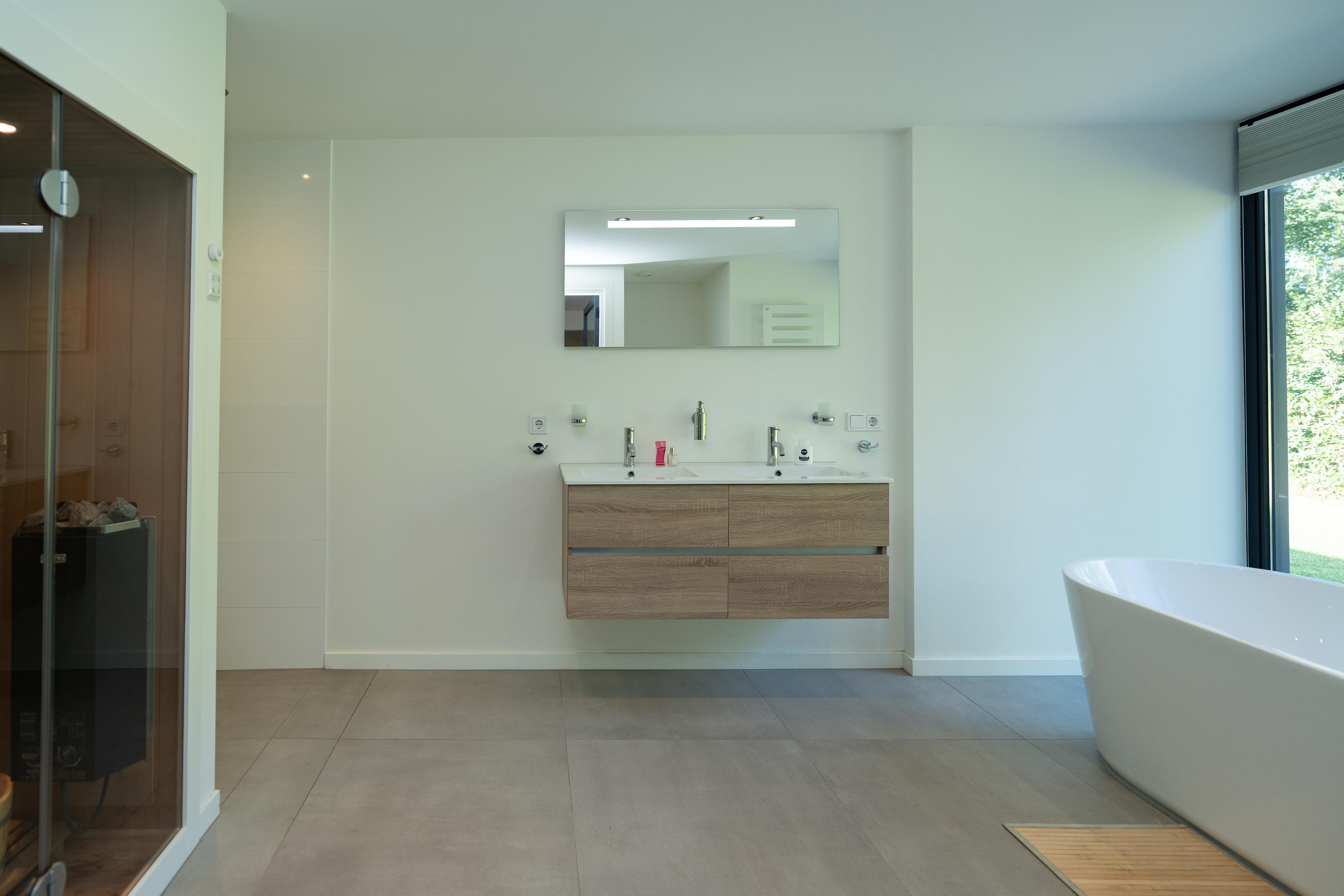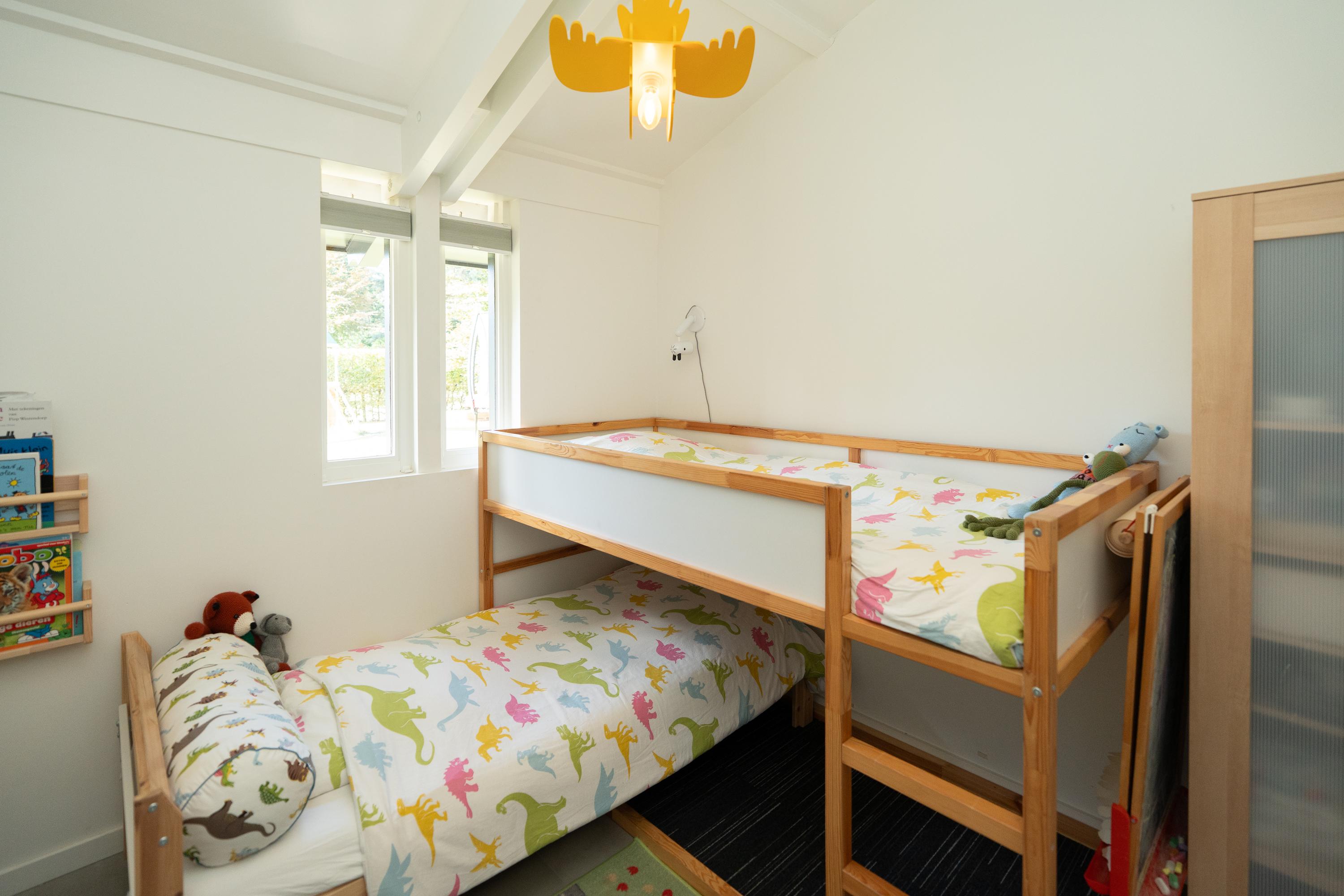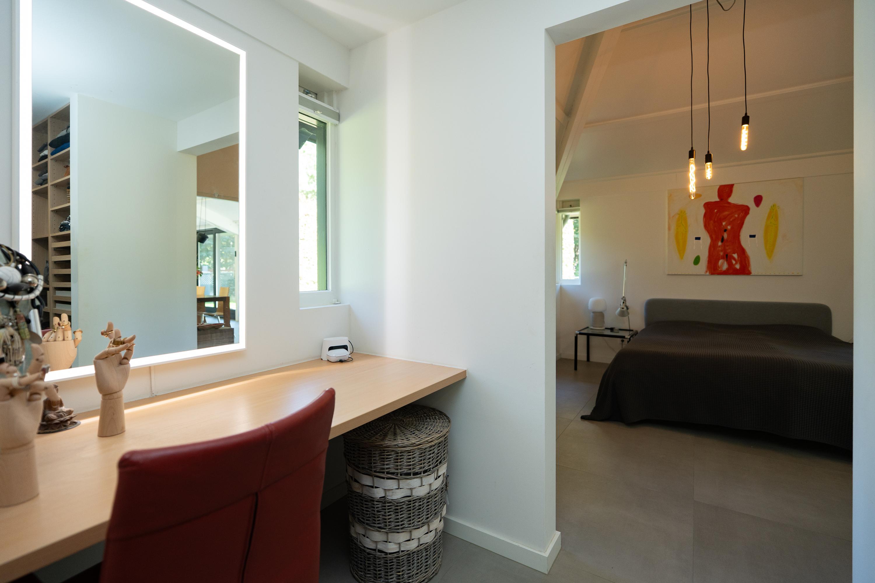 Er zijn in totaal drie slaapkamers en een multifunctionele studeerkamer op de begane grond. De studeerkamer is nu in gebruik als galerie. De masterbedroom heeft een ruime walk-in-closet en aansluitend een zeer ruime badkamer met combi sauna, vrijstaand ligbad, douche, dubbele wastafel en toilet. Hier kun je heerlijk ontspannen en tijdens het badderen genieten van de groene omgeving. Bij de andere slaapkamers is de tweede badkamer gesitueerd, welke voorzien is van een douche, dubbele wastafel en een toilet.