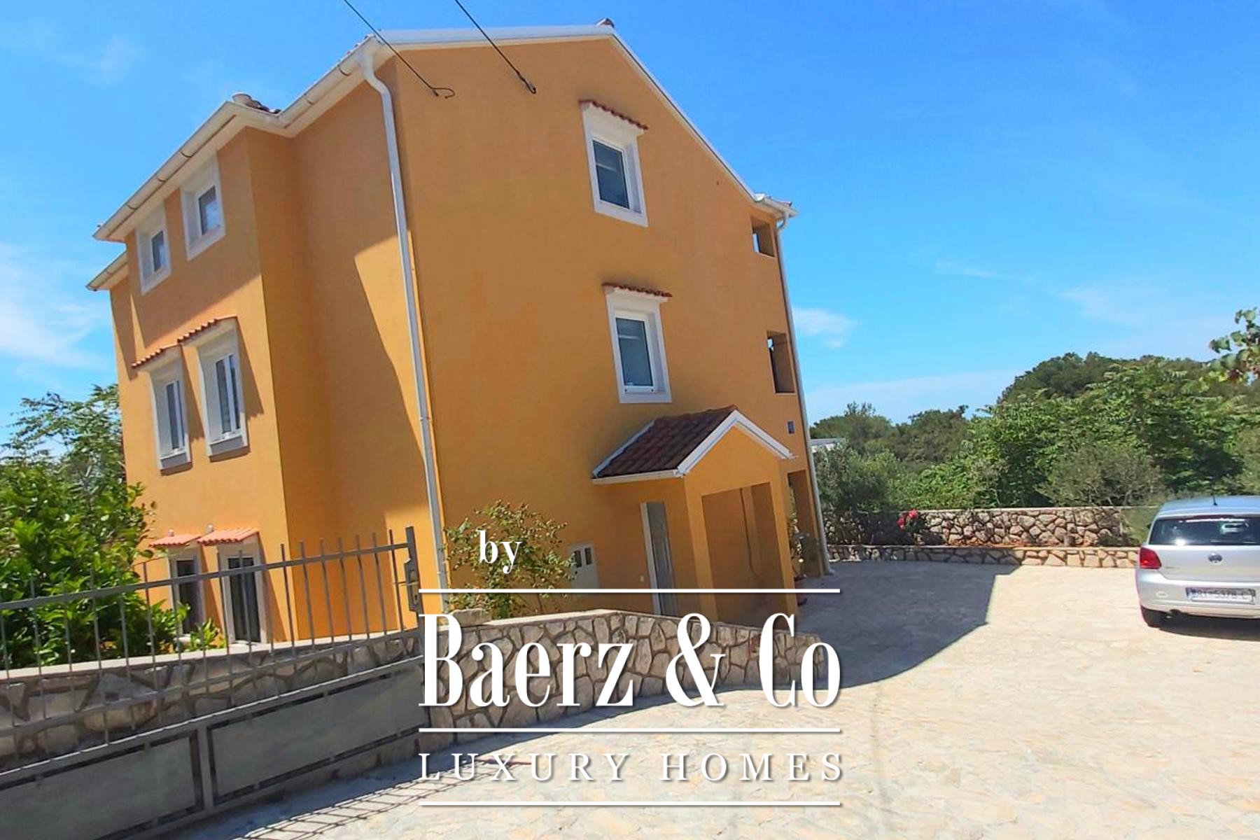 from the seaspacious terraces and a balcony with a viewlandscaped yard with Mediterranean plantscovered terrace with fireplace and outdoor dining areaExteriorThe house exudes Mediterranean charm - the yellow façade with a tiled roof blends harmoniously with the natural surroundings. The yard is landscaped with decorative pebbles, olive trees, and ornamental plants, while sunbathing areas and private corners for relaxation can be found within the garden. Covered terraces with stone fireplaces create the perfect space for dining and social gatherings outdoors.This property combines an attractive location, a functional layout, and excellent investment potential - an ideal choice for those who want to enjoy the beauty of Lošinj or engage in tourism in a prestigious destination.We remain at your disposal for viewings and further information.